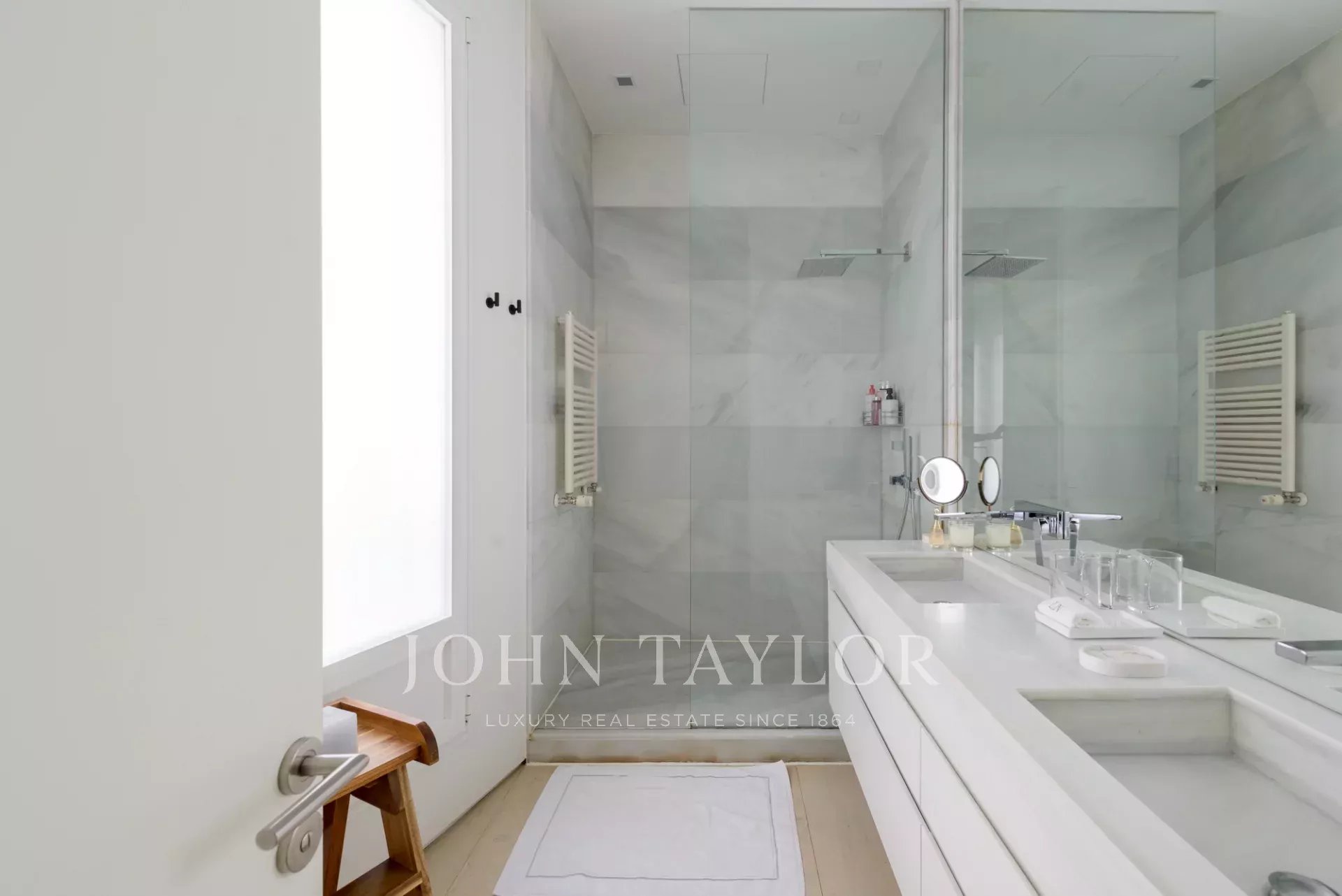 Das Hauptschlafzimmer ist eine komplette Suite, mit einem großen Ankleidezimmer und großen Fenstern. Das en-suite Badezimmer ist ein Raum mit Persönlichkeit, mit doppeltem Marmorwaschbecken und einer riesigen Power-Dusche.