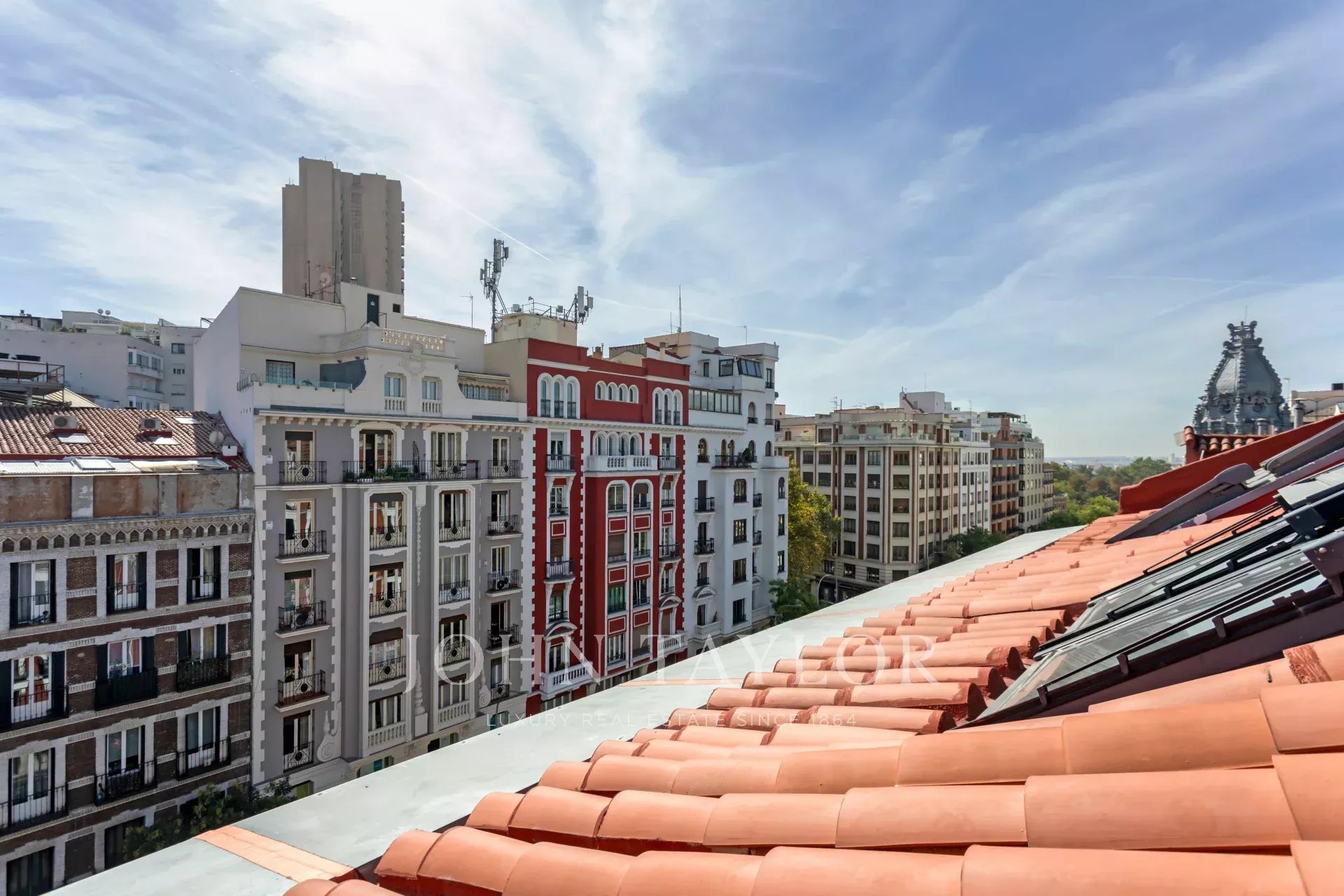 Das Wohnzimmer und das Schlafzimmer haben Dachfenster mit Blick auf die Calle Alcalá, von wo aus man die schönen klassischen Gebäude und einen Teil des Retiro-Parks bewundern kann. Dies ist ein Penthouse für Liebhaber von Sonne und natürlichem Licht.
