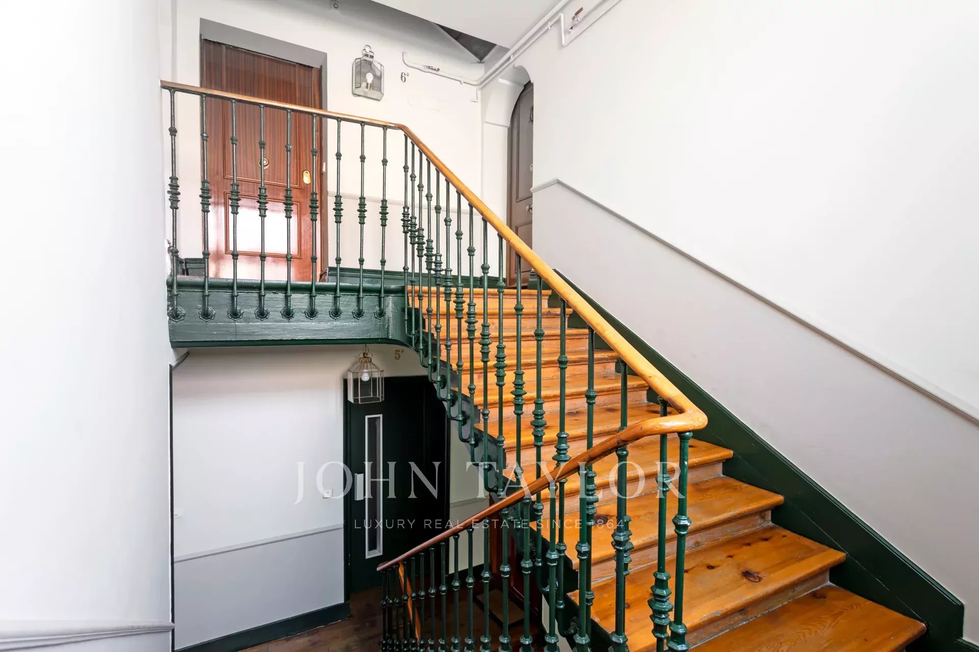 Das Gebäude im klassischen Stil stammt aus dem Jahr 1897 und verfügt über einen eleganten Eingang und eine geschützte Holztreppe. Der Aufzug führt bis in den fünften Stock.