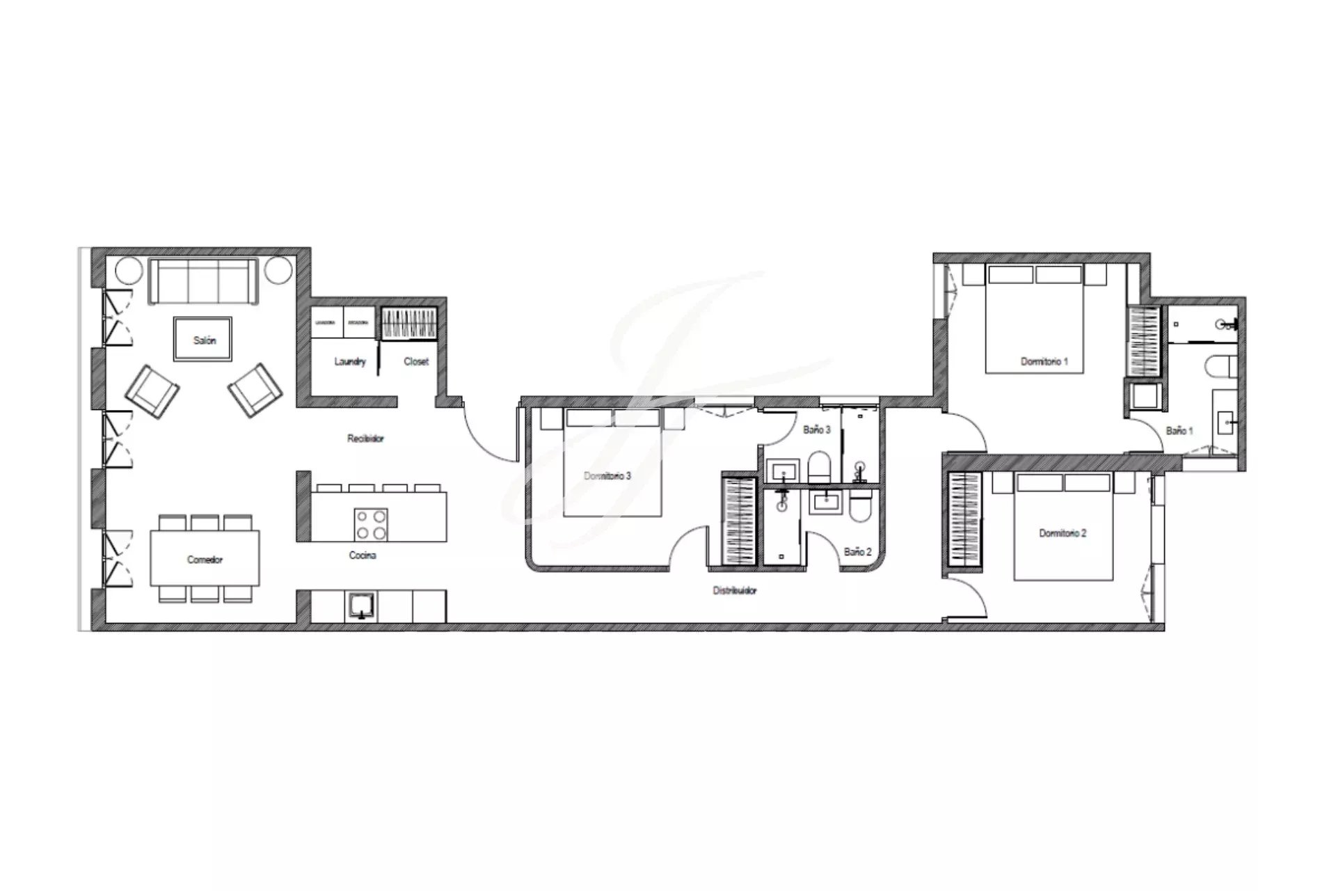 Die Immobilie verfügt über drei Schlafzimmer, alle mit eigenem Bad, was Privatsphäre und Komfort garantiert. Es hat auch drei Balkone mit Blick auf die Straße, die natürliches Licht und ungehinderten Blick bieten.