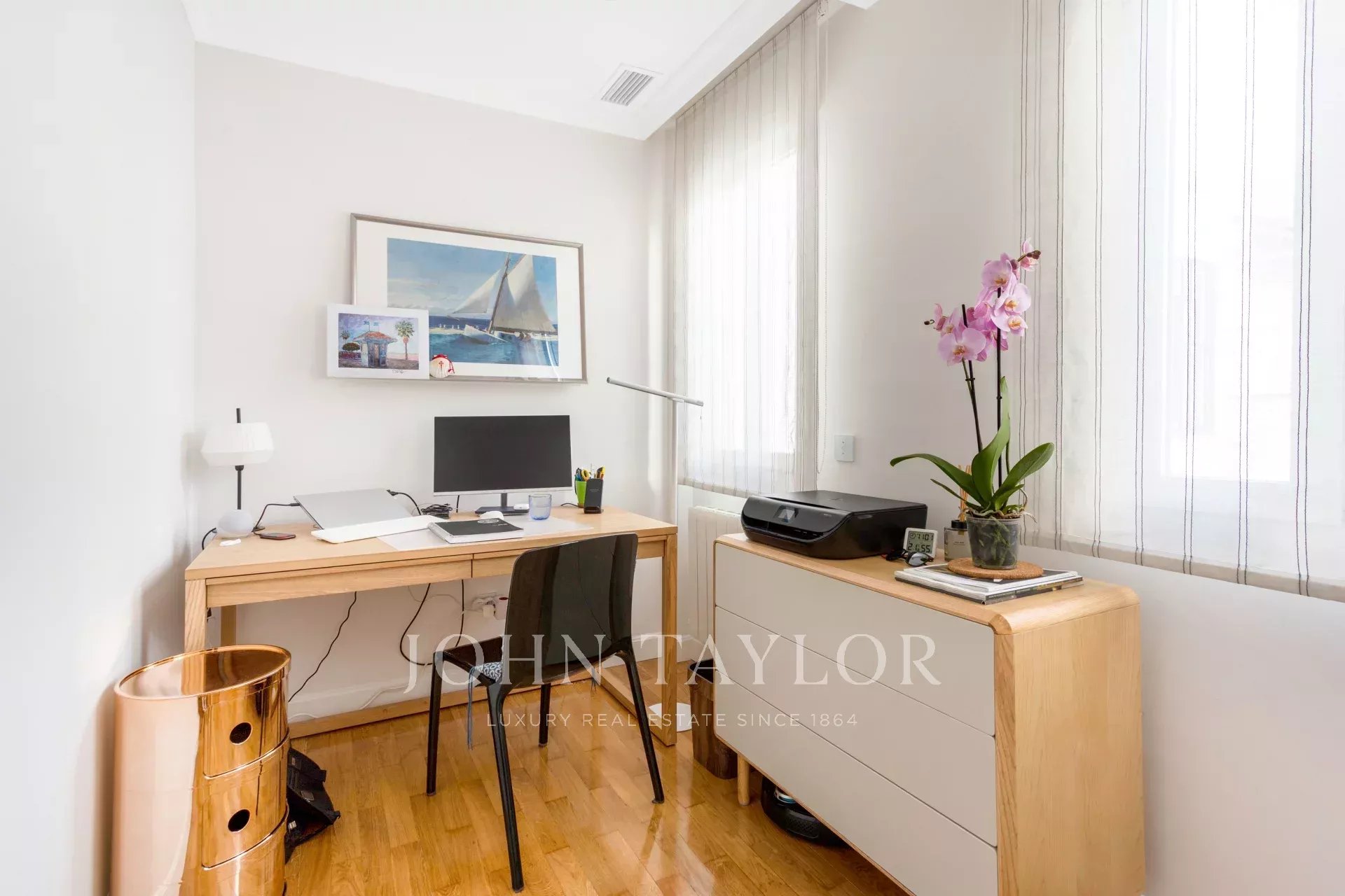 Zusätzlich hat diese Wohnung ein Büro, das von der gemeinsamen Terrasse aus zugänglich ist.