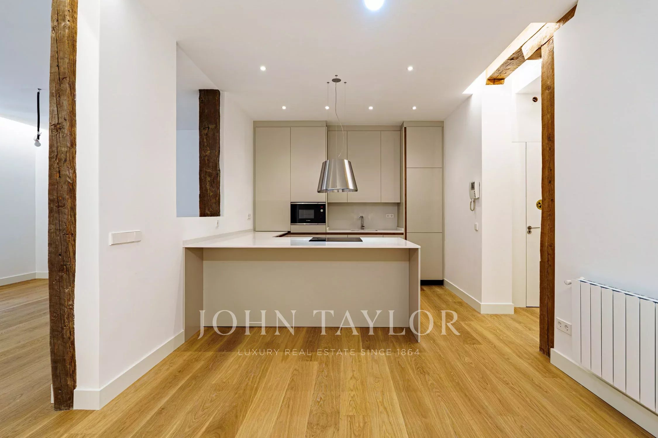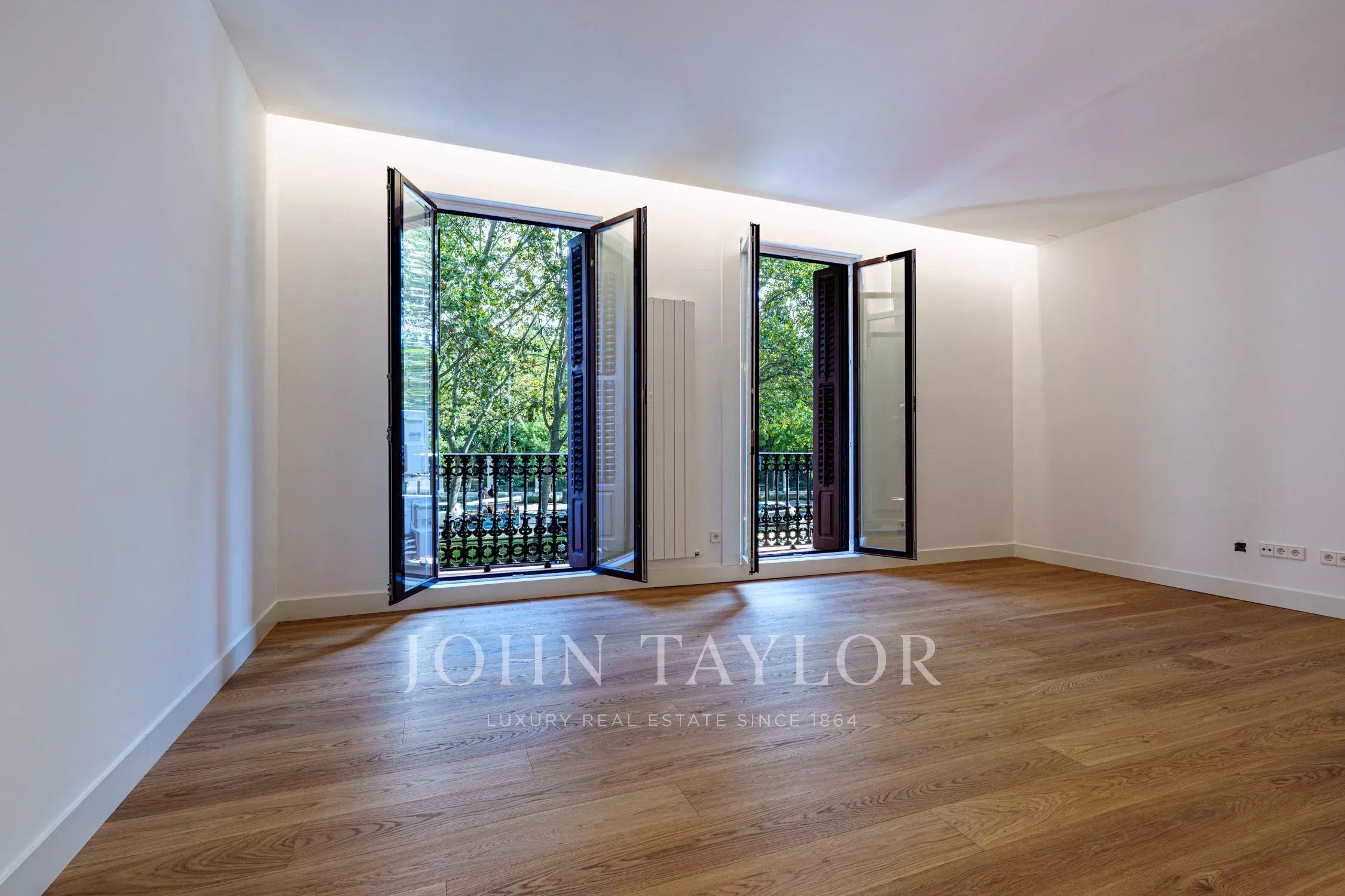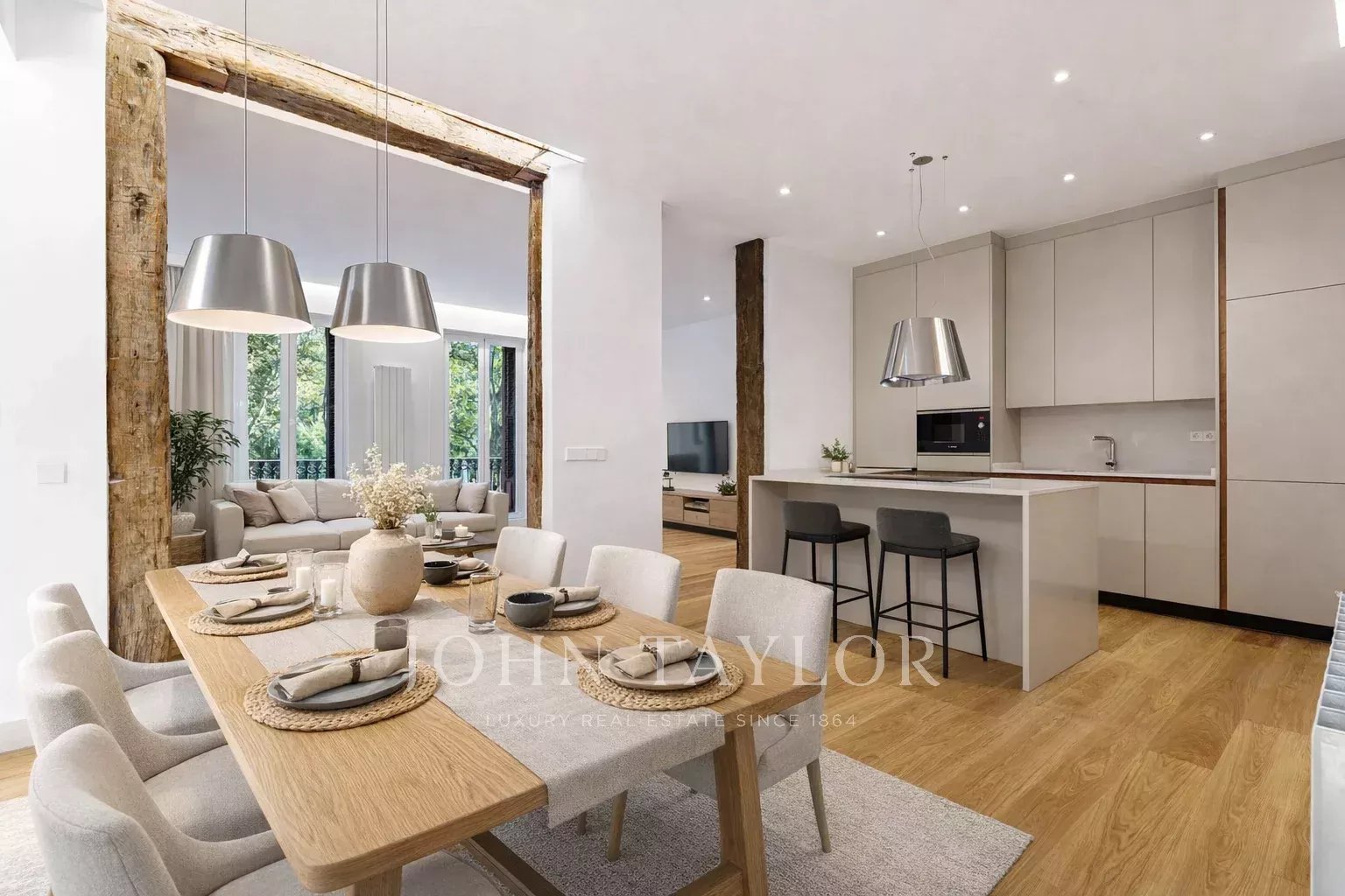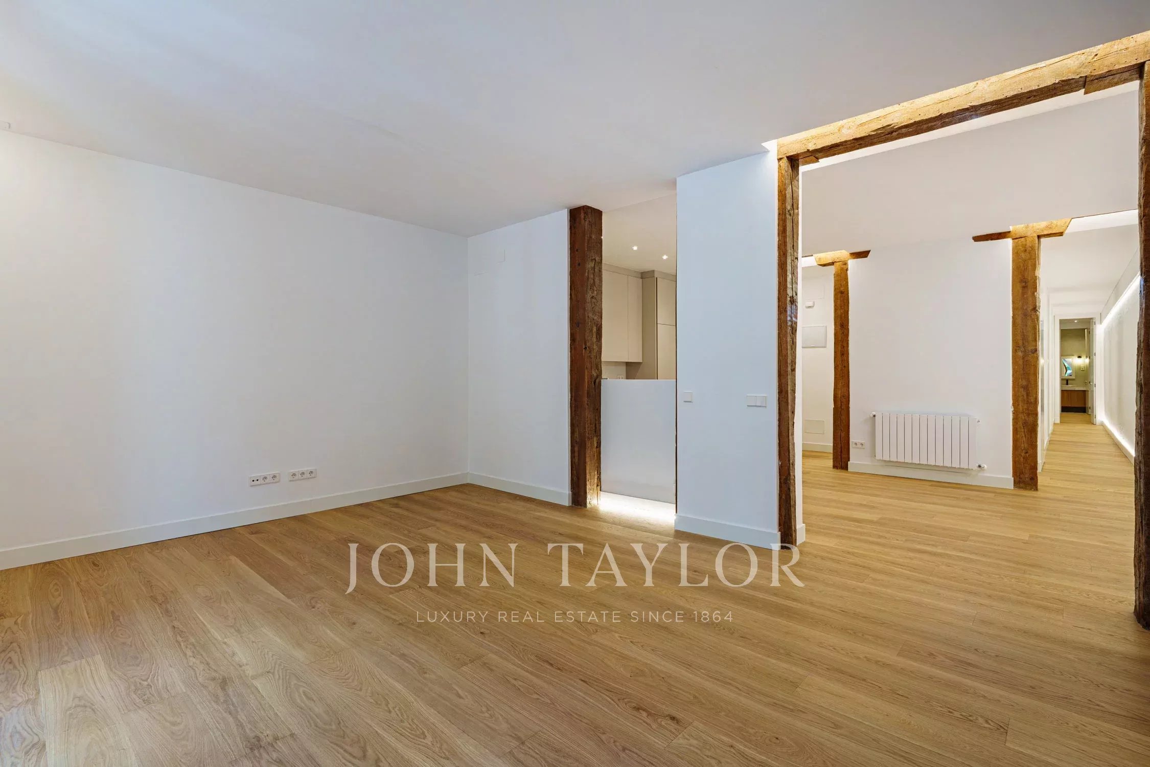 Im Stadtteil Cortes gelegen, bietet diese elegante 152 m² große Wohnung eine raffinierte Interpretation des Lebens im Zentrum von Madrid. Ein Raum, in dem Geräumigkeit, natürliches Licht und eine hochwertige Konstruktion ein ruhiges und zeitloses Wohnerlebnis definieren.