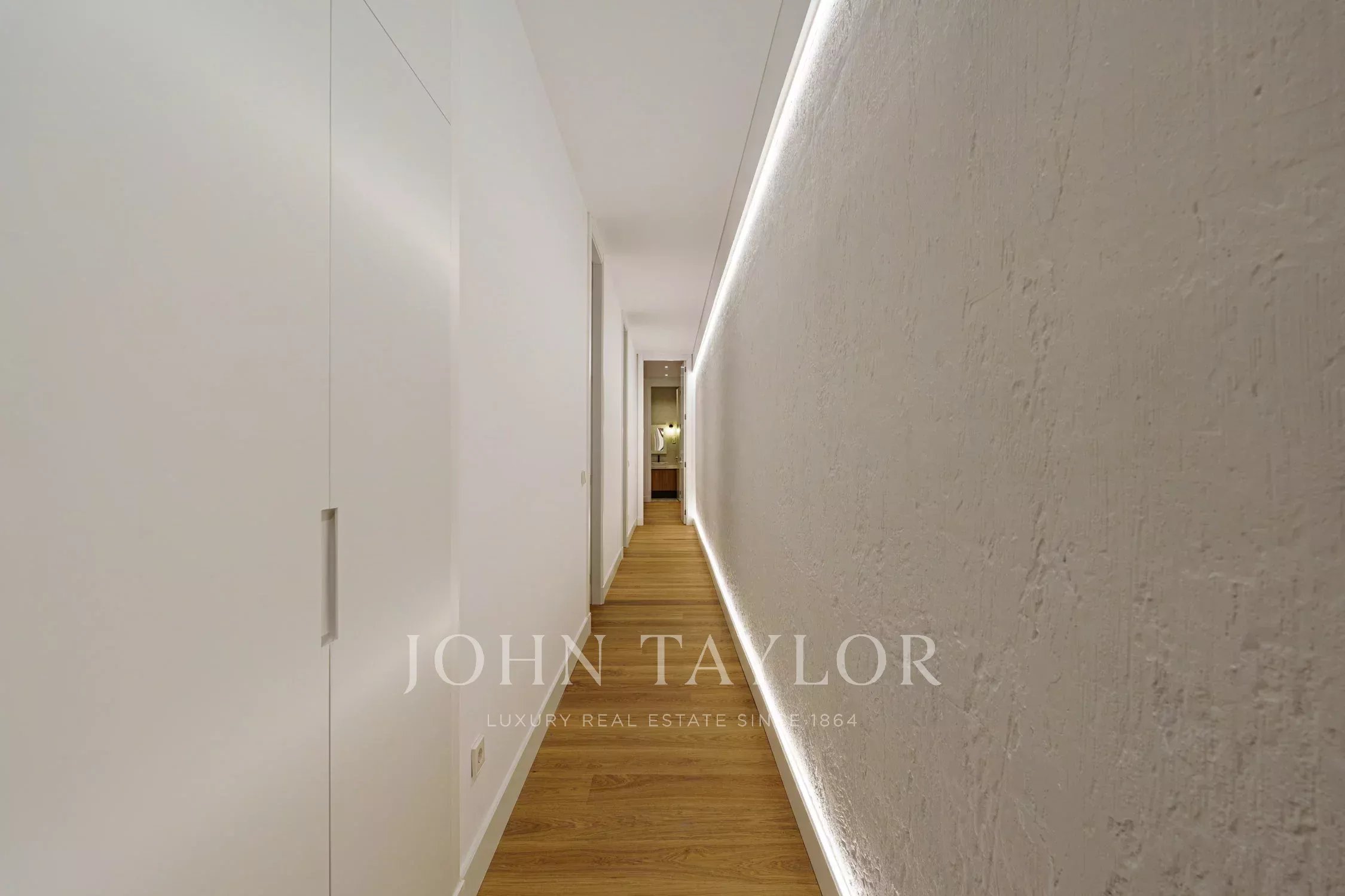 Die Wohnung zeichnet sich durch ihre großzügigen und wohlproportionierten Räume aus, die durch große Fenster mit viel natürlichem Licht durchflutet werden und Komfort und Privatsphäre garantieren. Jeder Raum wurde mit einer ausgewogenen Aufteilung konzipiert, um das Haus auf natürliche und ungekünstelte Weise zu genießen.