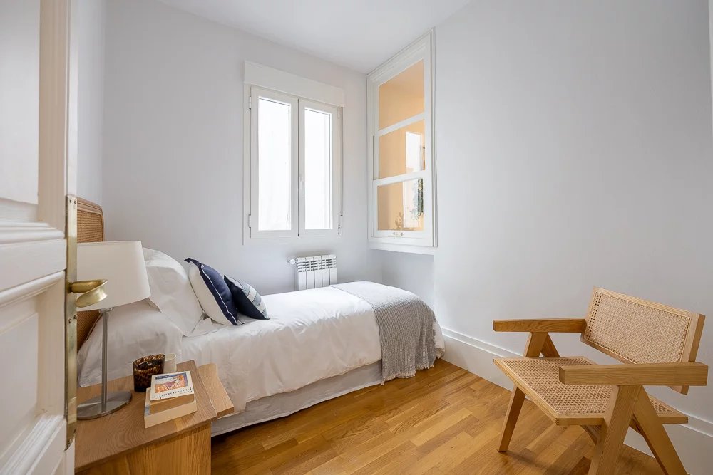 Diese Immobilie befindet sich im ersten Stock eines klassischen Gebäudes aus dem Jahr 1910 in einer ruhigen Straße im lebhaften Viertel Justicia, in der Nähe der Plaza de las Salesas und des Paseo de Recoletos.