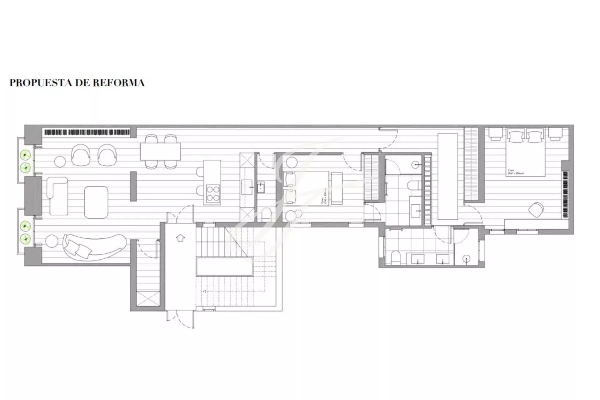 Es hat 154m² bebaute Fläche. Das Wohnzimmer ist hell und verfügt über zwei Balkone mit Blick auf die Straße. Daneben befindet sich der Essbereich mit der offenen Küche, die vor kurzem renoviert und komplett ausgestattet wurde. Im Schlafbereich finden wir ein erstes Schlafzimmer mit Einzelbett, mit einem separaten kompletten Badezimmer, das Hauptschlafzimmer mit seinem kompletten Badezimmer en-suite und schließlich ein drittes Schlafzimmer mit einem weiteren Badezimmer en-suite.