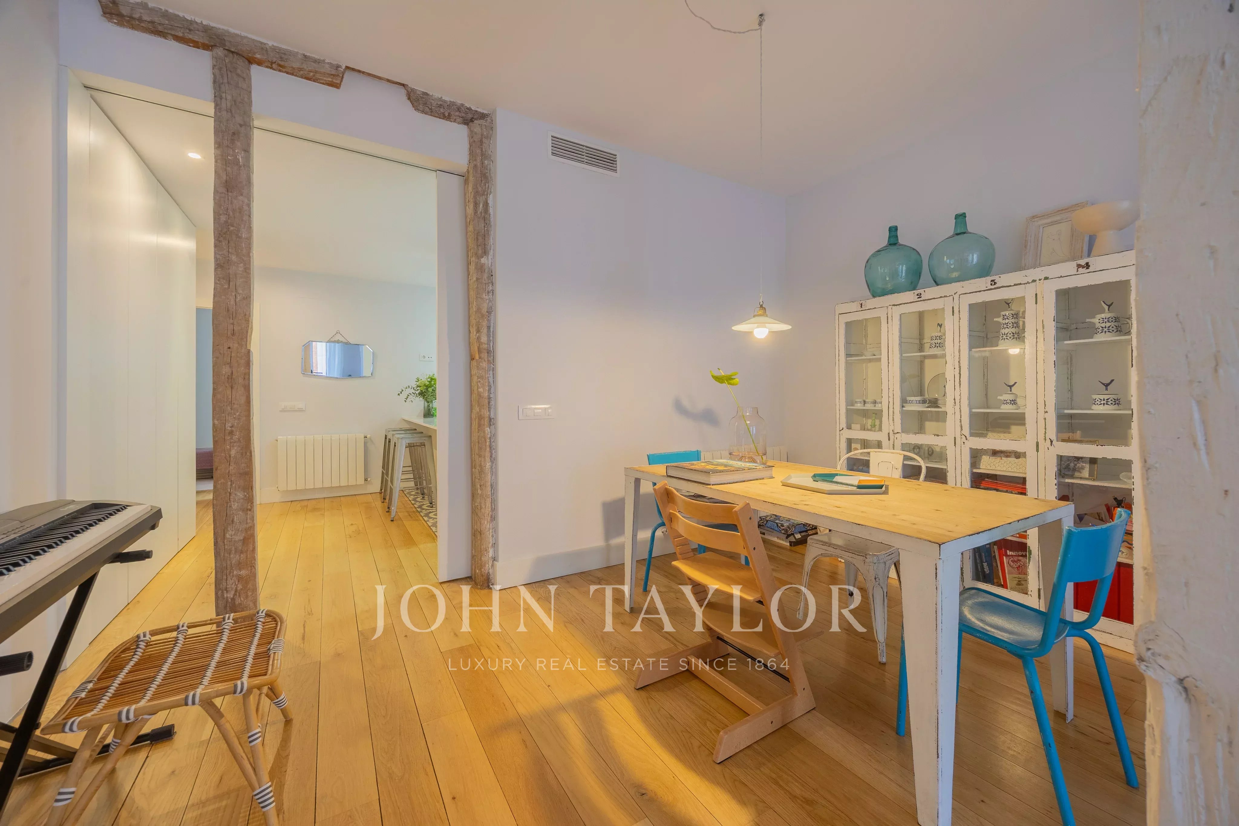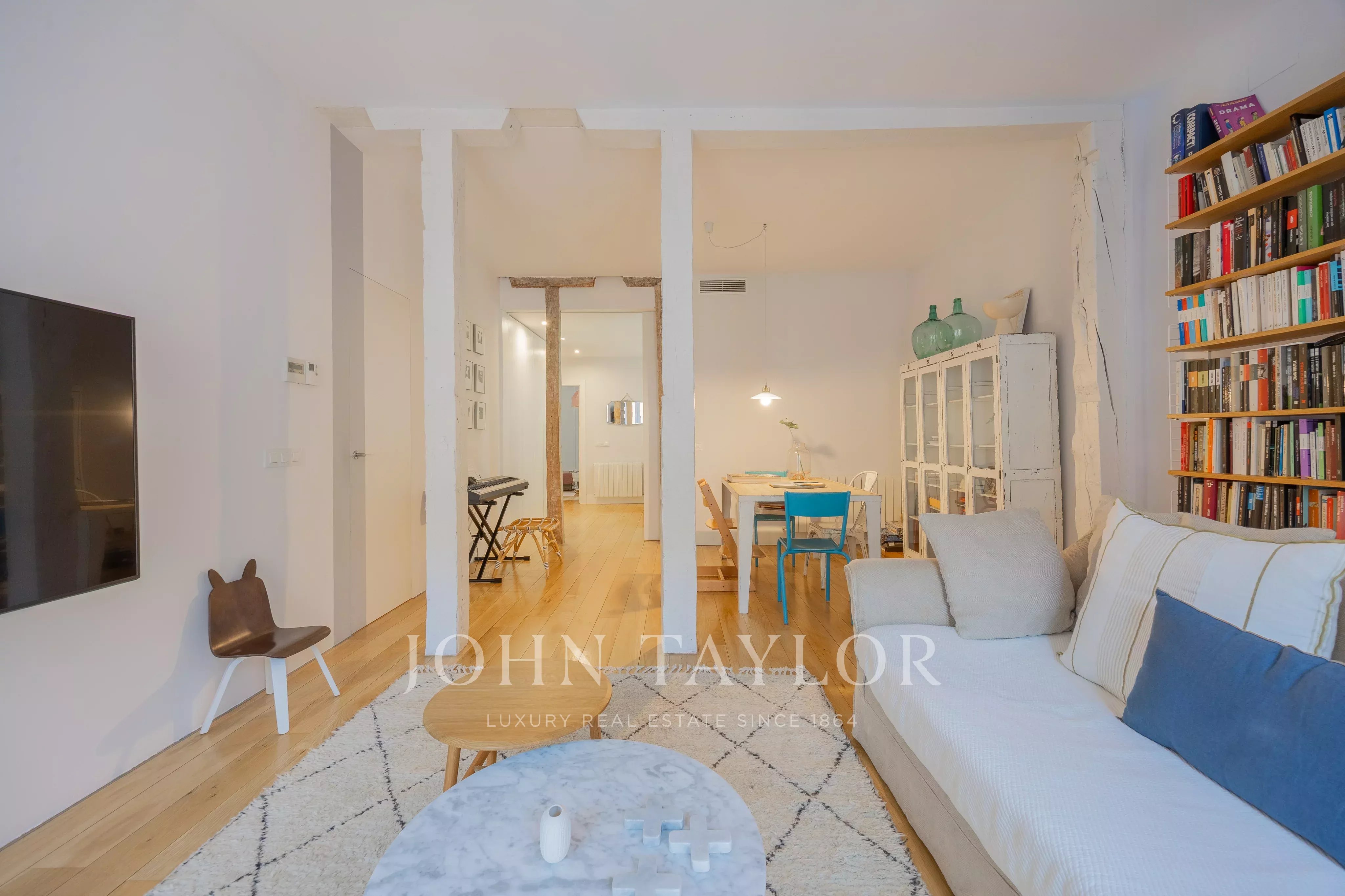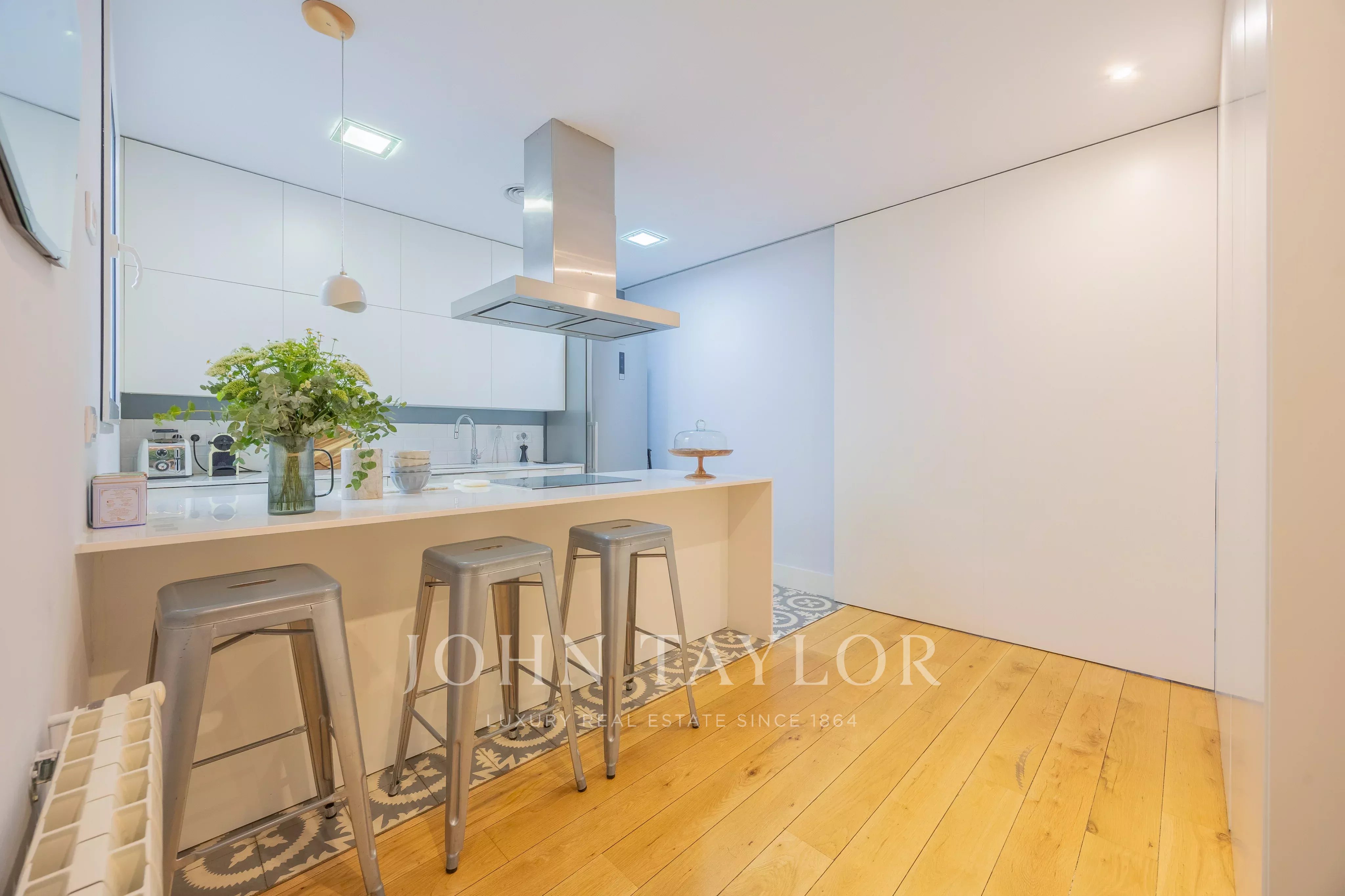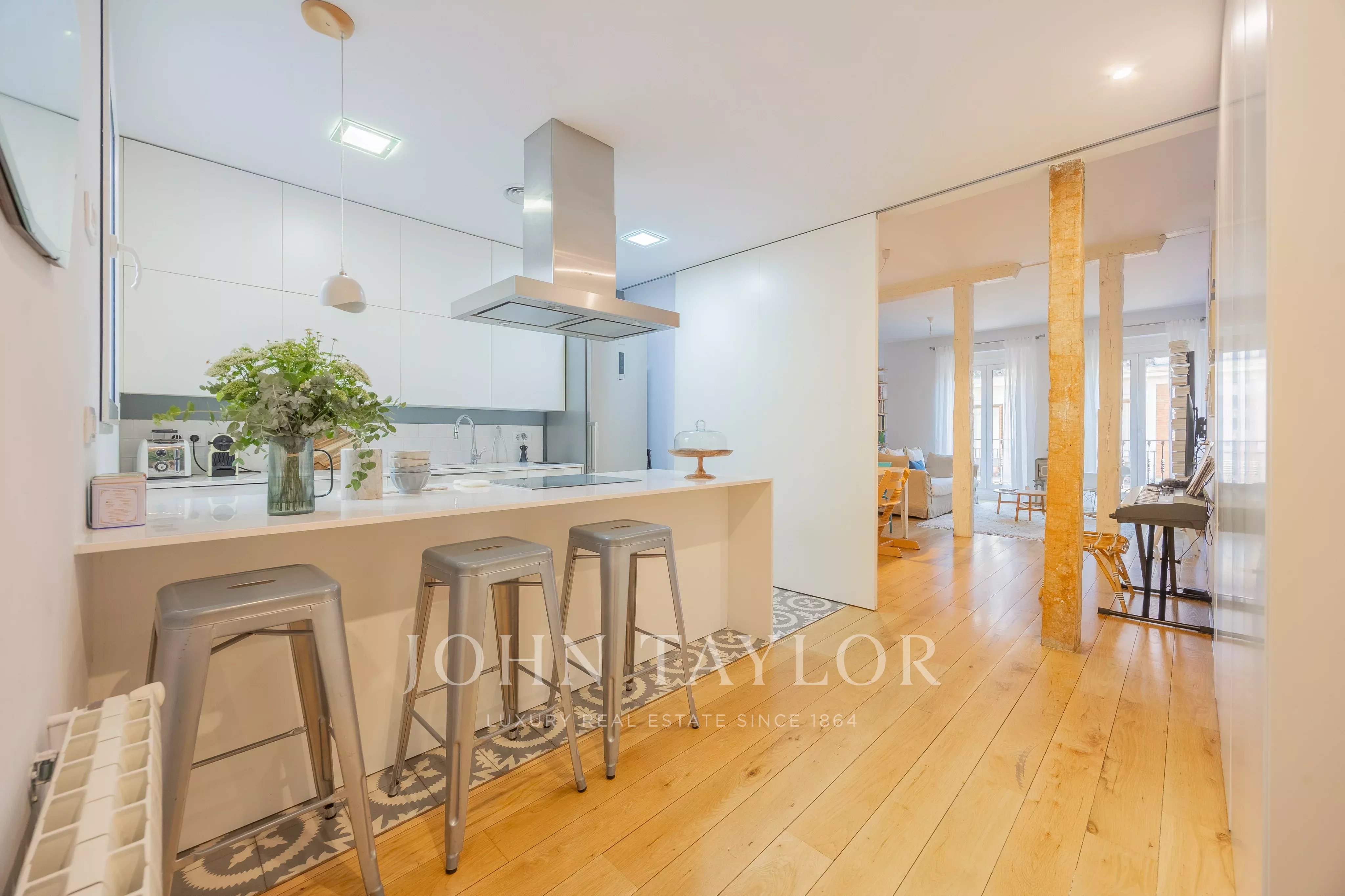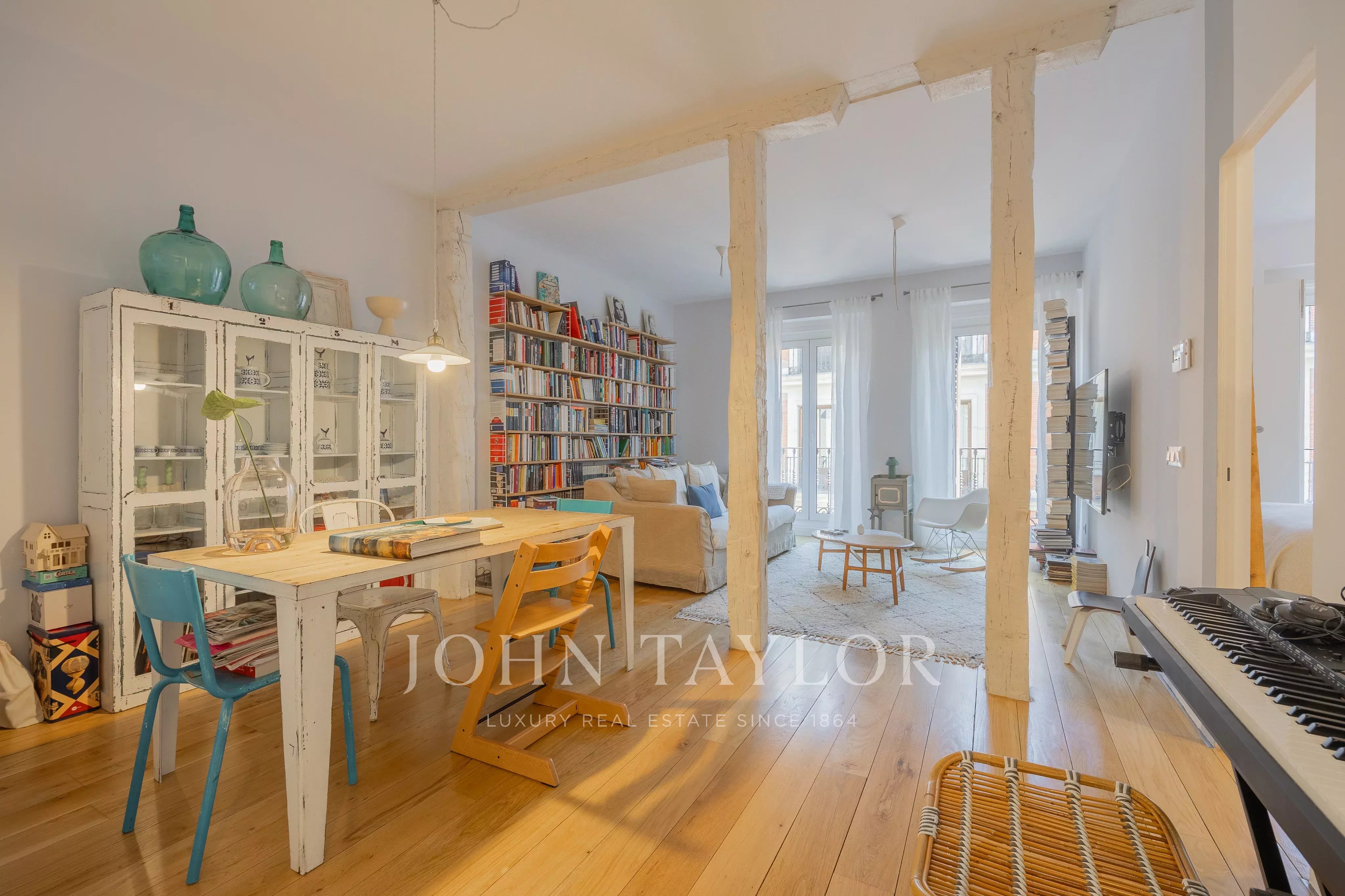 Perfekt zum Leben oder Investieren, bietet diese Wohnung Ruhe und Privatsphäre, ohne auf das lebendige Stadtleben im eleganten Stadtteil Salesas in Madrid verzichten zu müssen.