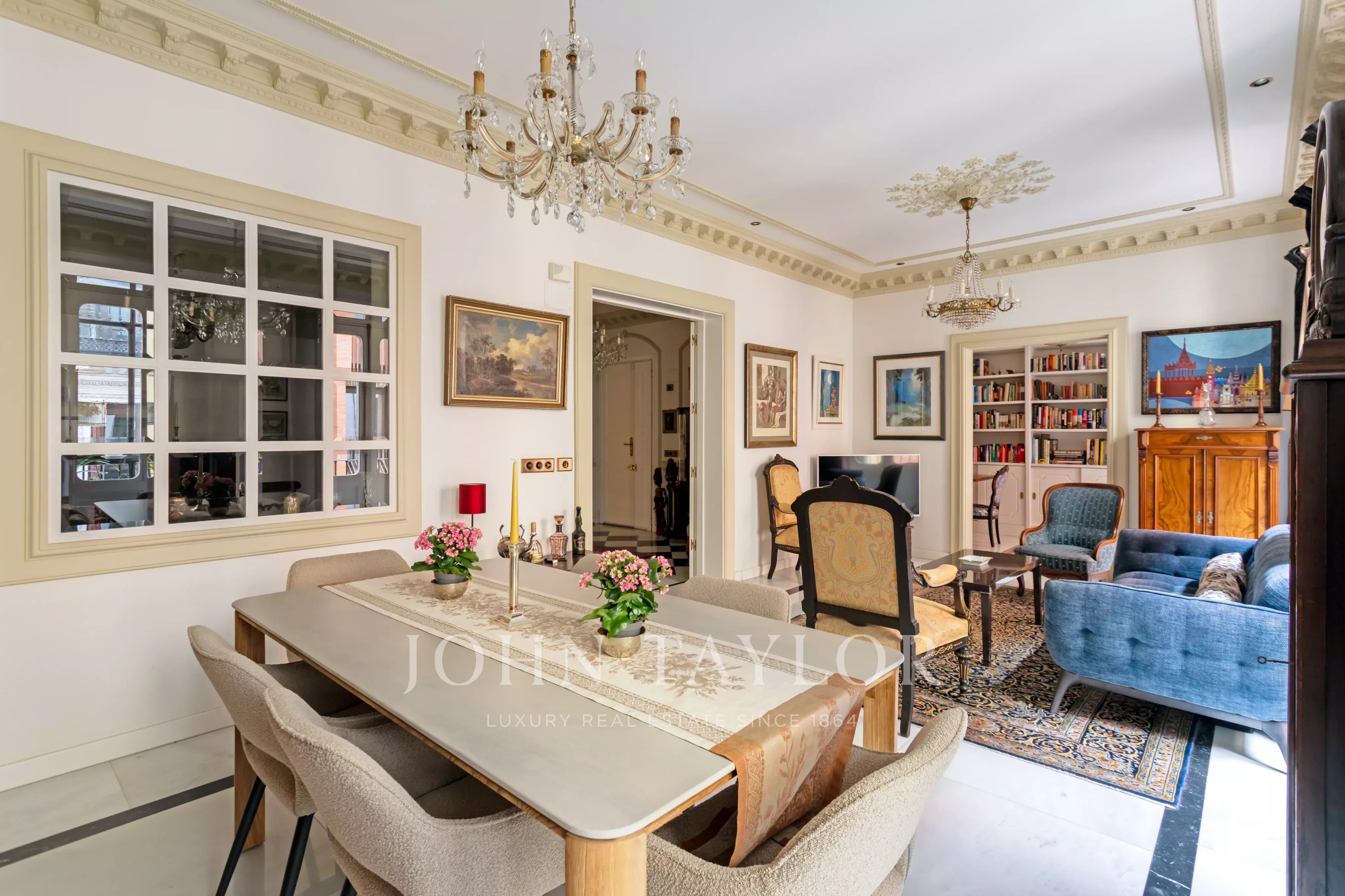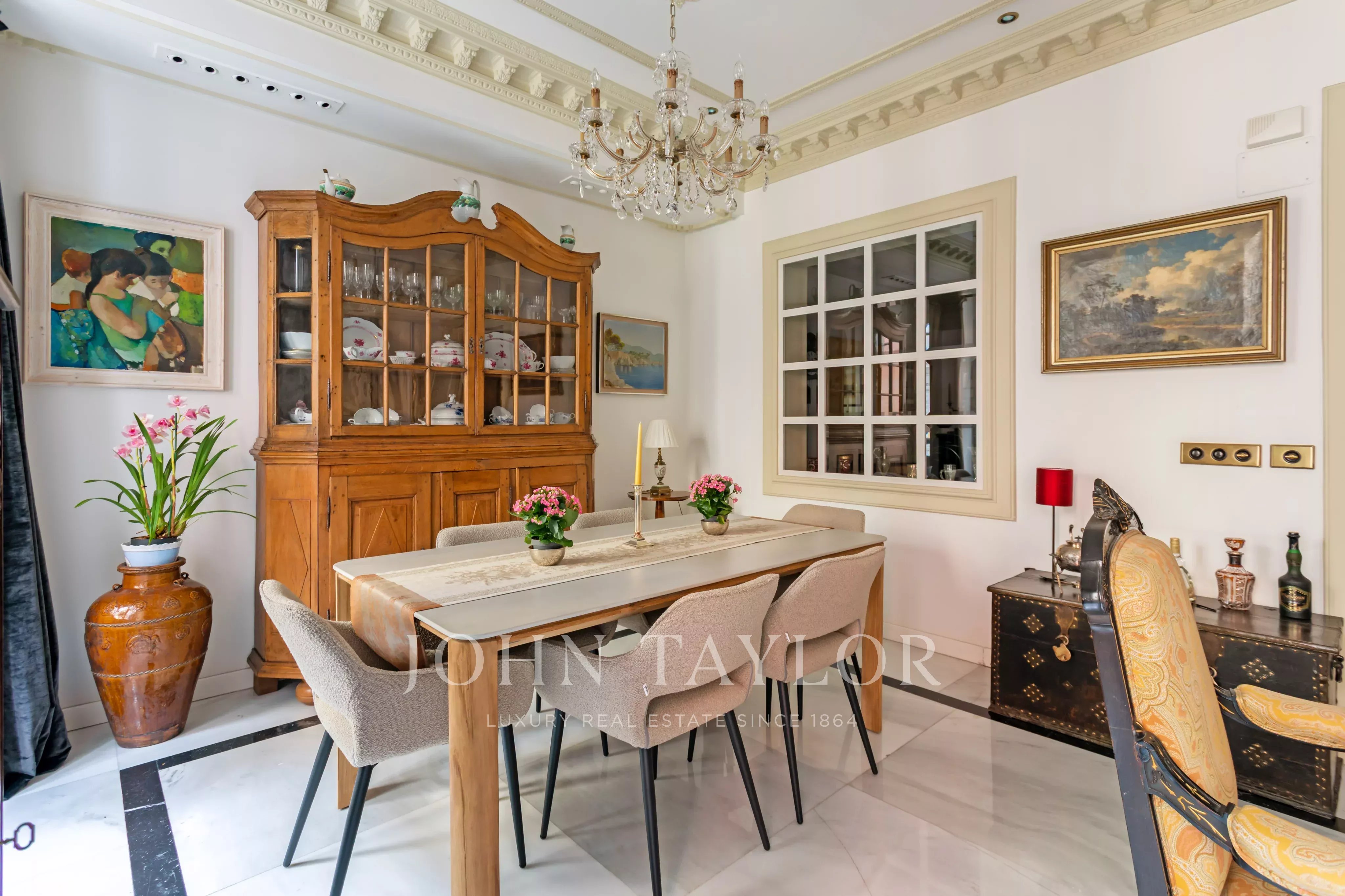 Das Innere offenbart eine gepflegte ästhetische Sprache, die Charakter und Zeitlosigkeit verbindet, und evoziert die klassische Essenz der Umgebung mit einer zeitgenössischen und sophistizierten Interpretation. Das Ergebnis ist ein Raum mit eigenem Charakter, der für diejenigen gedacht ist, die Schönheit in den Details und Einzigartigkeit in jedem Element schätzen.