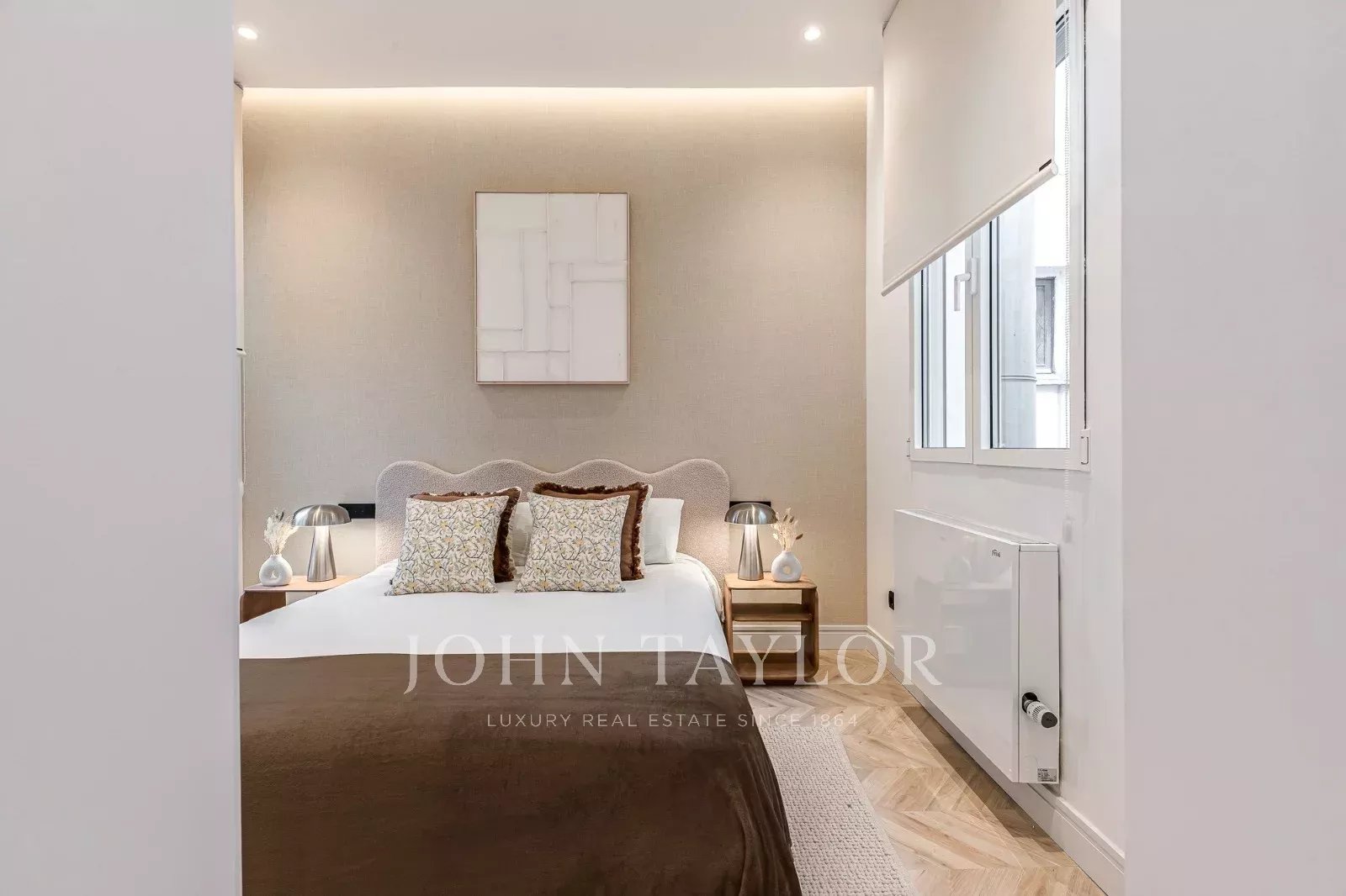 Der Schlafbereich besteht aus einem Hauptschlafzimmer mit Ankleideraum und eigenem Bad, zwei weiteren Doppelschlafzimmern und einem zweiten Bad.