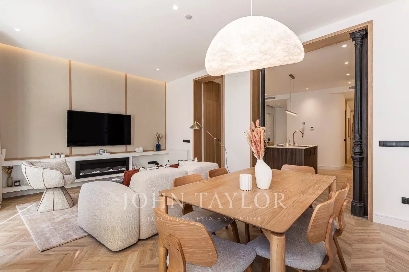 Die 127 m² Wohnfläche verteilen sich auf ein geräumiges und helles Wohnzimmer mit integrierter Küche und einer eleganten zentralen Insel, die den Raum gliedert. Der großzügige und gut abgegrenzte Essbereich macht diesen Raum zum wahren Herzstück der Wohnung, ideal sowohl für das tägliche Leben als auch für den Empfang von Gästen.