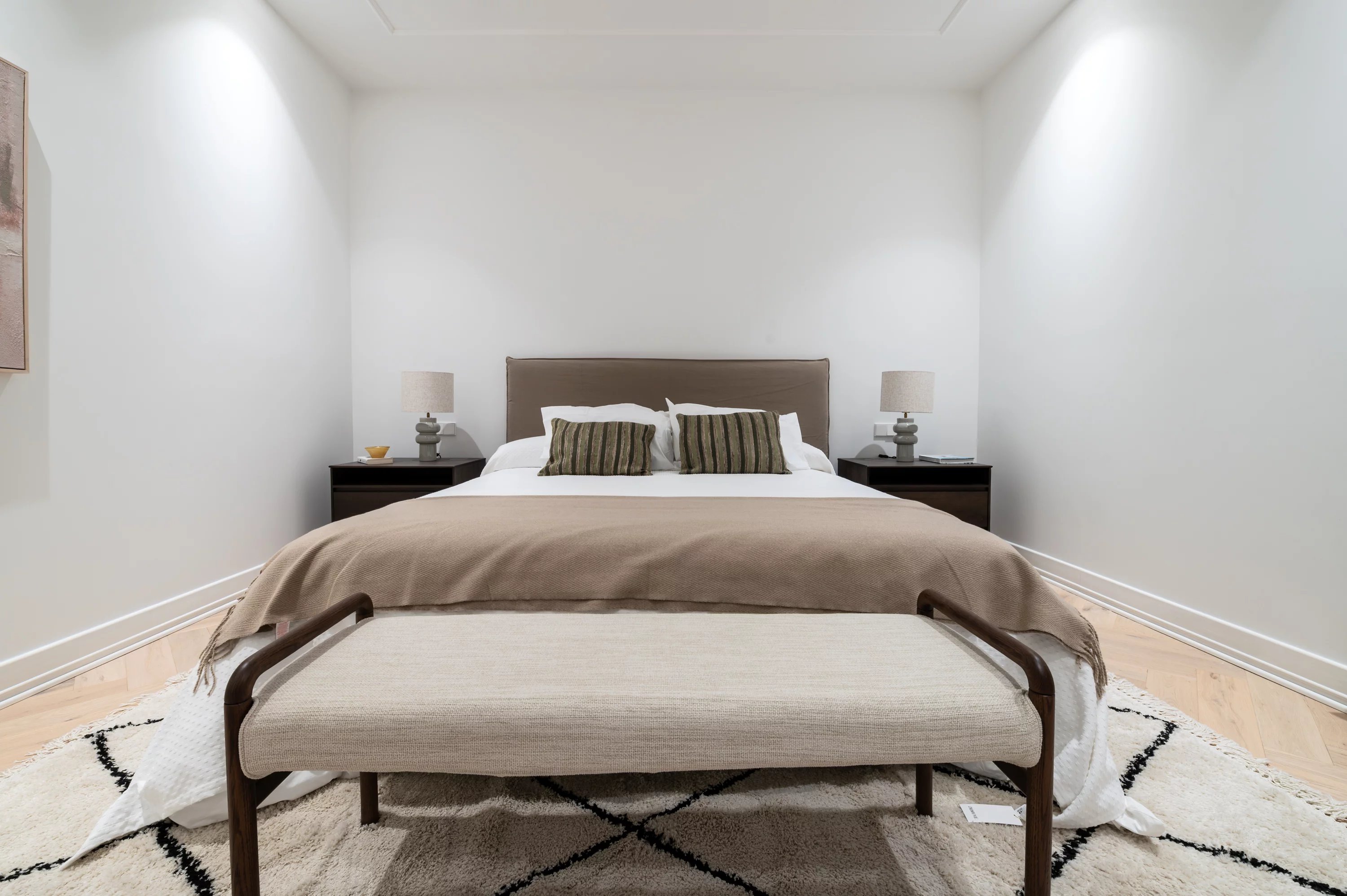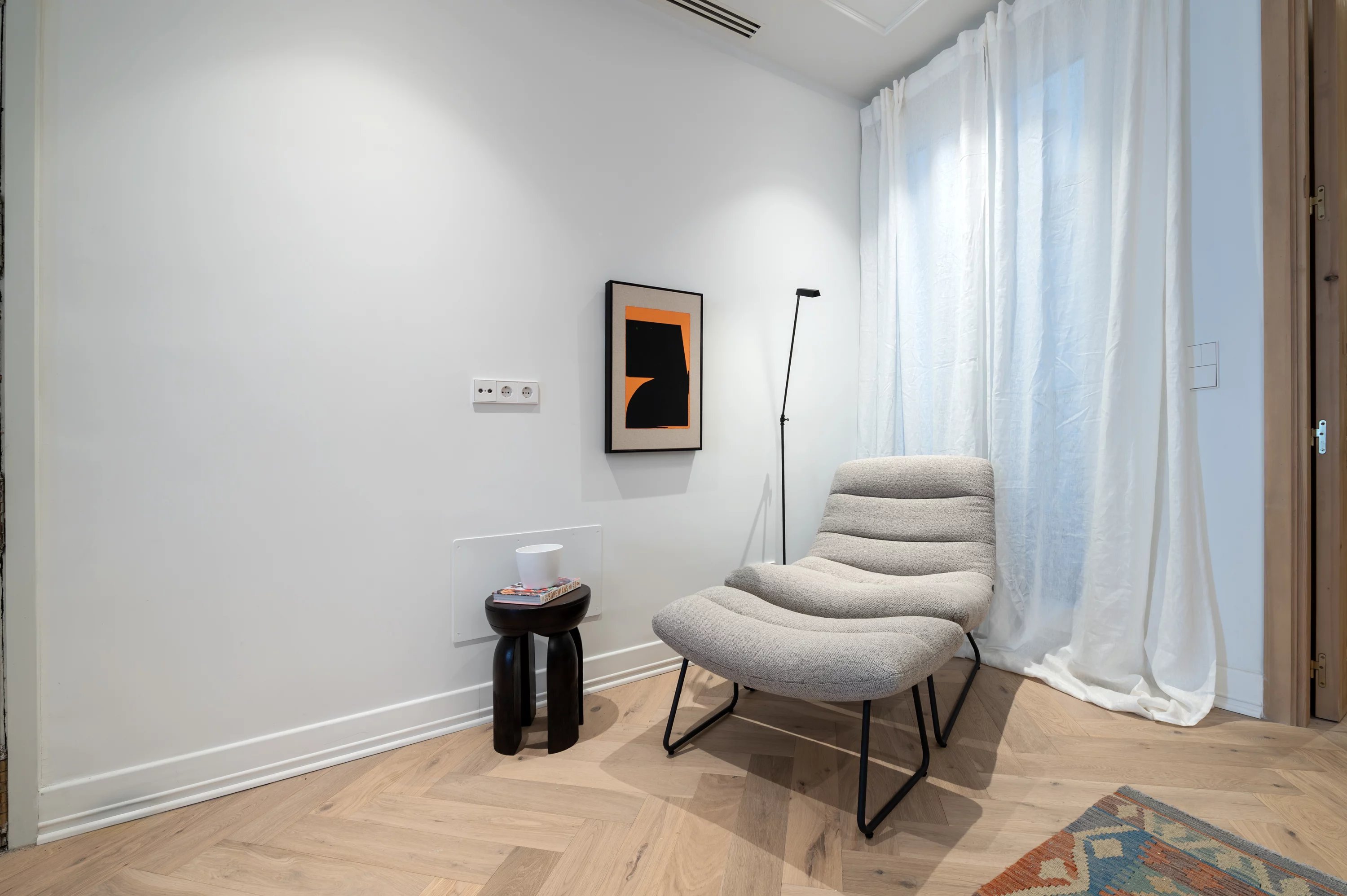 Sie verfügt über zwei Balkone mit Blick auf eine der kommerziellsten und lebhaftesten Straßen des Viertels und bietet eine einzigartige Verbindung zur Dynamik des Viertels. Dank der hervorragenden Ausrichtung und der großen Fenster genießt die Wohnung den ganzen Tag über eine außergewöhnliche Helligkeit und schafft warme und einladende Räume.