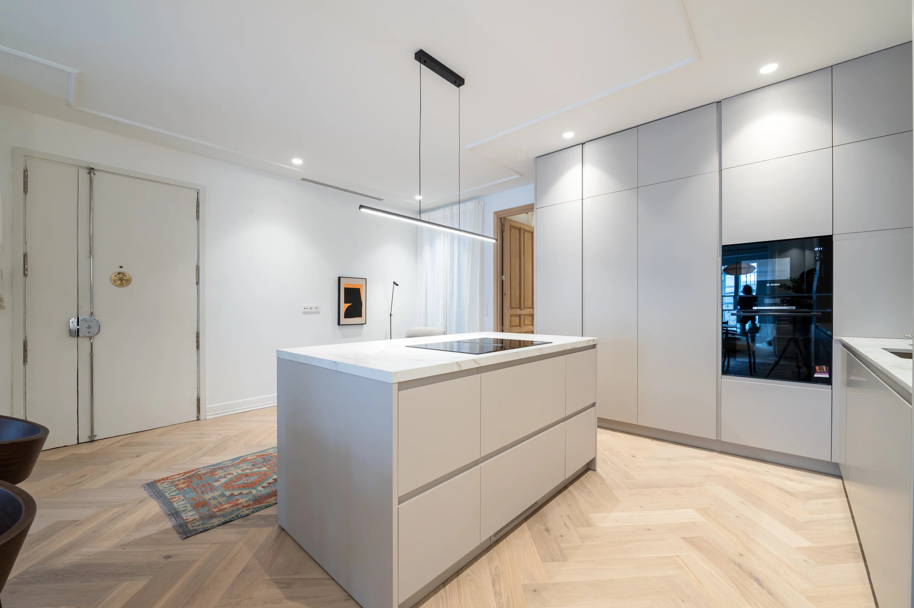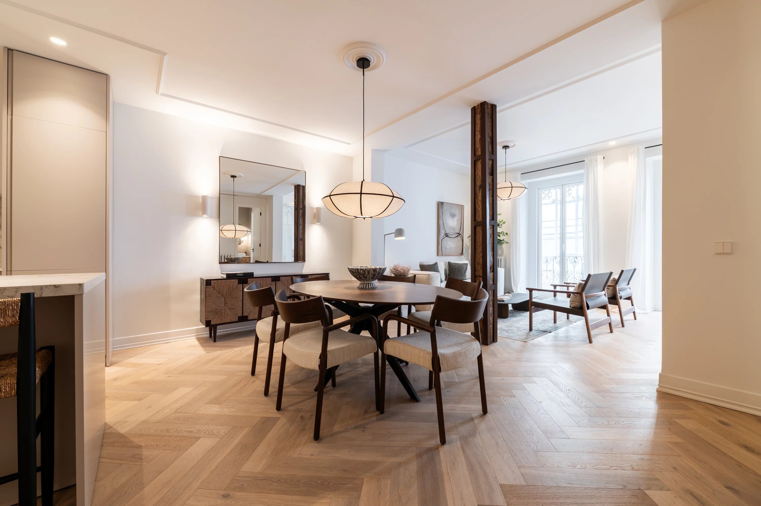 Bei der umfassenden Renovierung wurden edle Fußböden, Designer-Tischlerarbeiten, voll ausgestattete moderne Küchen und Bäder mit hochwertigen Oberflächen eingebaut, wodurch ein perfektes Gleichgewicht zwischen Raffinesse und Komfort erreicht wurde. Eine einzigartige Gelegenheit, in einer der begehrtesten Gegenden Madrids zu wohnen, mit dem ganzen Charme des Viertels und höchstem Komfort.