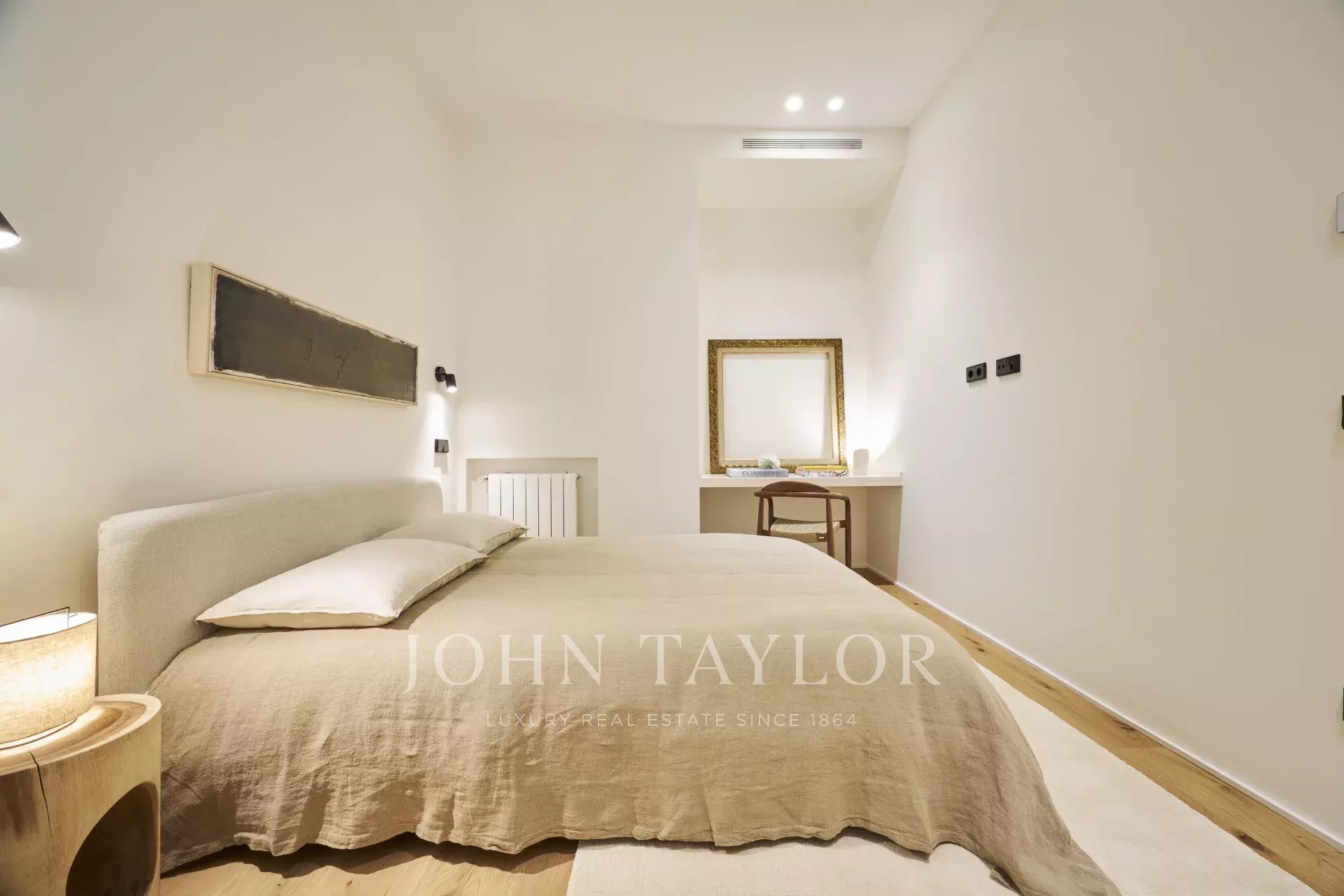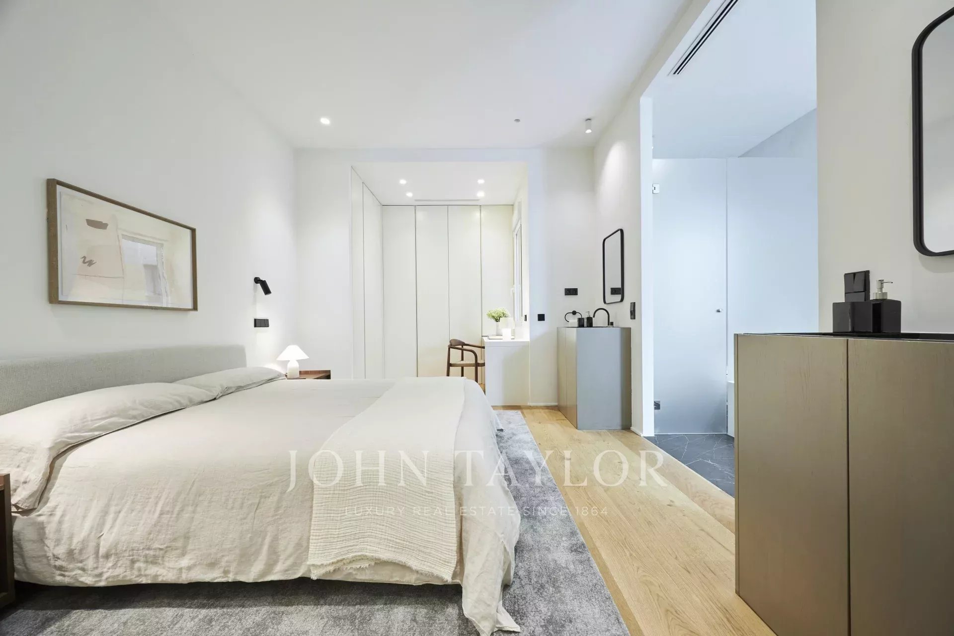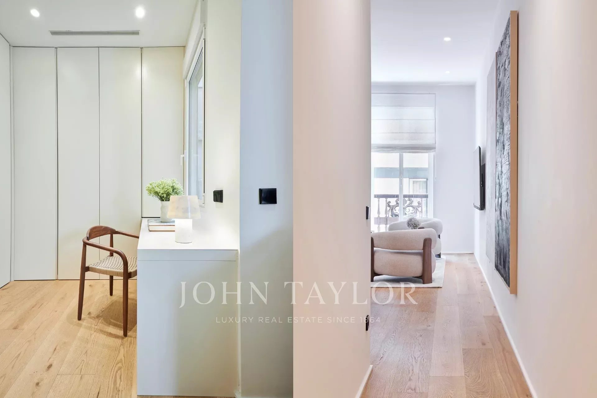 Es verfügt über drei geräumige Schlafzimmer, jedes mit eigenem Bad, eine Gästetoilette und einen Abstellraum und bietet eine perfekte Verteilung, die das natürliche Licht und die Eleganz jedes Raumes hervorhebt.