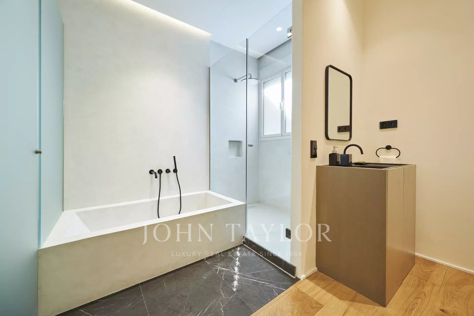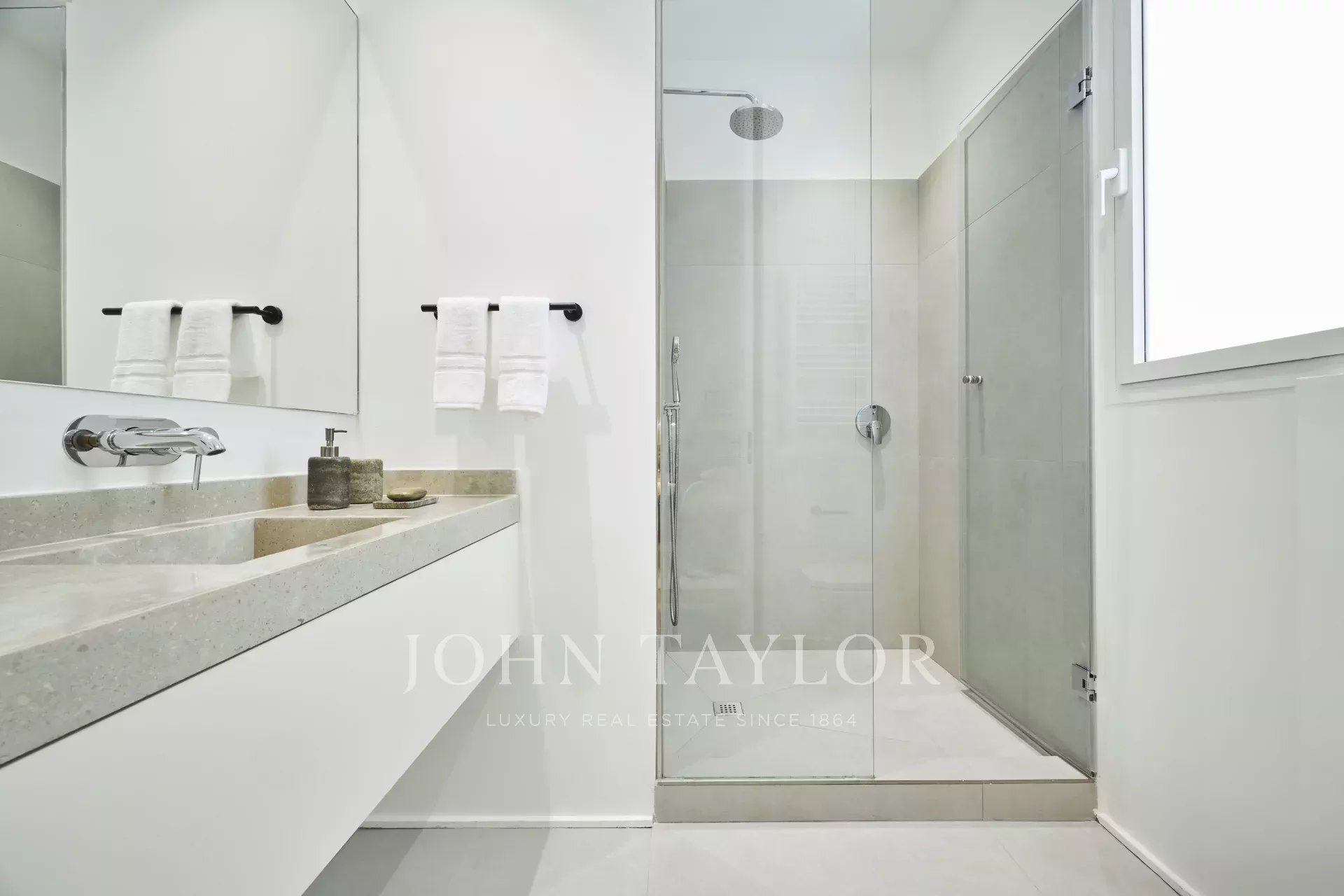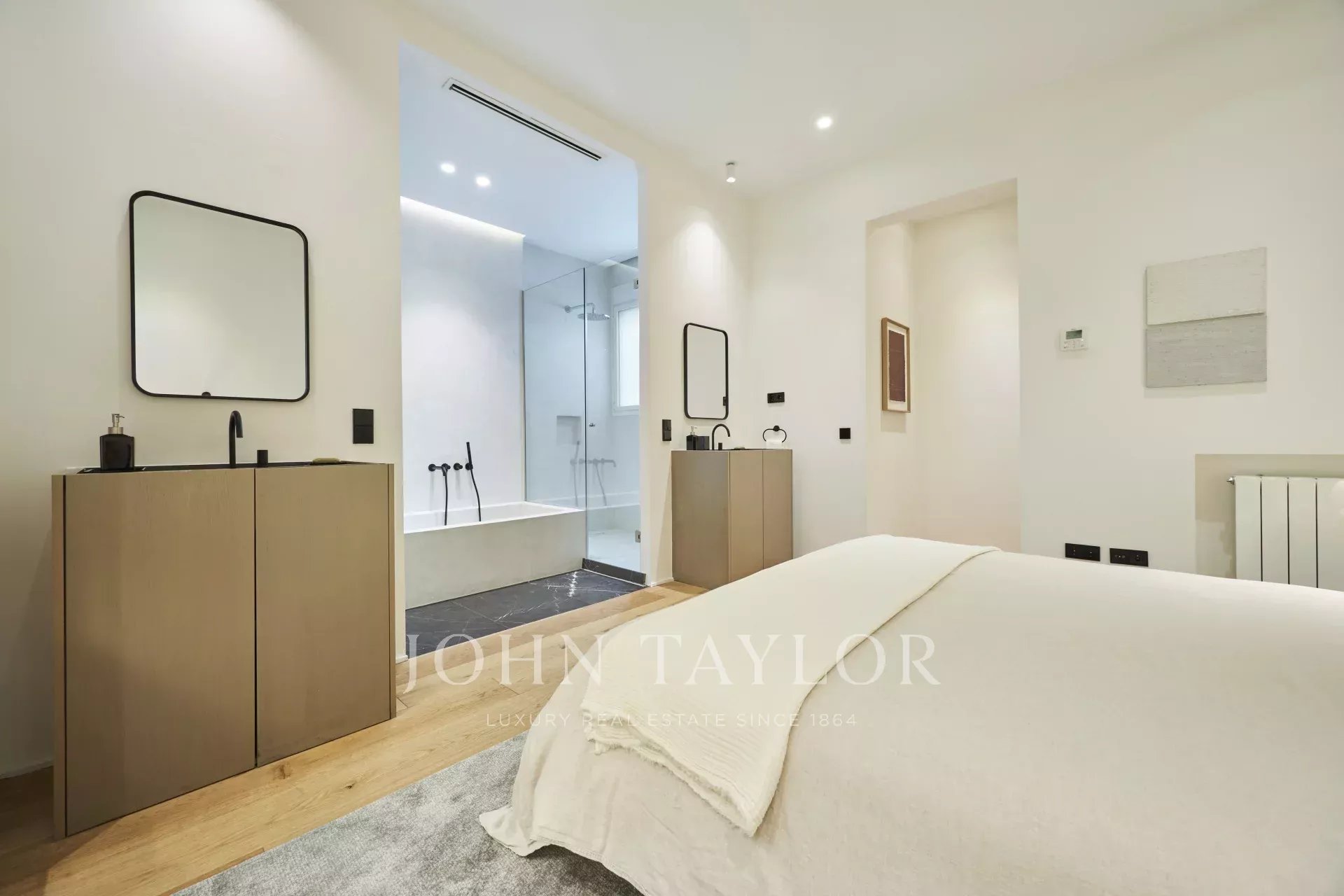 Es verfügt über drei geräumige Schlafzimmer, jedes mit eigenem Bad, eine Gästetoilette und einen Abstellraum und bietet eine perfekte Verteilung, die das natürliche Licht und die Eleganz jedes Raumes hervorhebt.
