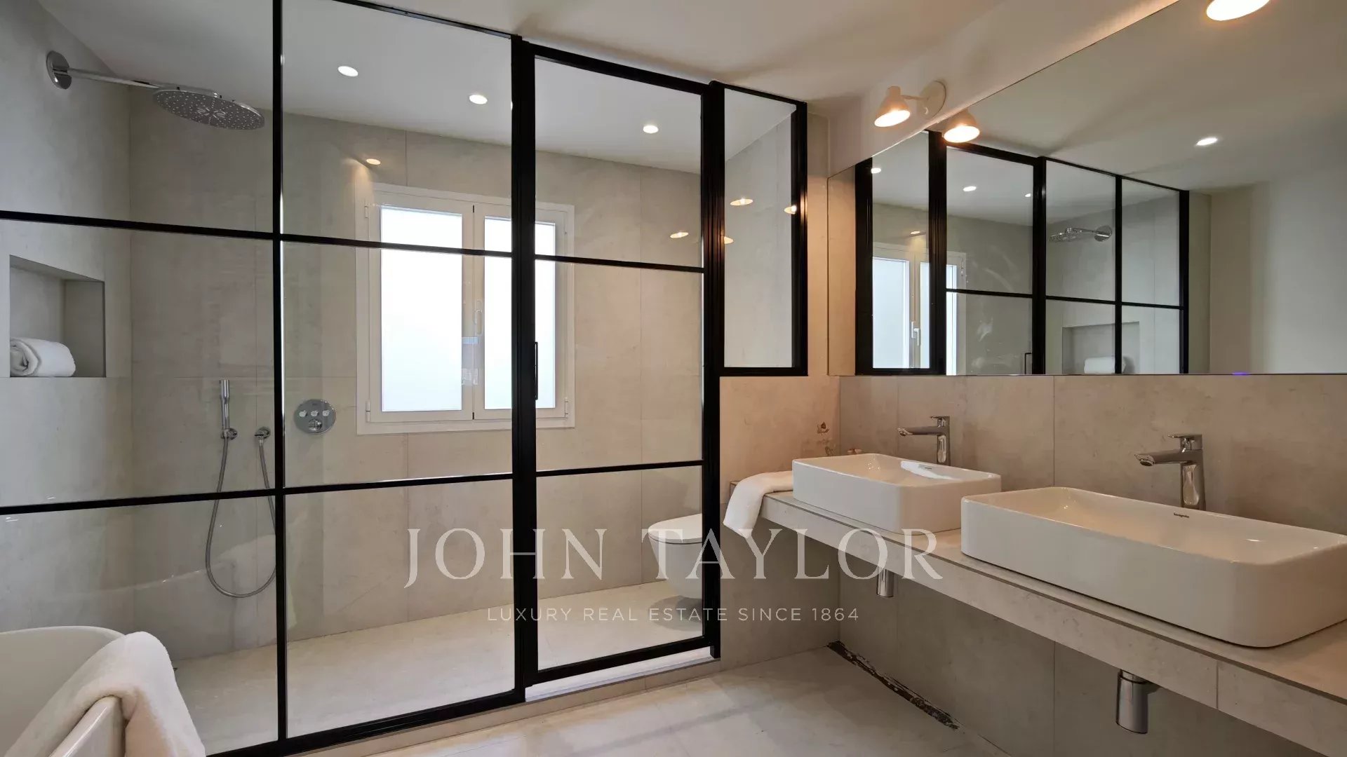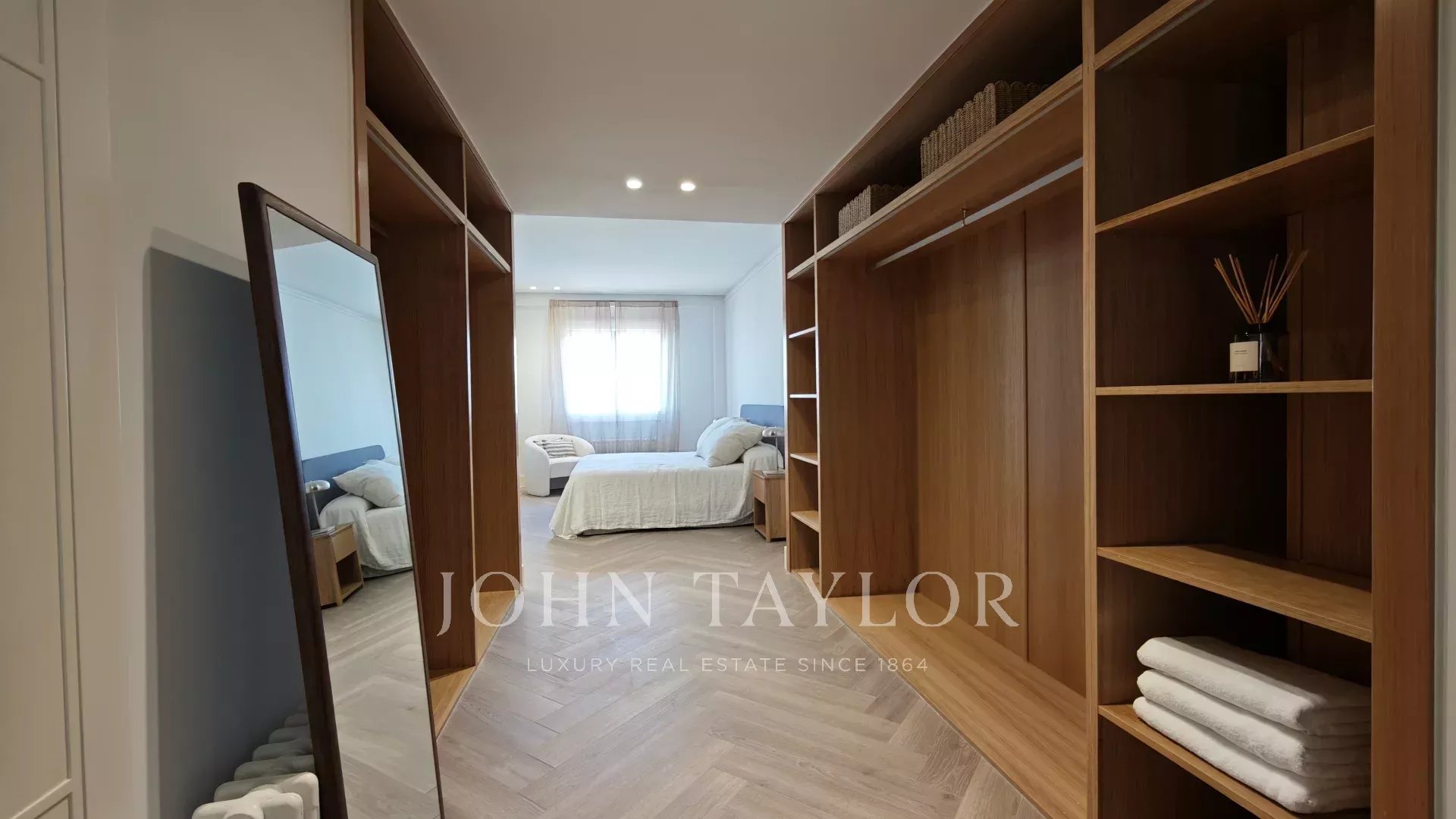 Jedes gewählte Material steht für Exzellenz: Die Bäder sind mit rektifizierten Feinsteinzeugfliesen verkleidet, die Armaturen von Hansgrohe, das Hauptbad mit indirekter Beleuchtung lädt zum Entspannen ein. Die Technologie verstärkt das Gefühl des Wohlbefindens: domotische Jalousien, automatisierte Jalousien und Lichter, sektorisierte Klimaanlagen von Daikin und Zentralheizung mit individuellem Verbrauch.