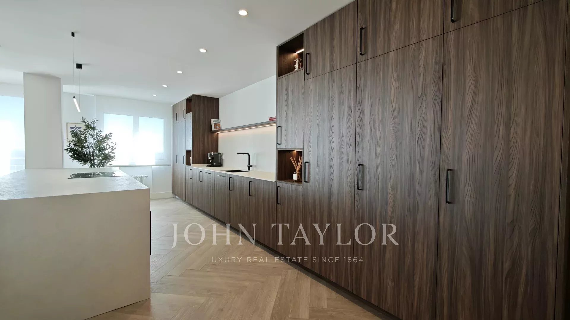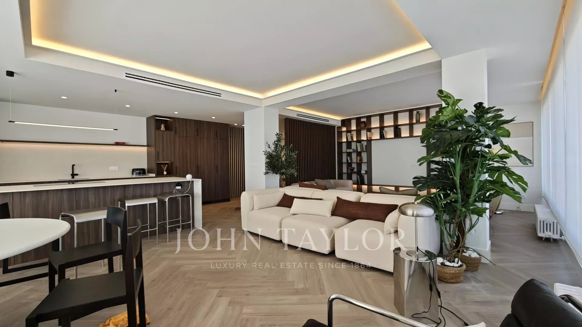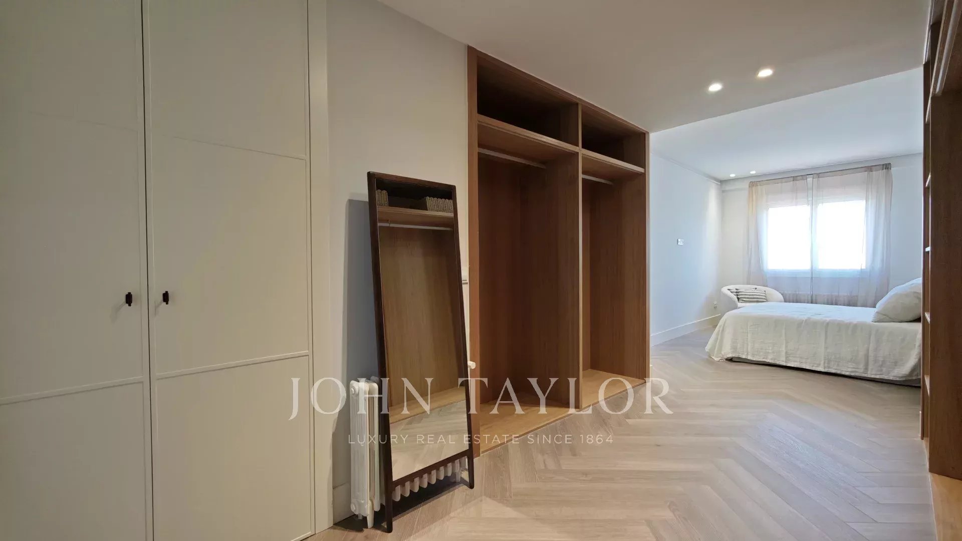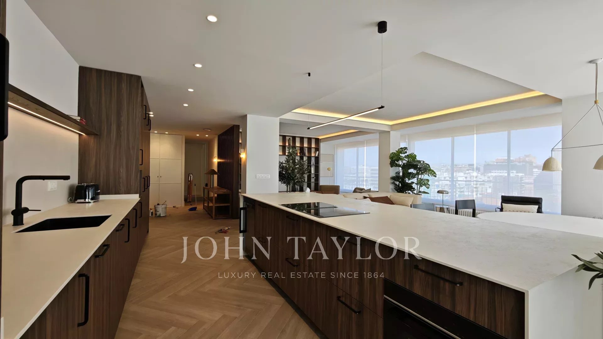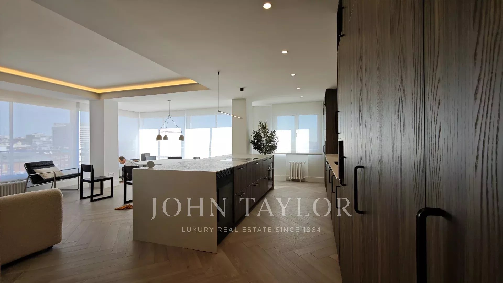 Im Herzen des Paseo de la Castellana, im fünfzehnten Stock mit Blick auf die Skyline von Madrid, befindet sich eine Wohnung, die das Konzept des urbanen Luxus neu definiert. Die 217 m² Wohnfläche sind in einem ausgewogenen Layout angelegt, das für diejenigen gedacht ist, die Design, Komfort und Technologie auf demselben Raum suchen.