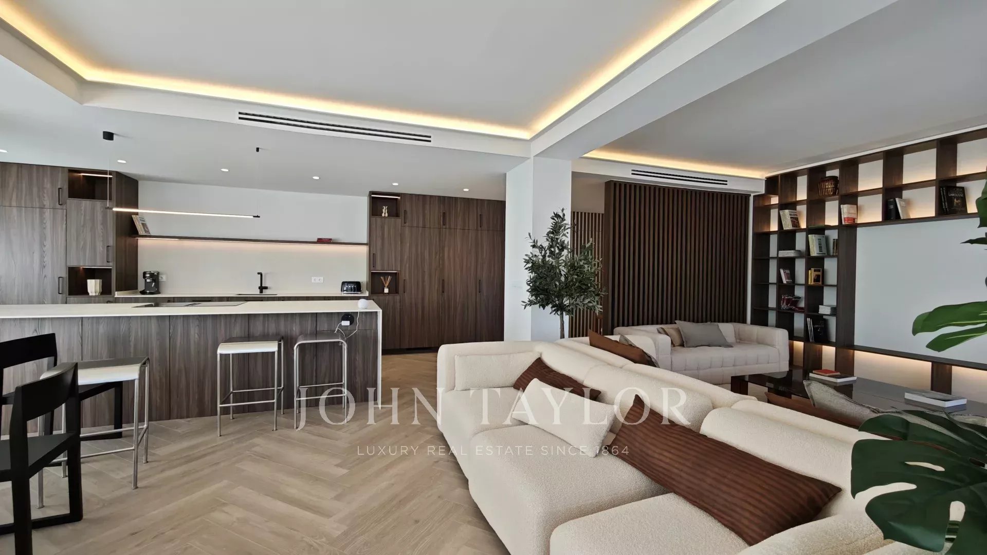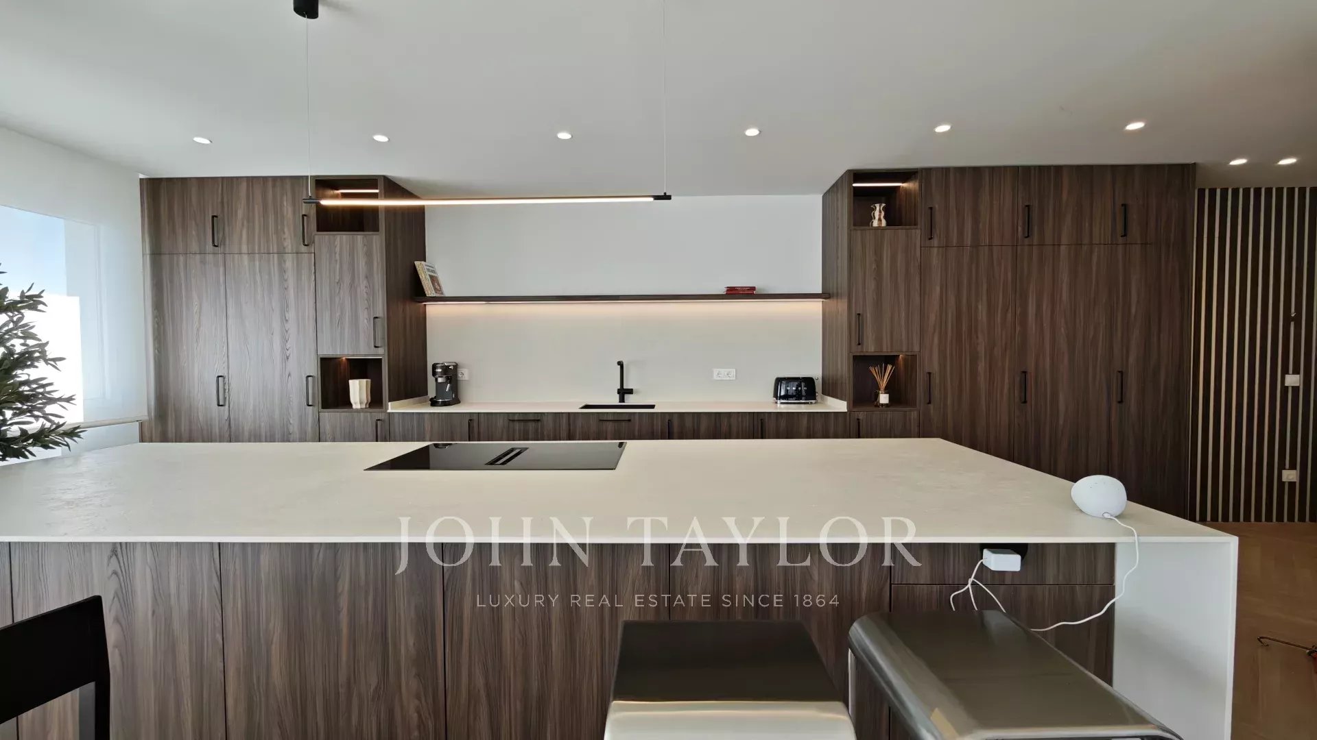 Im Inneren sorgen drei Doppelschlafzimmer - zwei davon mit eigenem Bad - und ein zusätzlicher Mehrzweckraum für Flexibilität im täglichen Leben. Eine Gästegarderobe, die sich geschickt hinter einer zarten Holzvertäfelung verbirgt, sowie die Eingangstür zeigen, wie viel Wert auf Design gelegt wird.