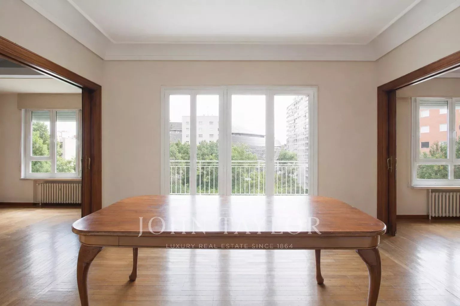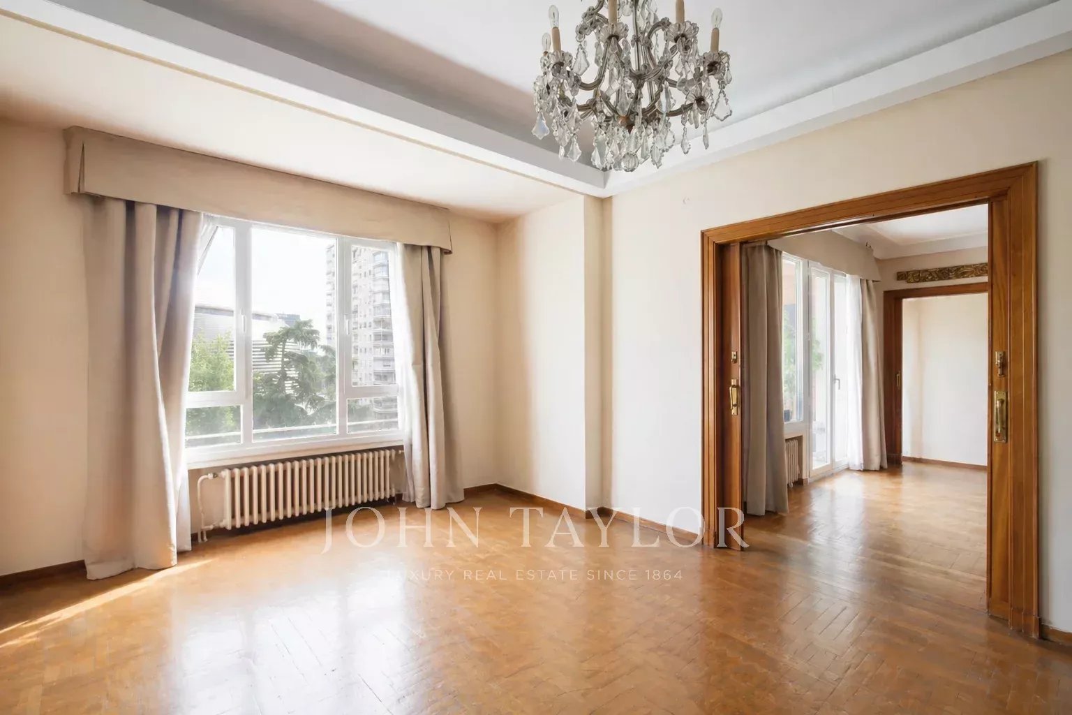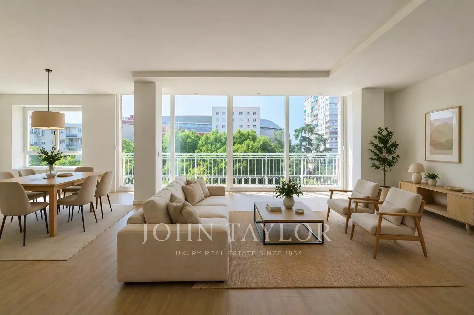 Diese stilvolle und großzügige Wohnung in Chamartín Hispanoamérica, Madrid, bietet auf 286 m² Wohnfläche höchsten Wohnkomfort in zentraler Lage. Das Apartment beeindruckt durch lichtdurchflutete Räume, ein modernes, offenes Wohn- und Esszimmer sowie eine edle Küche mit hochwertigen Ausstattungsdetails. Die großen Fensterfronten bieten einen herrlichen Ausblick und schaffen eine einladende Atmosphäre.