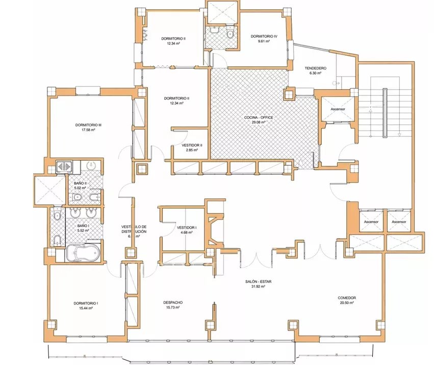 Zu den exklusiven Annehmlichkeiten zählen ein moderner Aufzug, ein Videofon-System, eine professionelle Brandschutzanlage sowie ein Concierge- und Hausmeisterservice. Diese Wohnung verbindet luxuriöses Wohnen mit höchster Sicherheit – perfekt für anspruchsvolle Käufer im Herzen von Madrid.