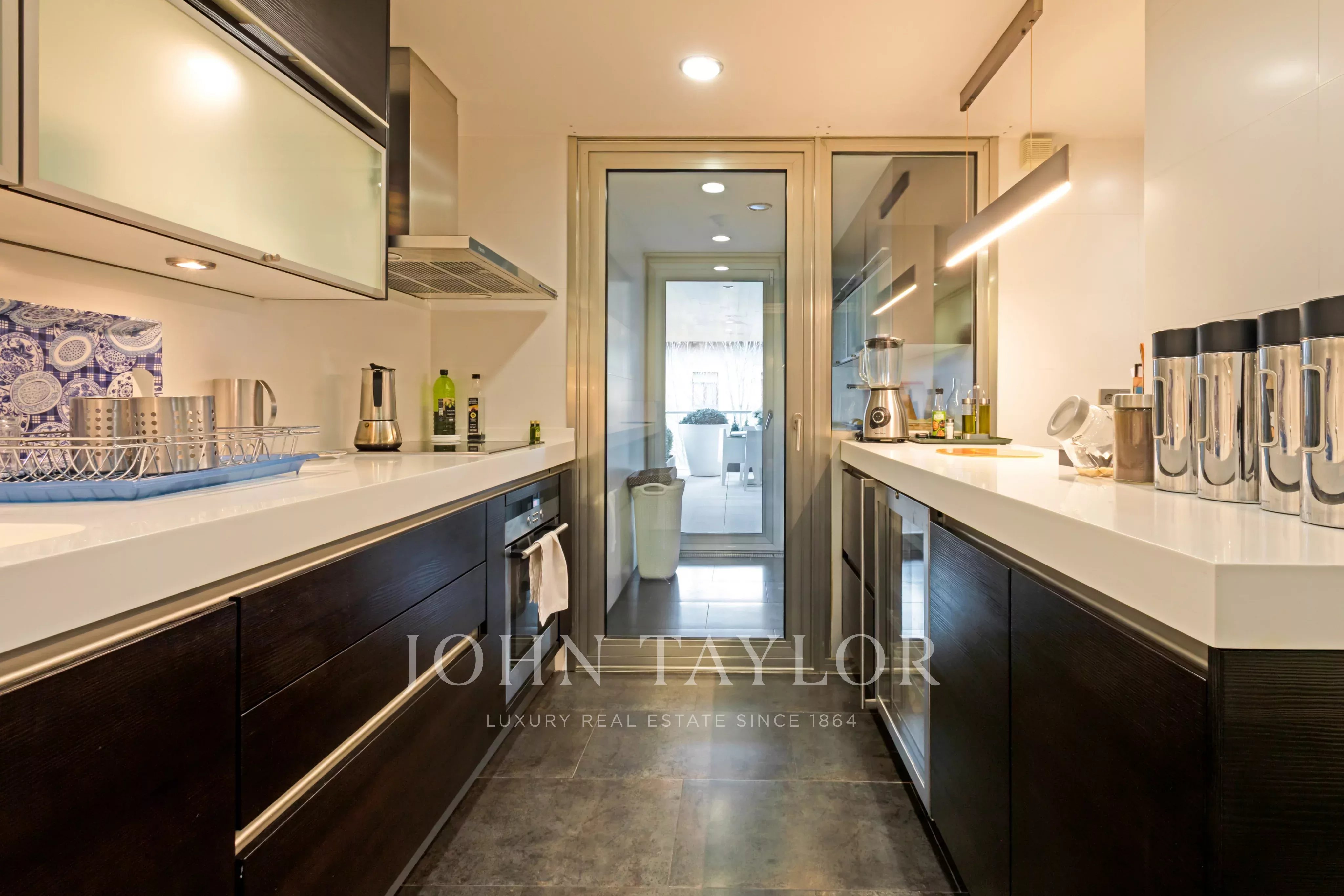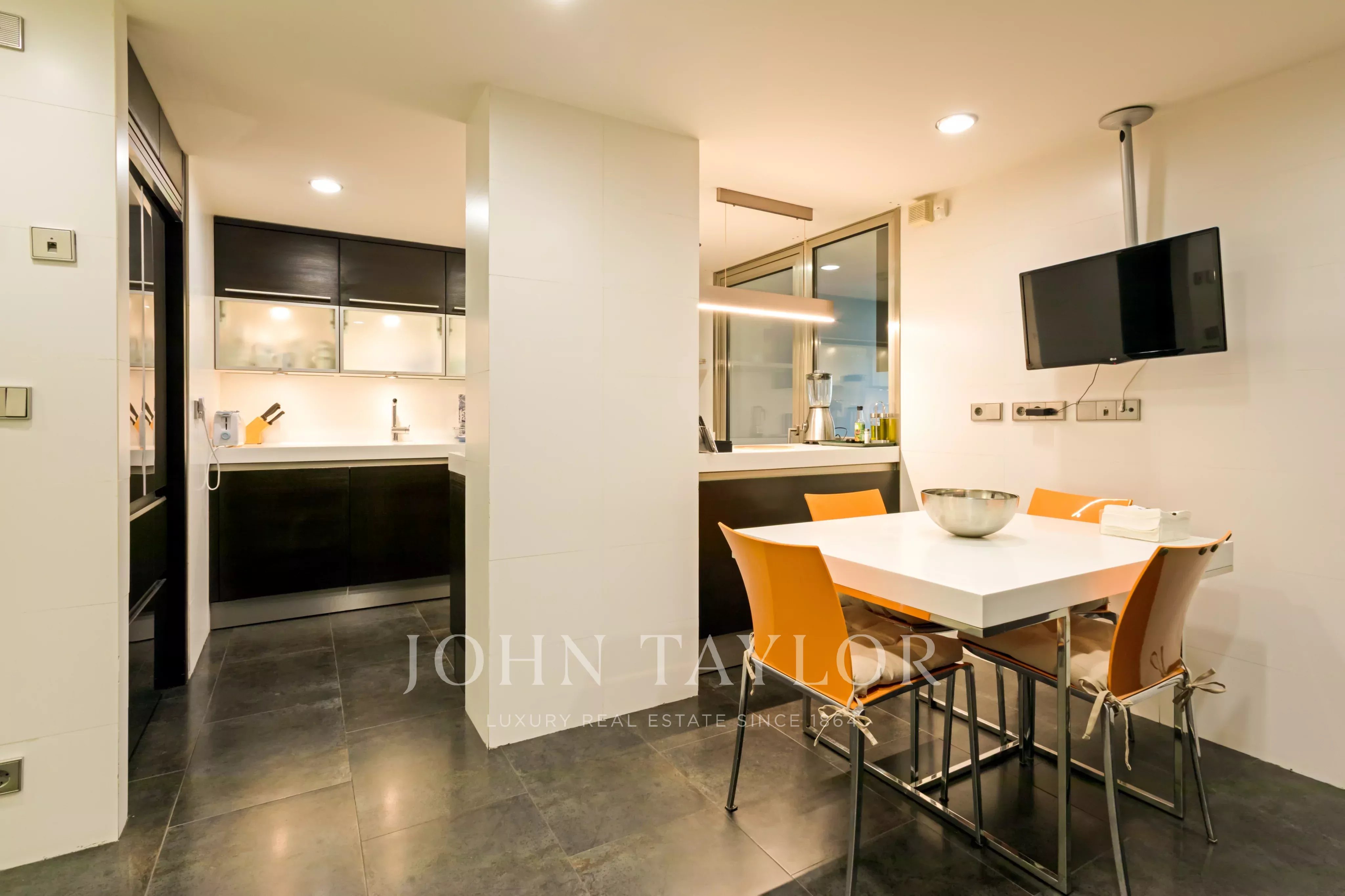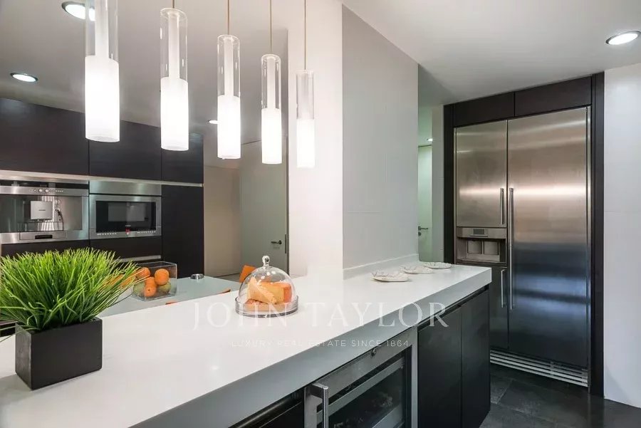 Große voll ausgestattete Küche, mit Wohn-Terrasse nach Osten. Erwähnenswert sind die Großzügigkeit der Räume sowie eine hohe Stauraumkapazität durch die zahlreichen Einbauschränke vom Boden bis zur Decke. Die Immobilie verfügt über eine individuelle Fußbodenheizung und eine Kanal-Klimaanlage.