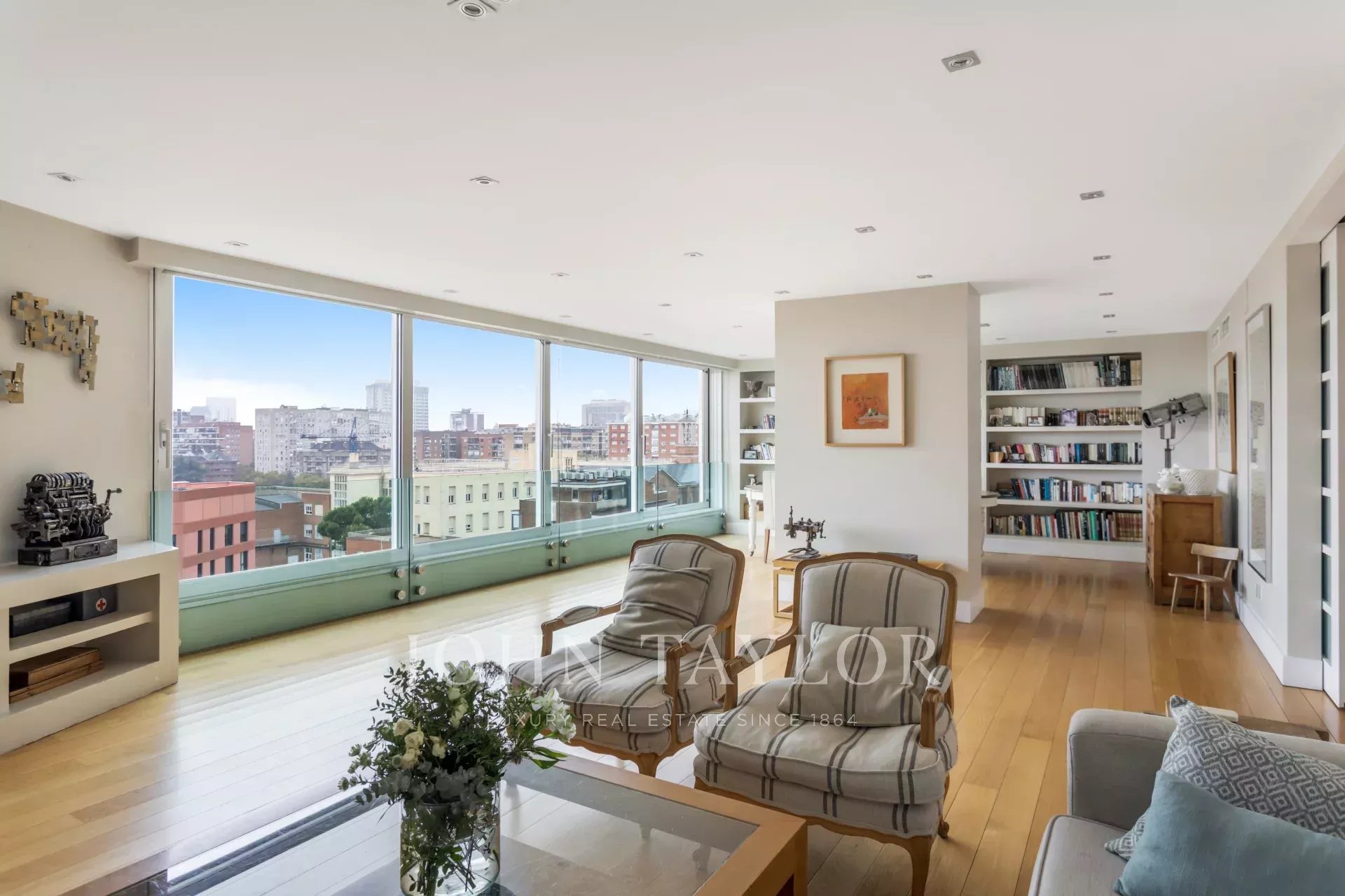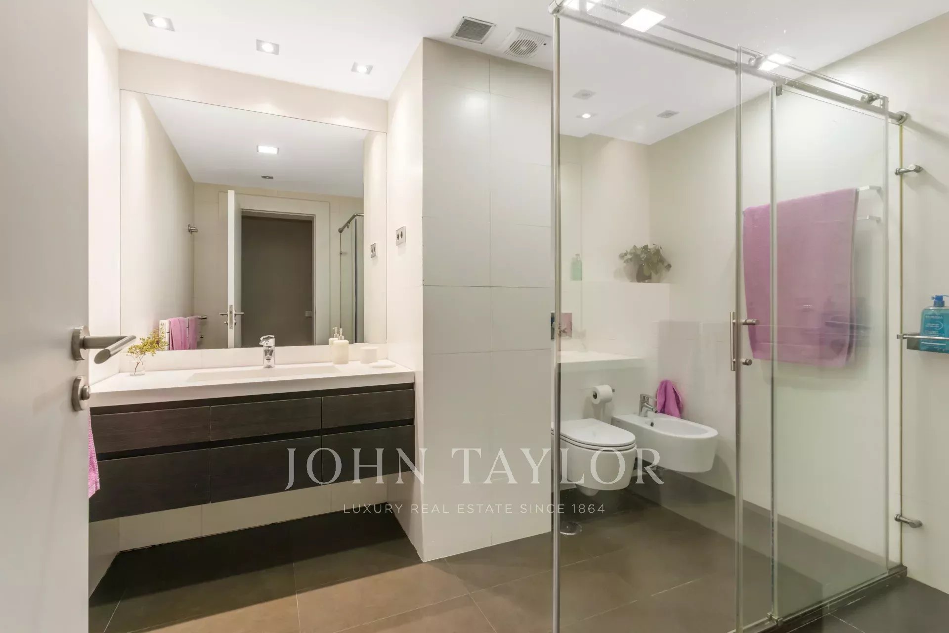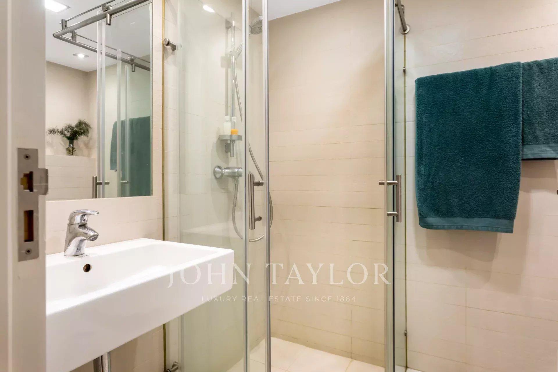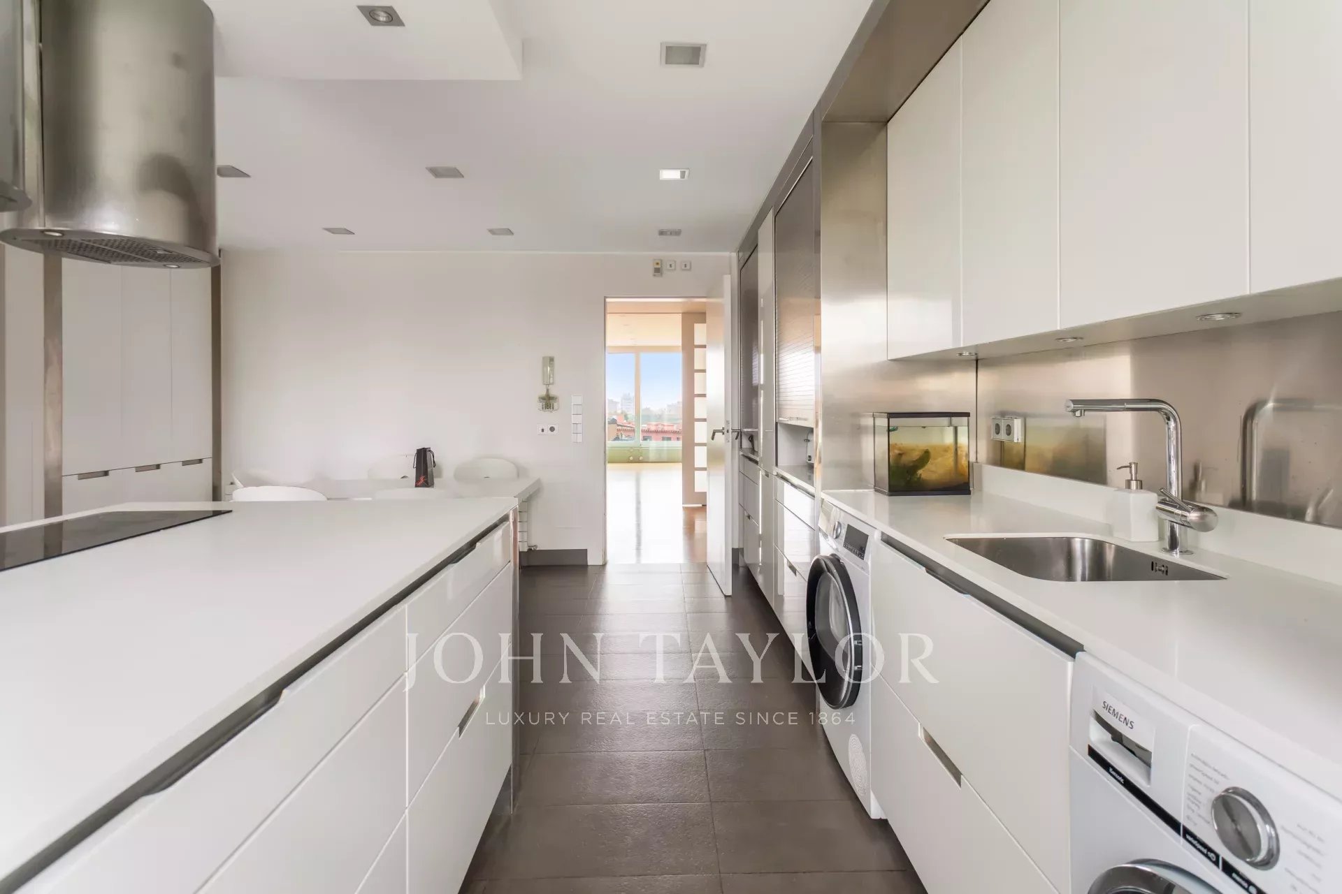 Diese einzigartige Immobilie befindet sich im siebten Stock des Gebäudes und wurde mit viel Liebe zum Detail und unter Verwendung hochwertiger Materialien makellos renoviert. Die großen, nach Süden ausgerichteten Fenster bieten einen unschlagbaren Blick auf die Stadt.