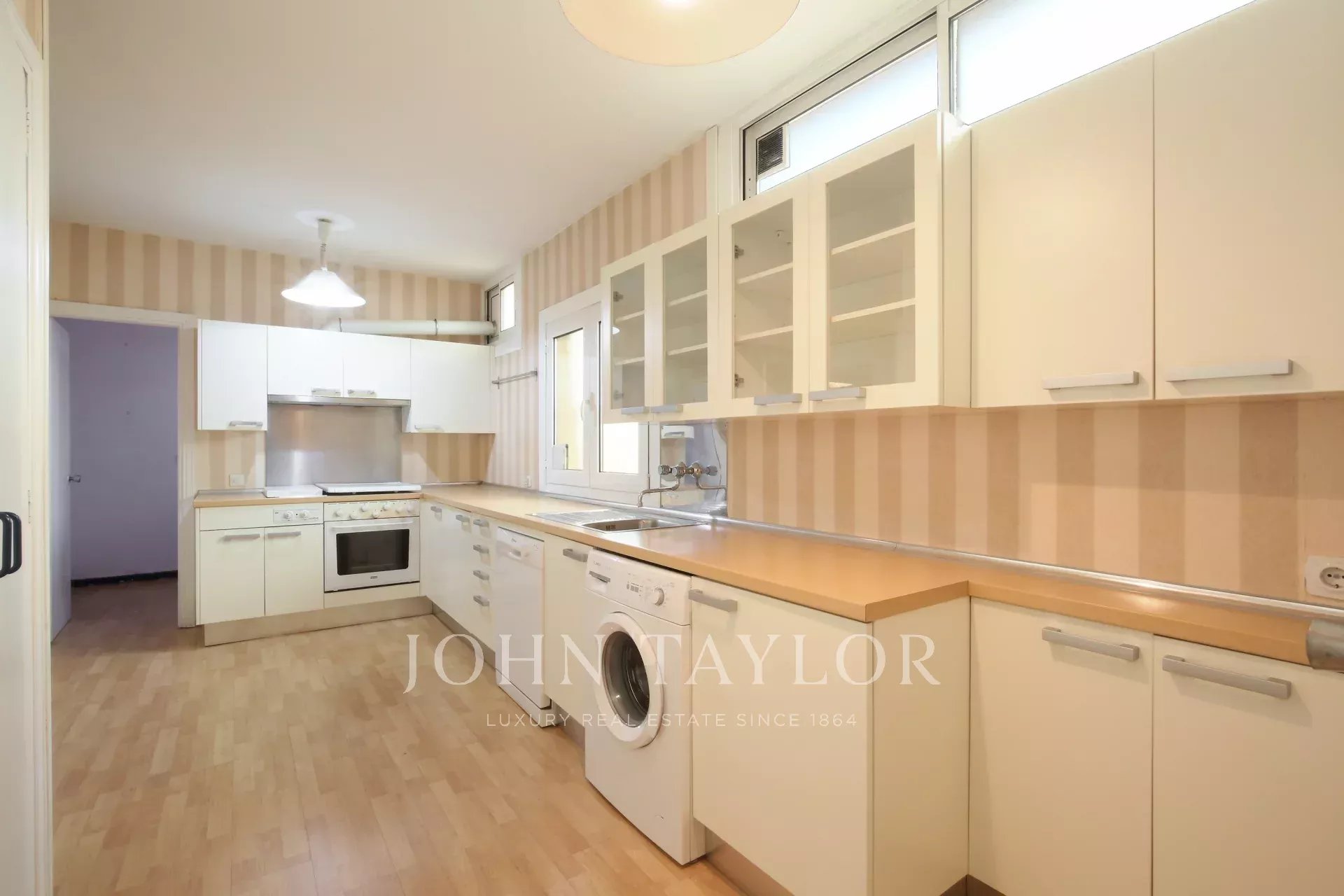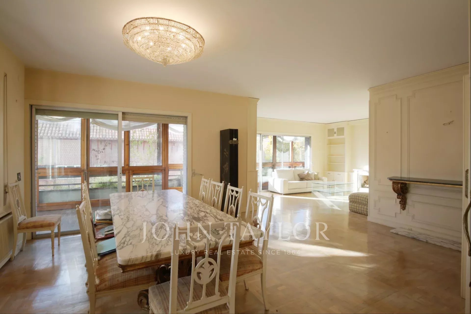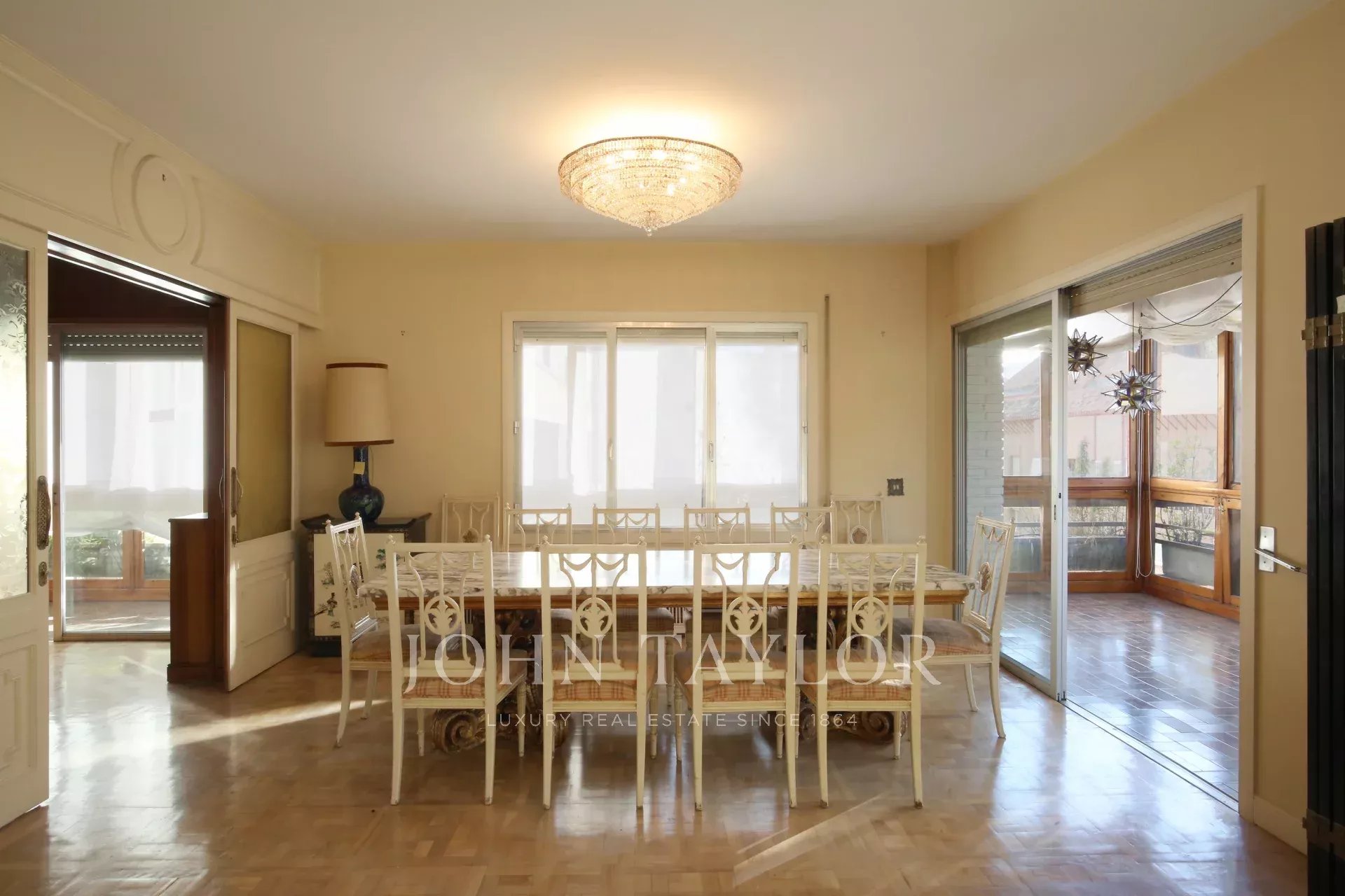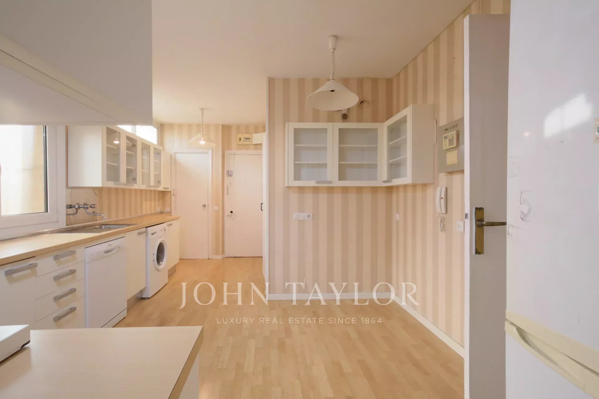 Das 1970 erbaute Gebäude verfügt über eine Zentralheizung, einen Aufzug und einen Pförtnerdienst, die Komfort und Sicherheit garantieren. Obwohl die Immobilie renovierungsbedürftig ist, ermöglichen ihre Geräumigkeit und Struktur die Gestaltung einer modernen und individuellen Wohnung, die auch den anspruchsvollsten Bedürfnissen gerecht wird.
