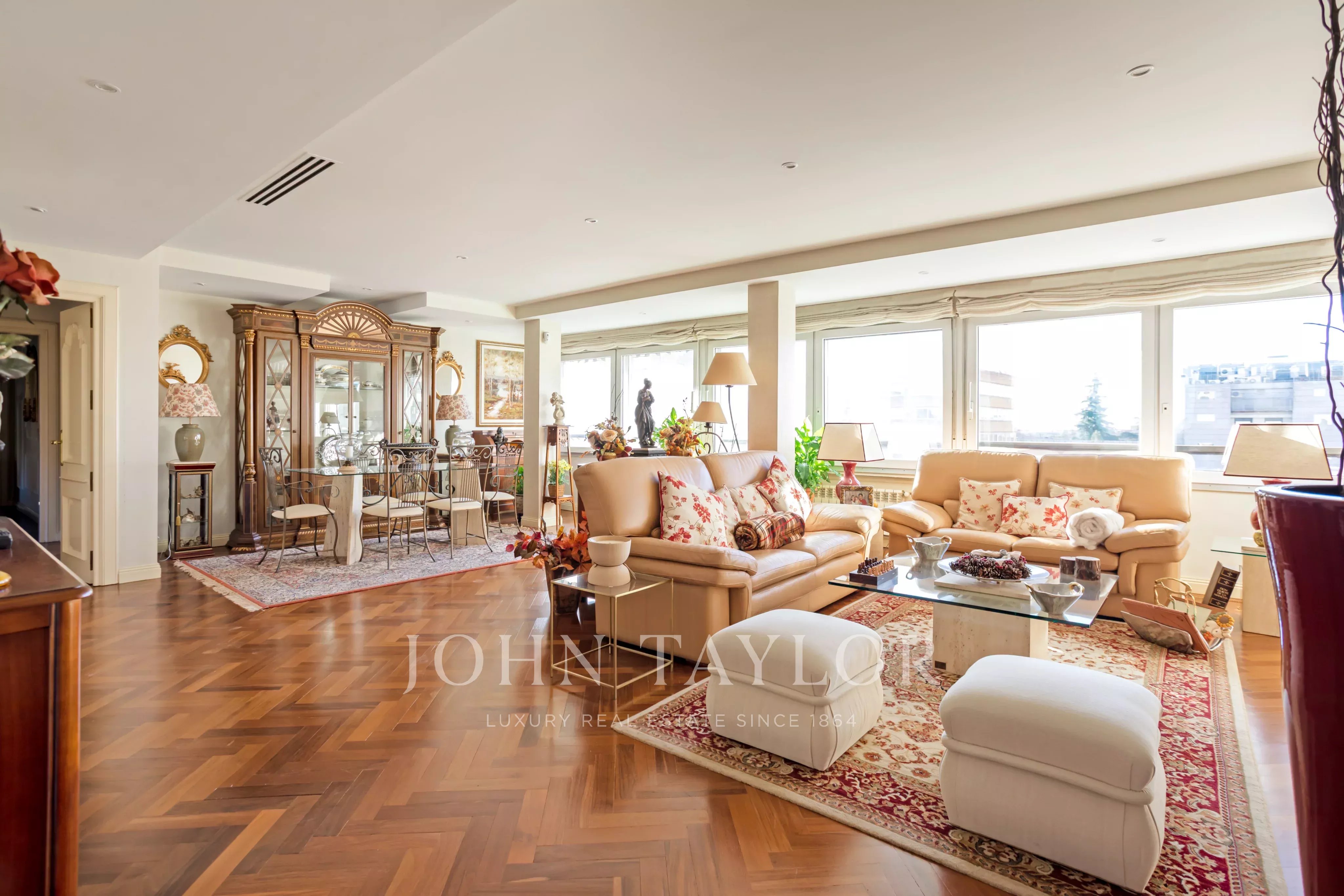 Die Immobilie befindet sich im siebten und obersten Stockwerk des Gebäudes und genießt eine ausgezeichnete Helligkeit, da sie komplett außen liegt. Es hat eine bebaute Fläche von 186 m² und wurde vor etwa acht Jahren komplett renoviert.