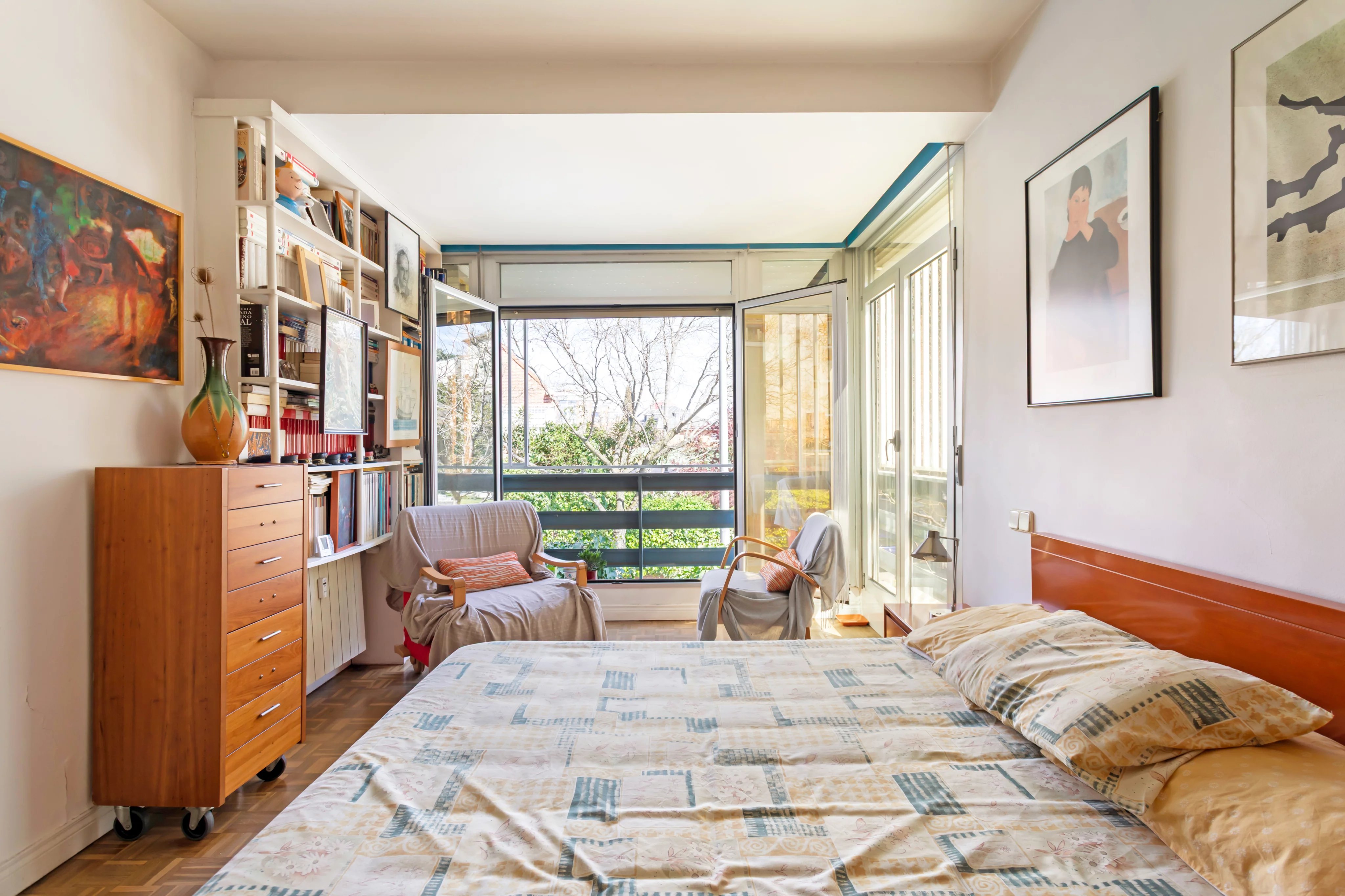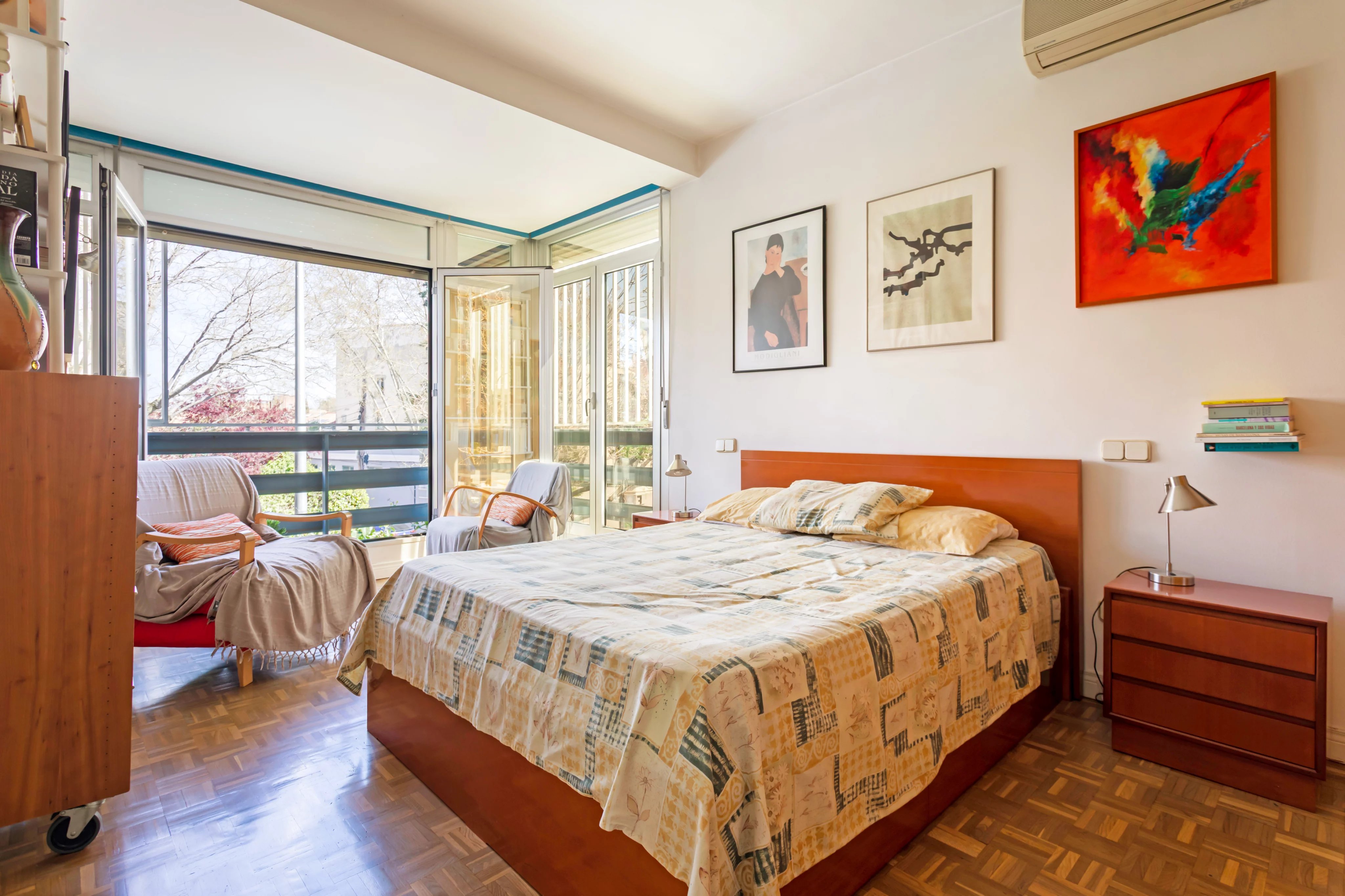 Willkommen in diesem attraktiven Apartment im begehrten Viertel Nueva España, Chamartín, Madrid. Auf großzügigen 128 m² bietet diese lichtdurchflutete Immobilie drei komfortable Schlafzimmer, die für maximalen Wohnkomfort sorgen. Die großen Fensterfronten mit Doppelverglasung und Schiebefenstern schaffen eine helle und freundliche Atmosphäre in allen Räumen.