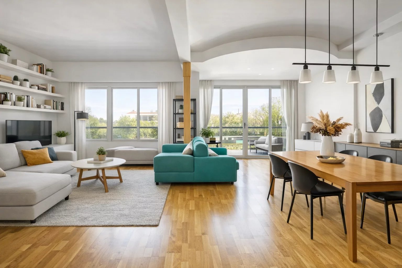 Der offene Wohn- und Essbereich überzeugt durch ein modernes Design sowie harmonische Holzböden, während Klimaanlage für angenehme Temperaturen das ganze Jahr sorgt. Die Wohnung ist zudem hervorragend schallisoliert und bietet Ihnen dank des durchdachten Grundrisses viele Gestaltungsmöglichkeiten.