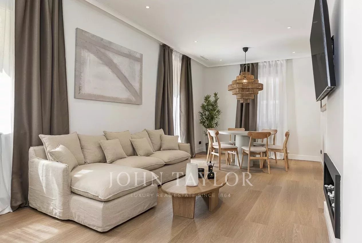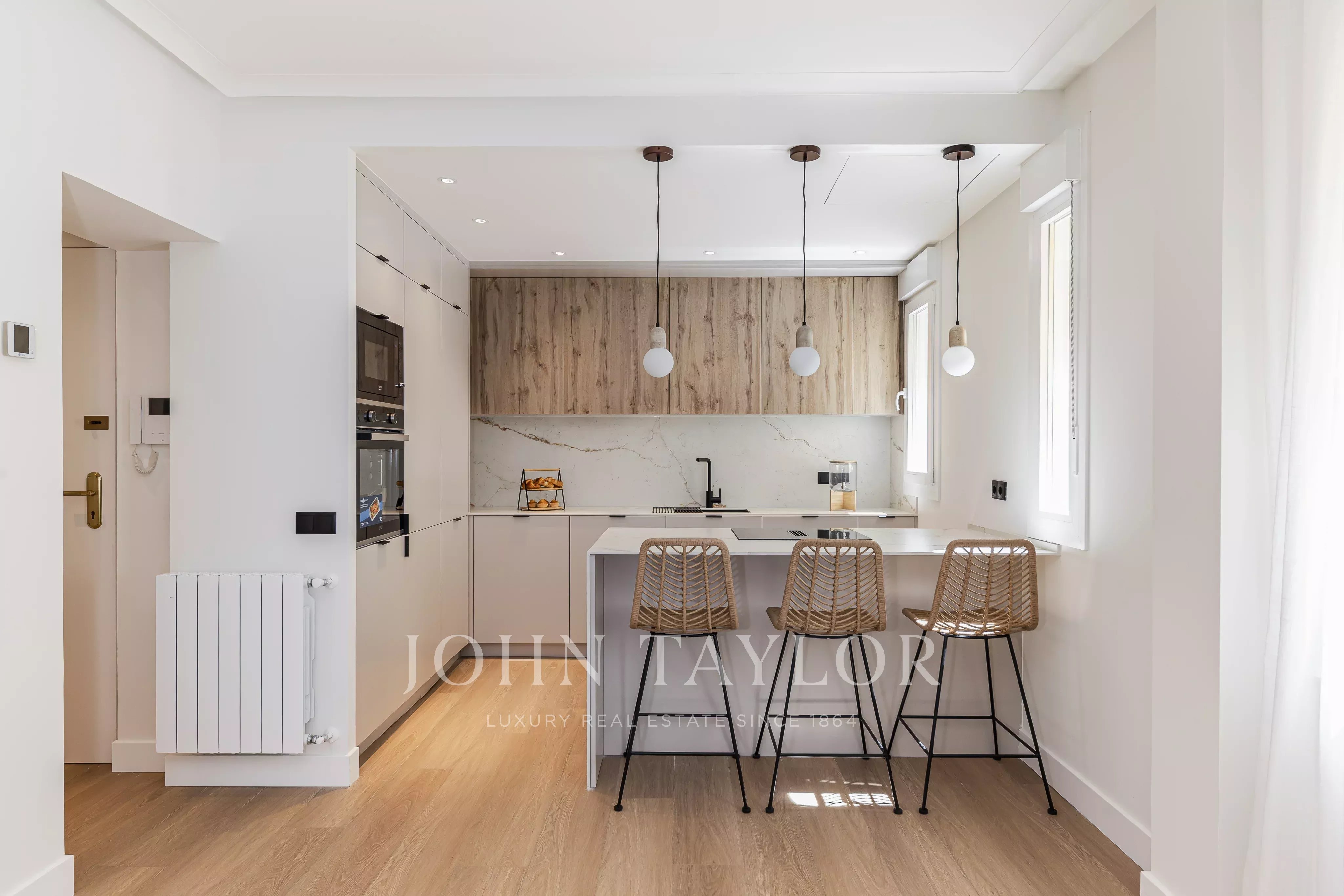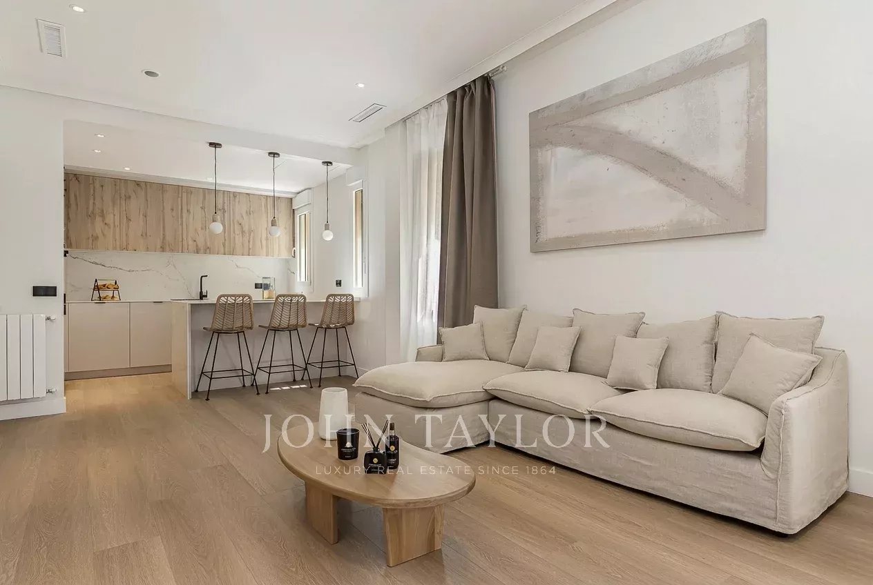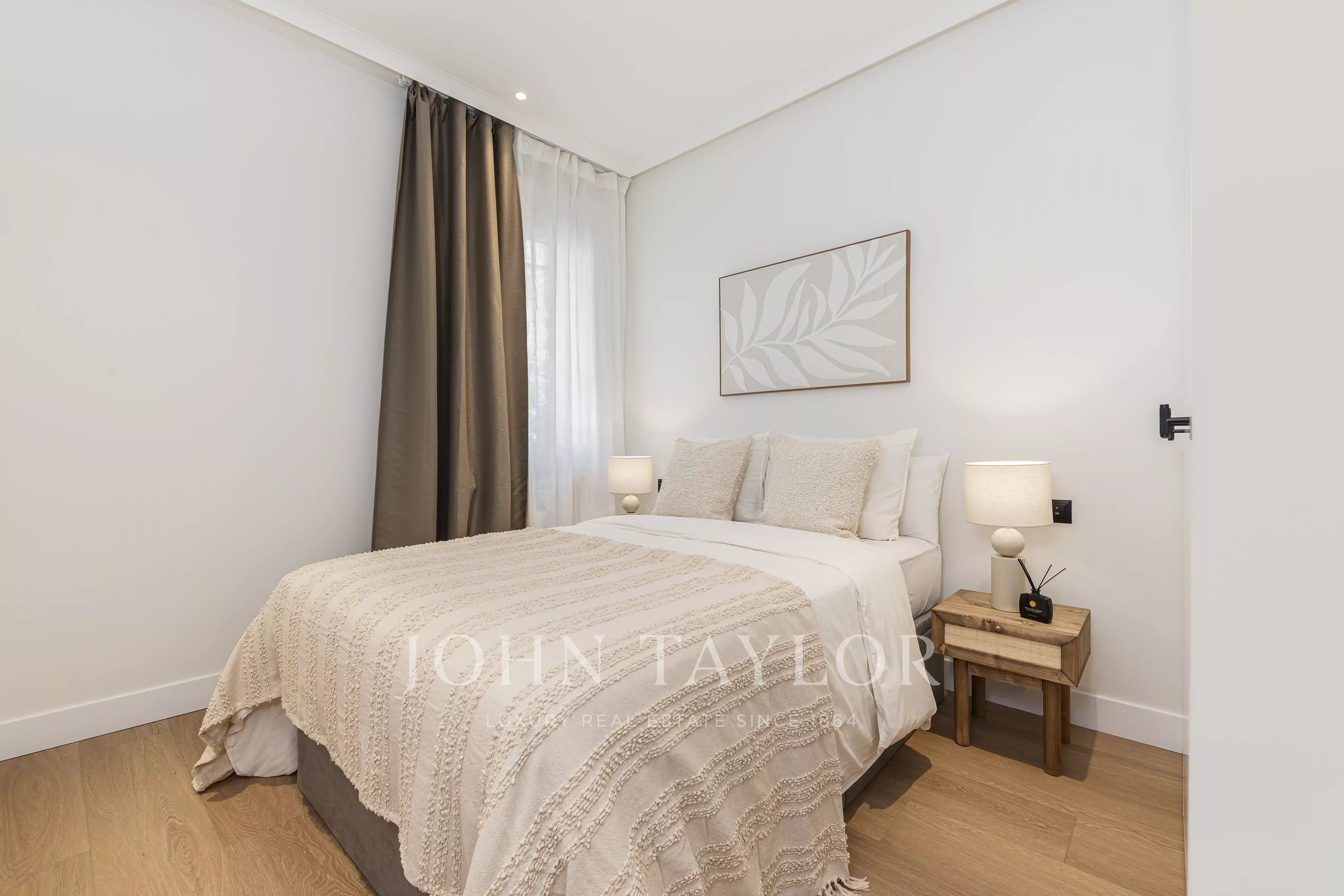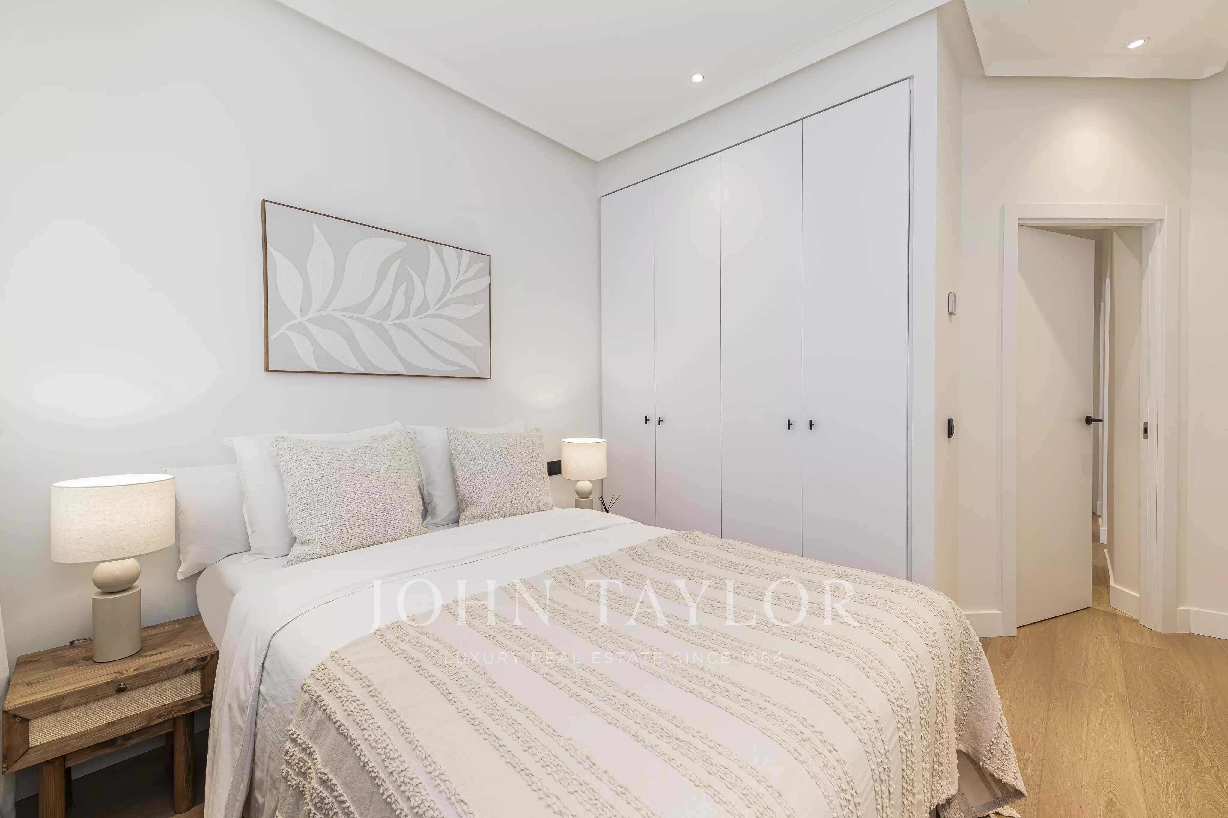 Dieses exklusive Apartment im begehrten Viertel Chamberí Almagro in Madrid bietet 147,05 m² modernen Wohnkomfort. Die stilvolle Wohnung verfügt über zwei großzügige Schlafzimmer, ein geschmackvoll eingerichtetes Wohn- und Esszimmer sowie eine hochwertige Ausstattung mit Klimaanlage, doppelt verglasten Schiebefenstern und möblierten Räumen. Ein besonderes Highlight ist die großzügige private Terrasse, die zum Entspannen und zum Genießen sonniger Tage einlädt.