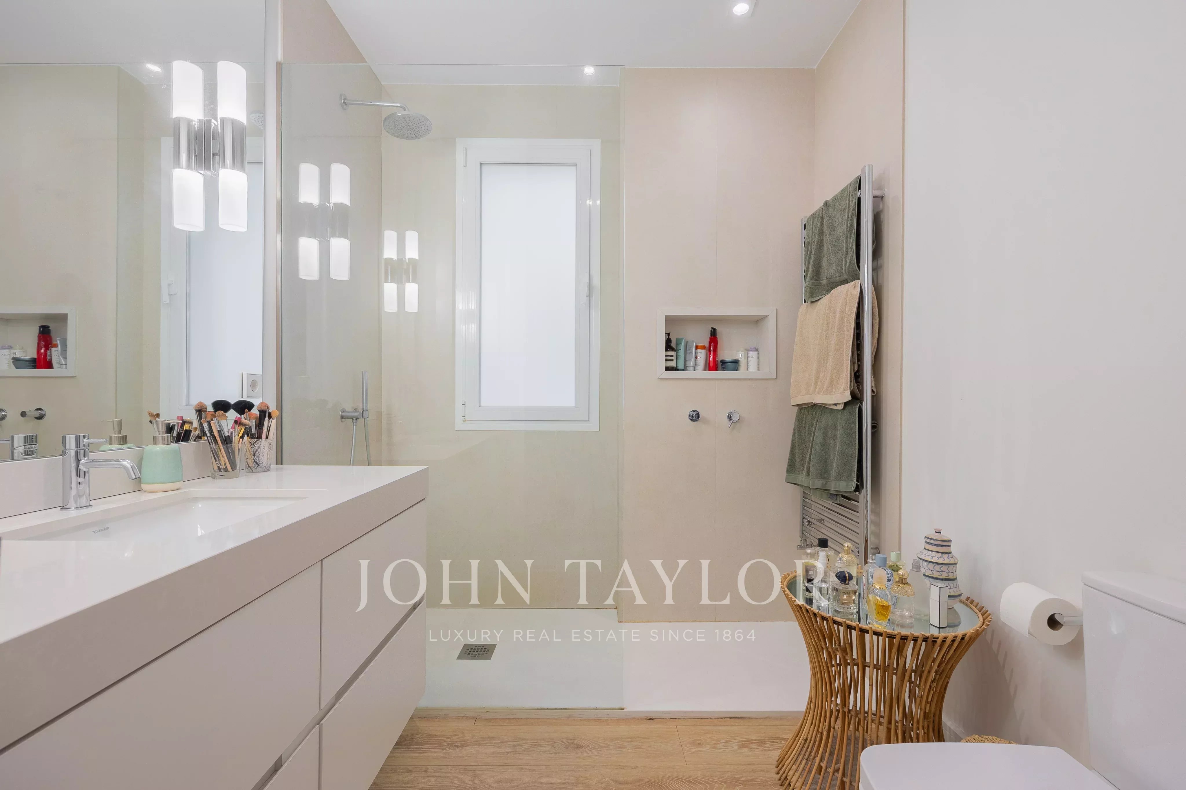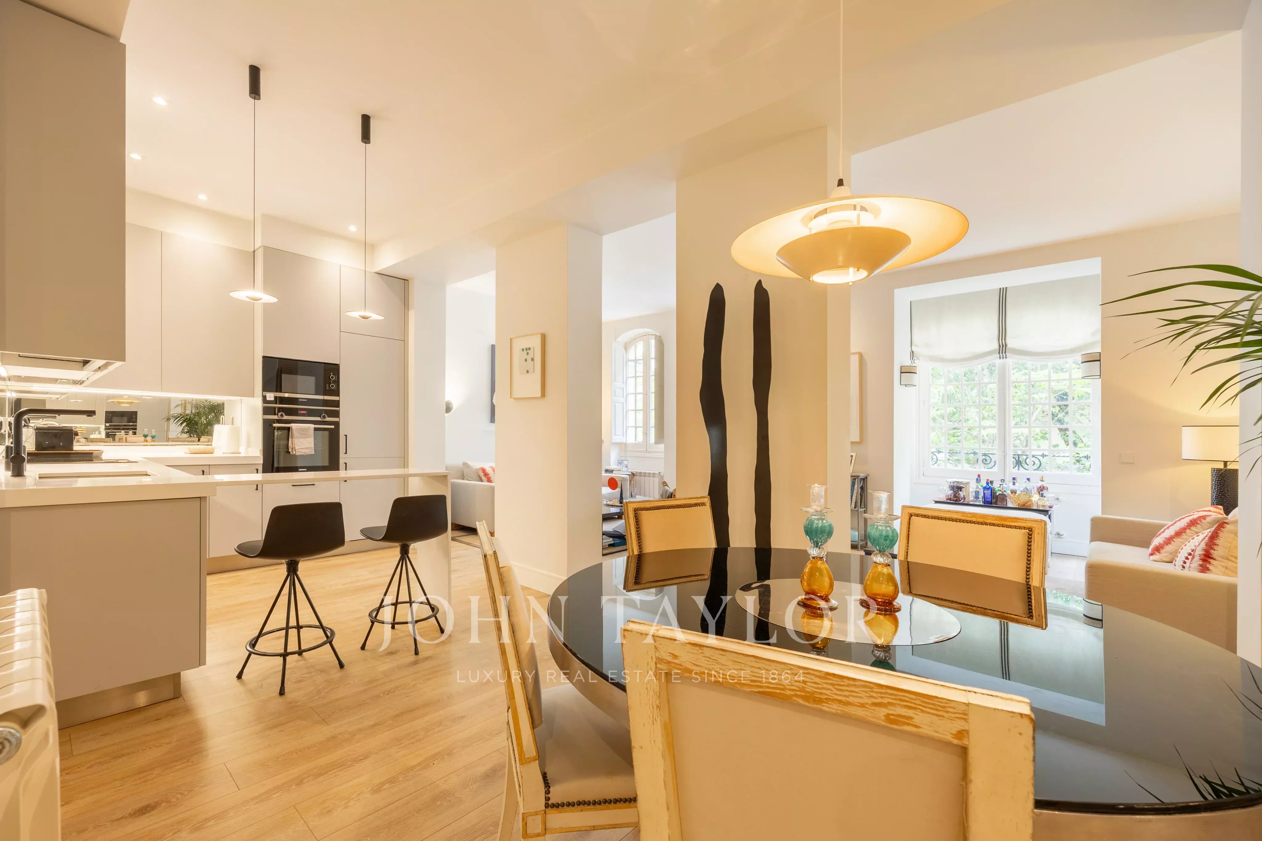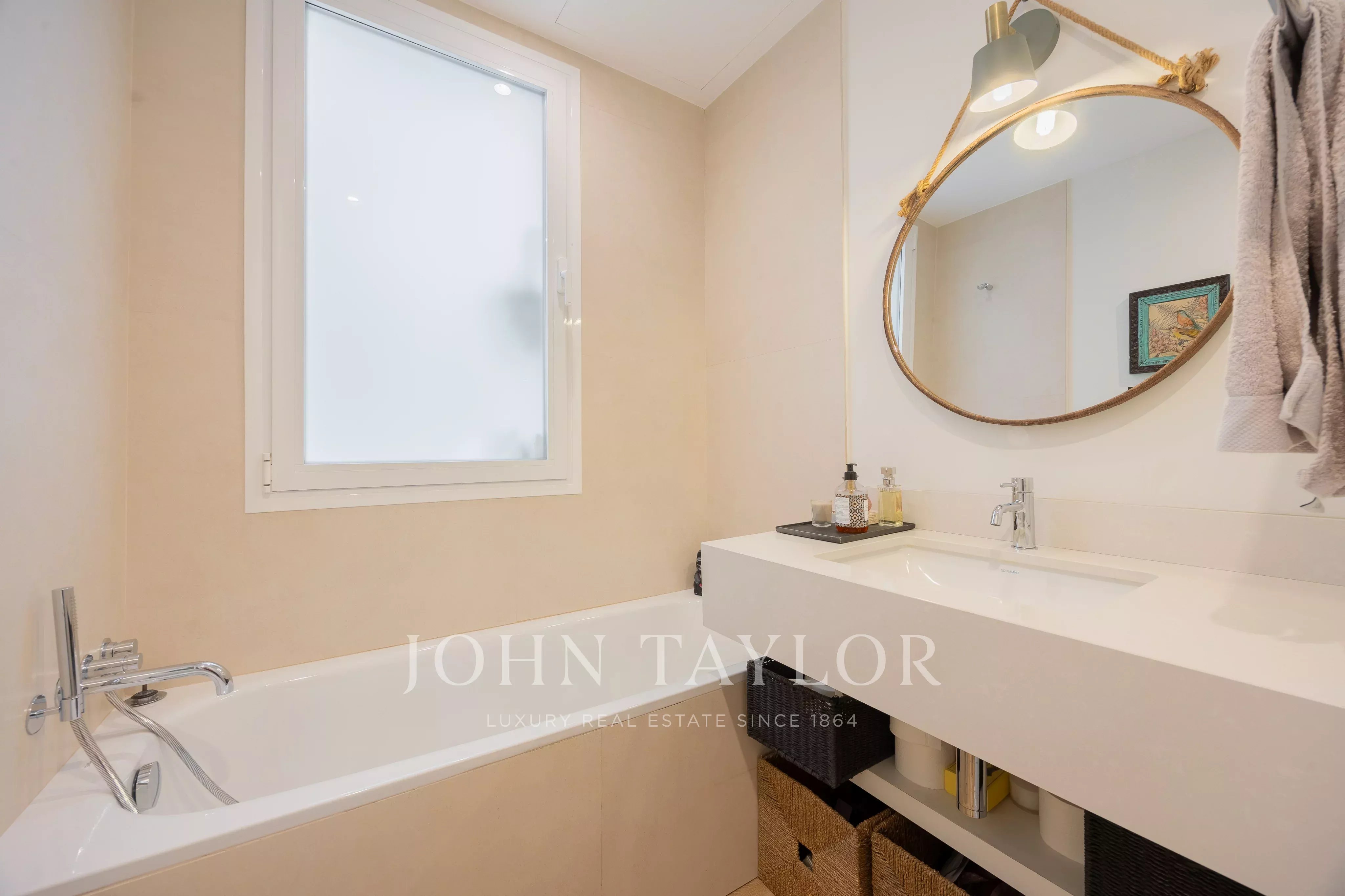 Sie wird vollständig möbliert angeboten, mit einer sorgfältigen Innenarchitektur und ist mit Klimaanlage ausgestattet, um Komfort das ganze Jahr über zu gewährleisten. Die moderne Küche integriert sich harmonisch in das Gesamtbild, ausgestattet mit hochwertigen Haushaltsgeräten und sowohl für den Alltag als auch für Begegnungsmomente gedacht.