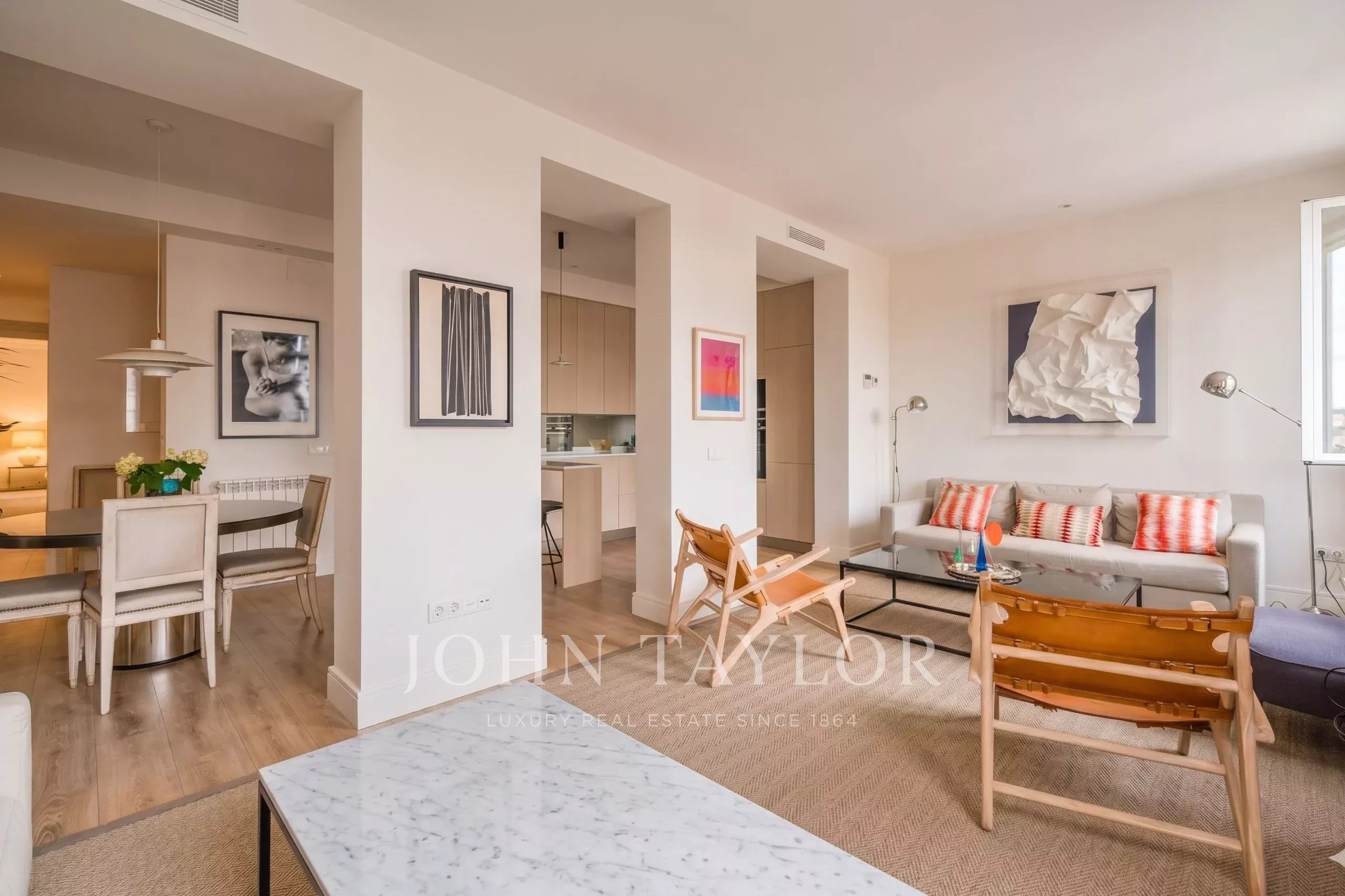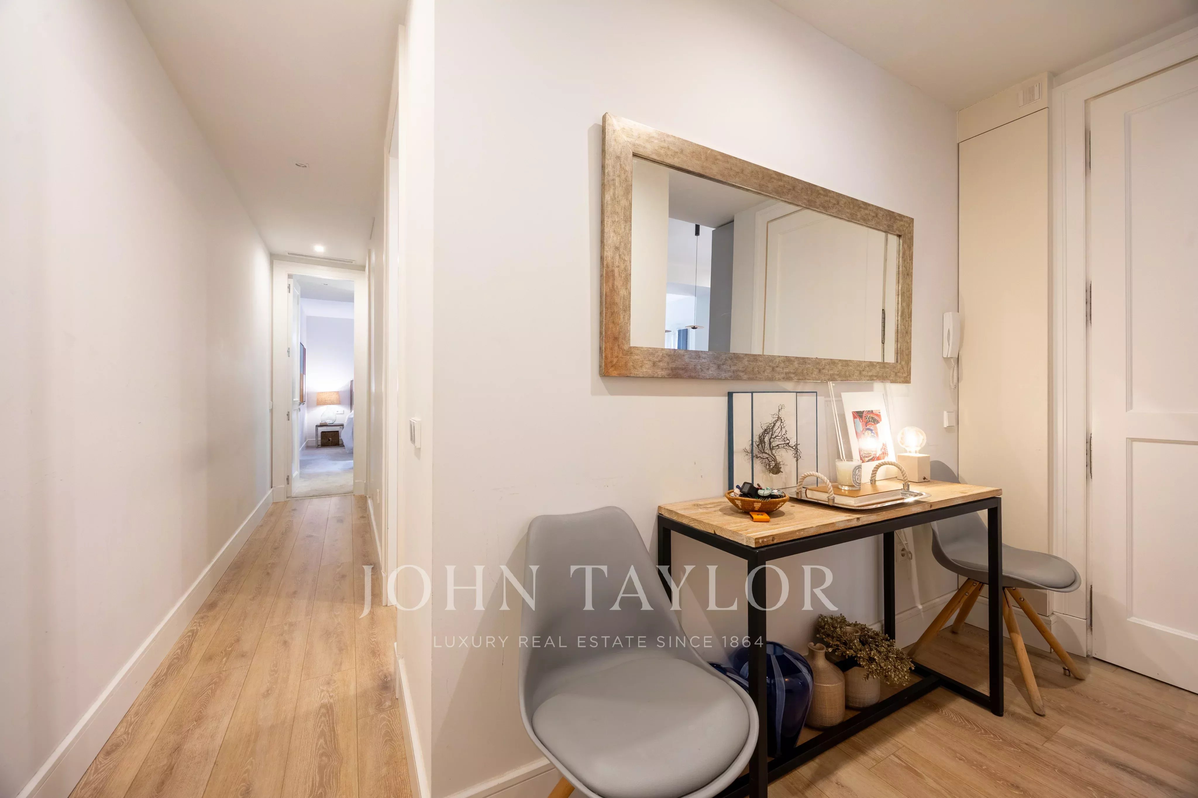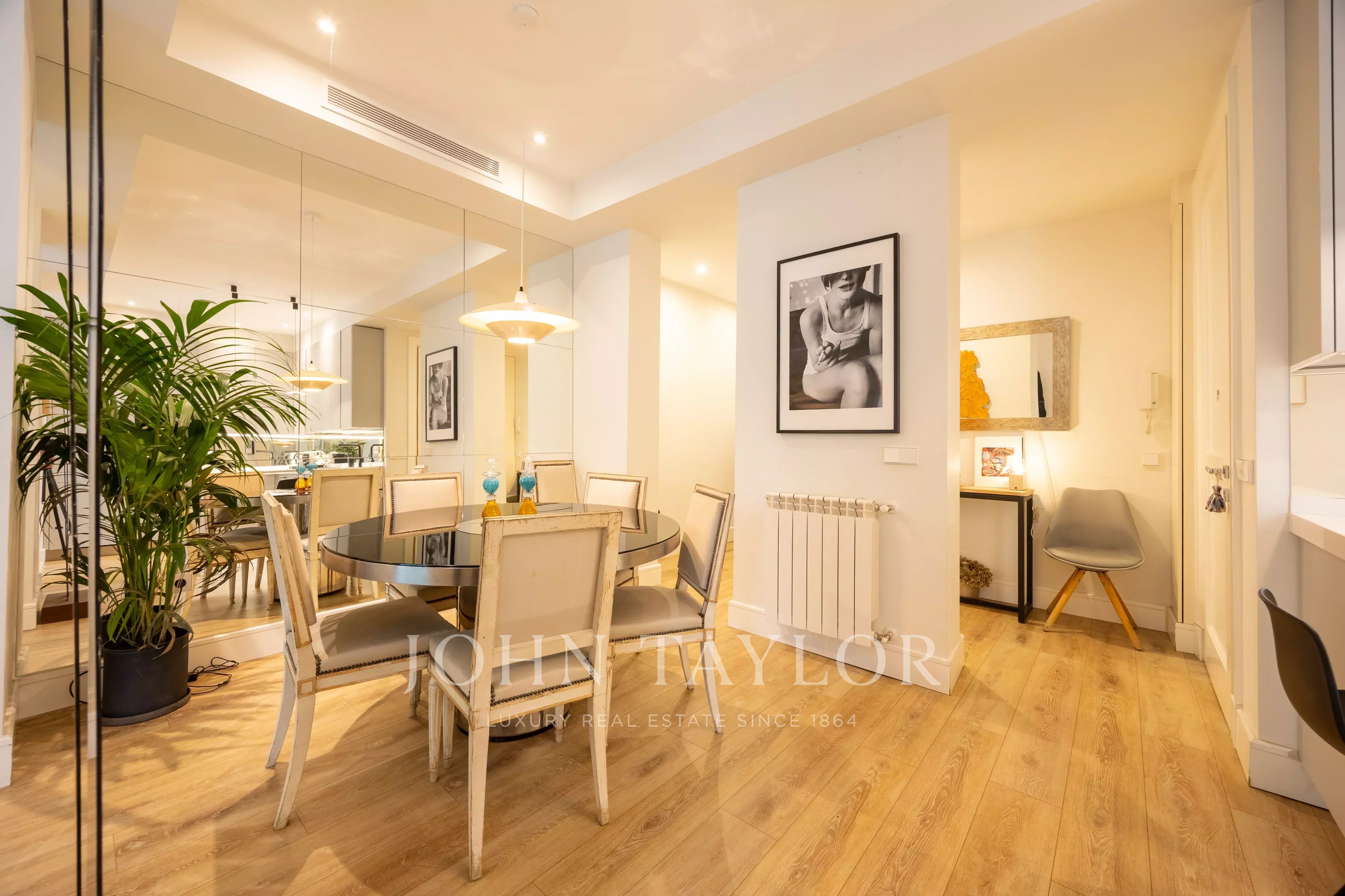 Entdecken Sie diese anspruchsvolle Wohnung von 113 m², die in einer der begehrtesten Gegenden Madrids liegt, wo modernes Design und Helligkeit harmonisch mit Balance und Funktionalität verbunden sind.