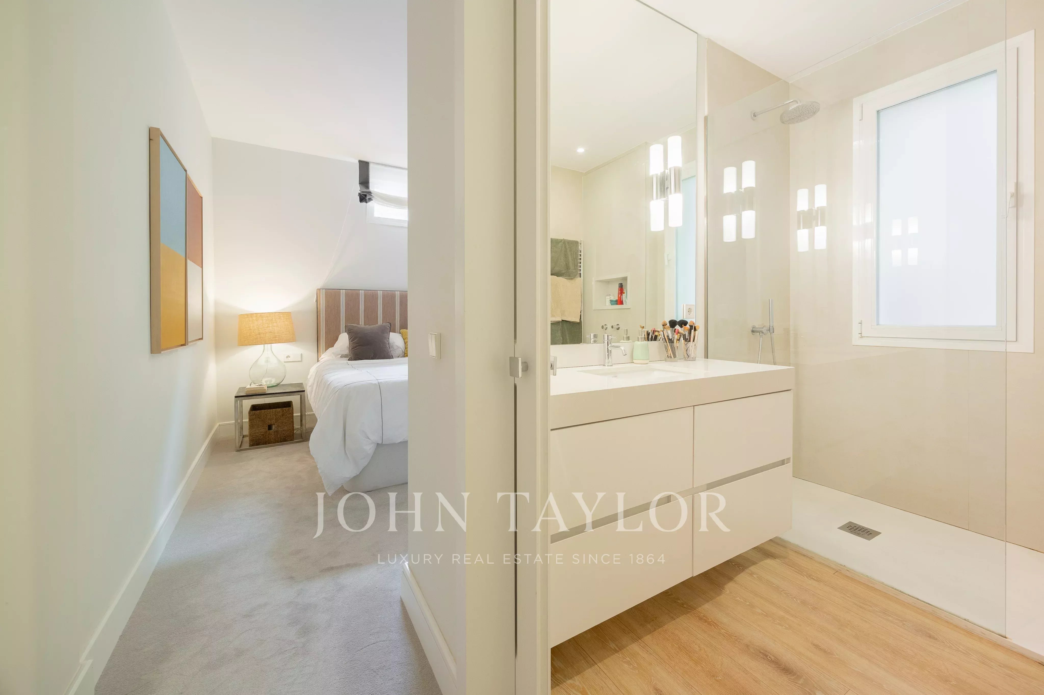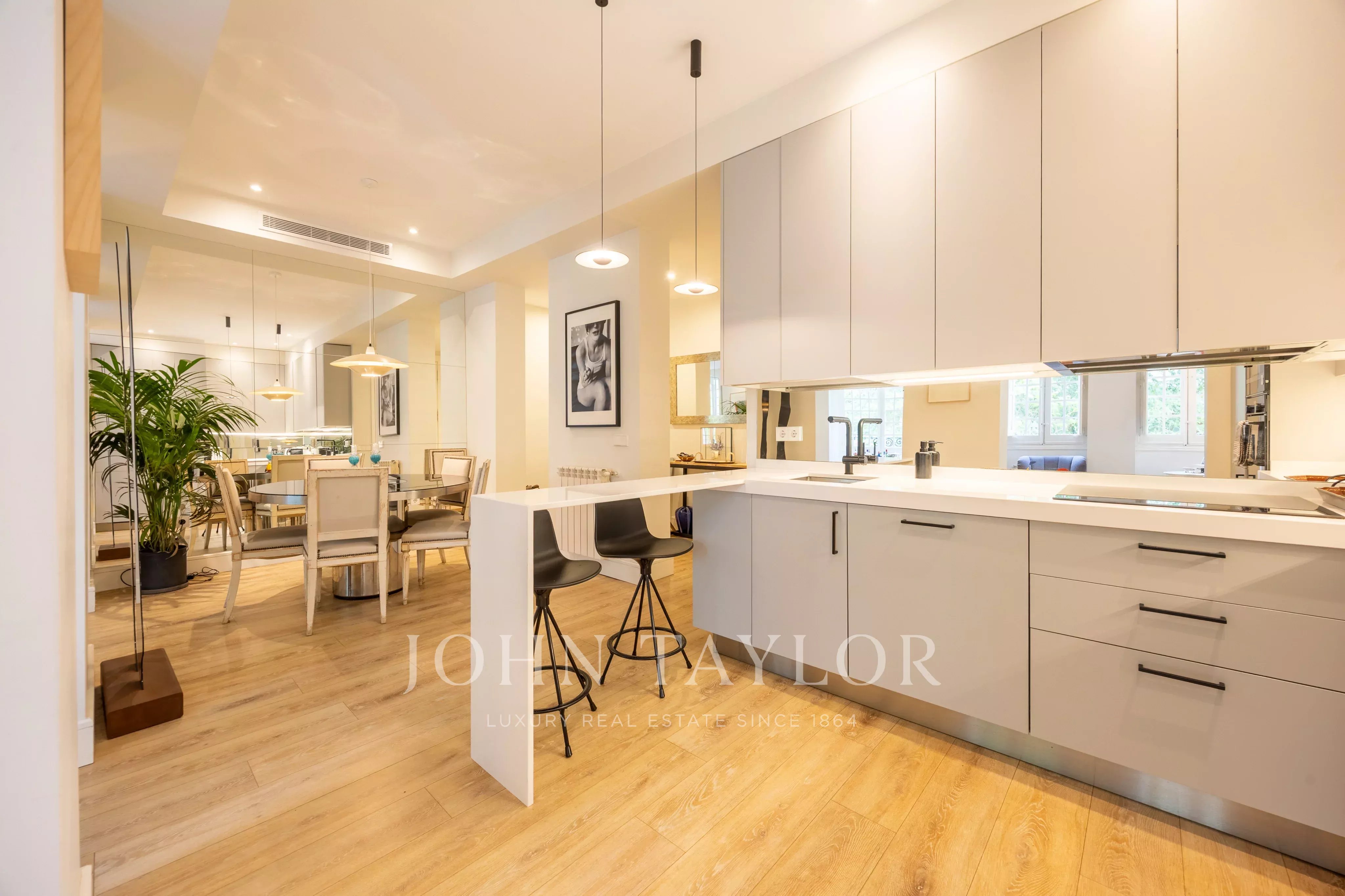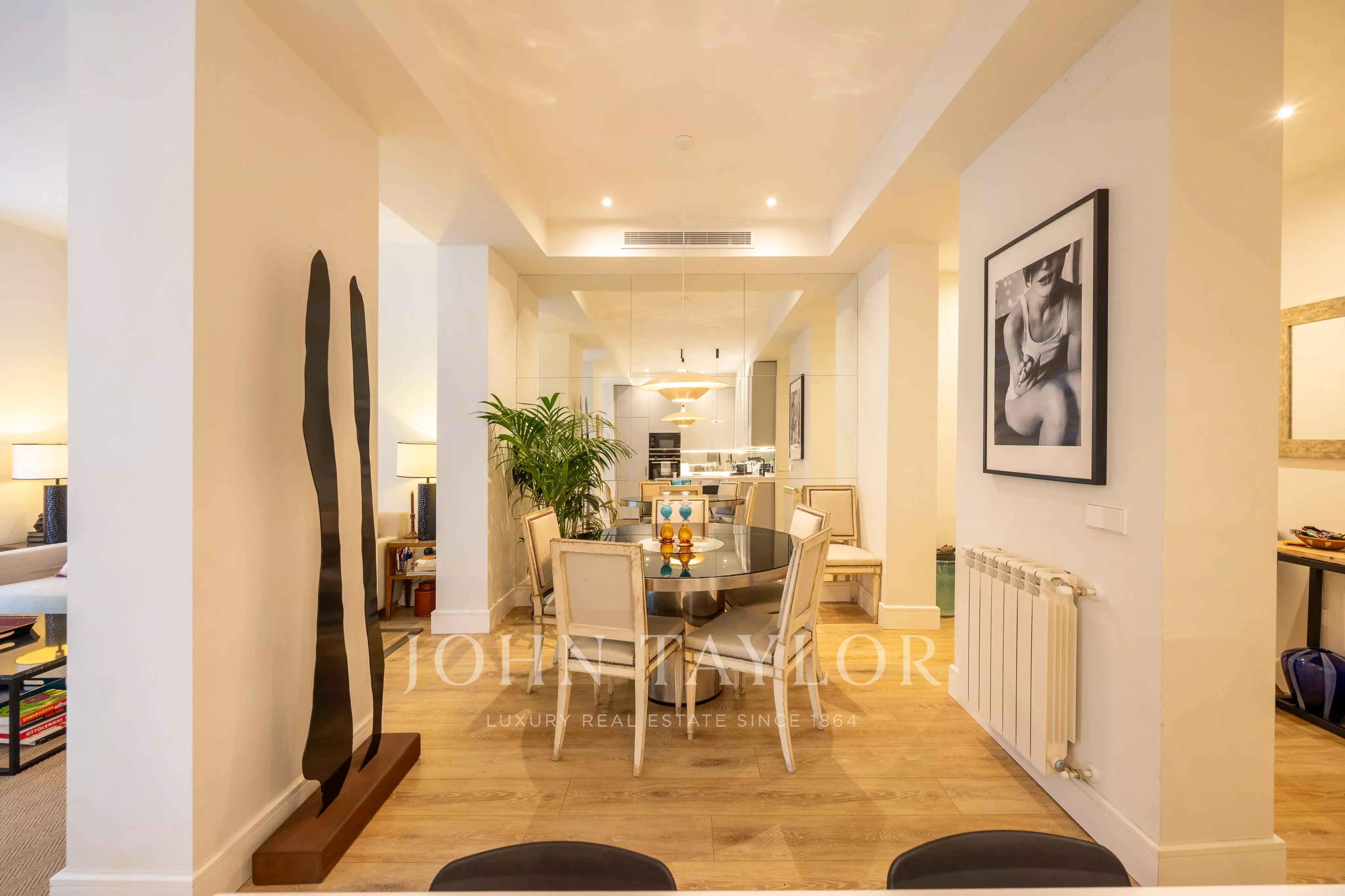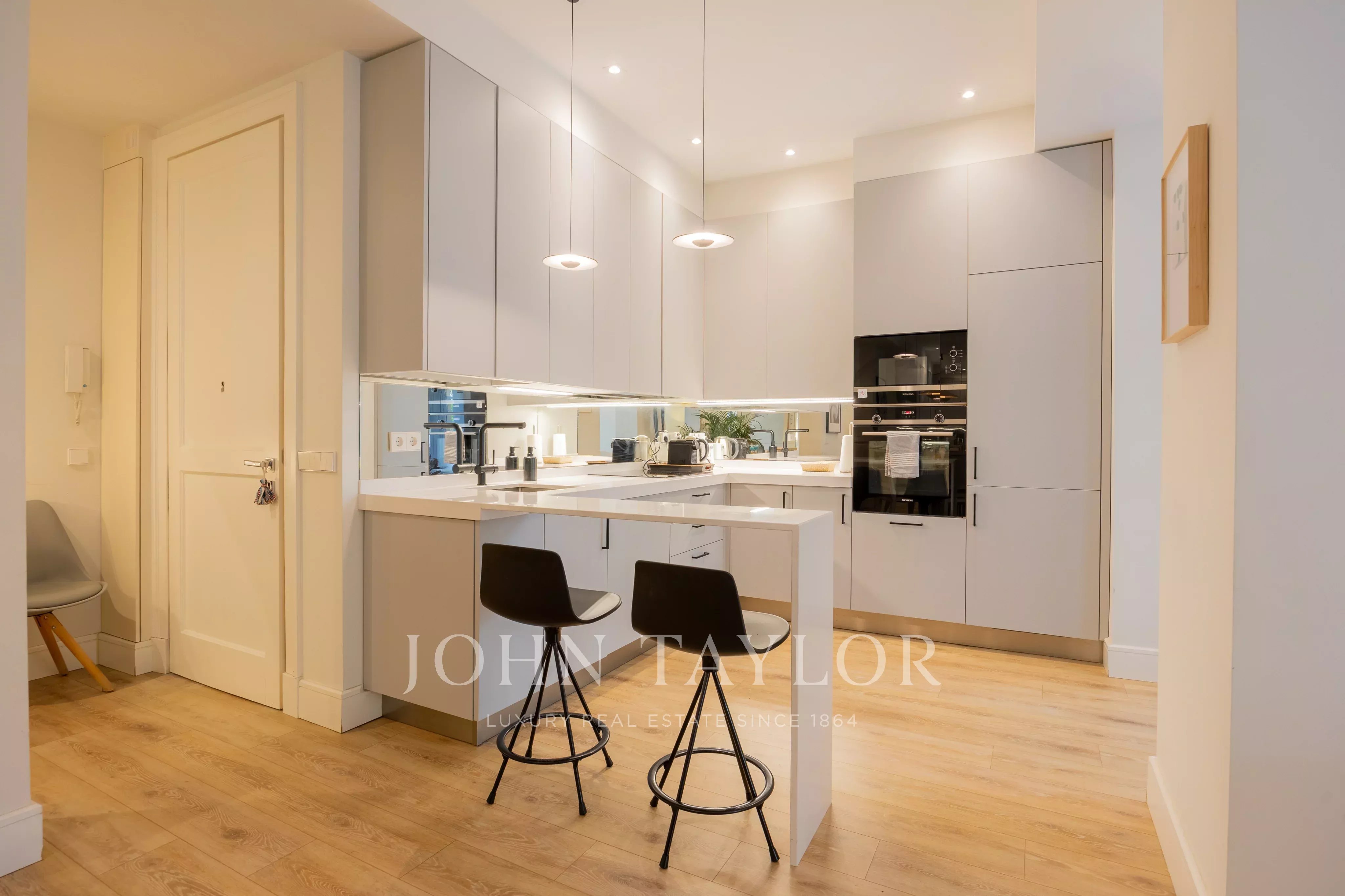 Entdecken Sie diese anspruchsvolle Wohnung von 113 m², die in einer der begehrtesten Gegenden Madrids liegt, wo modernes Design und Helligkeit harmonisch mit Balance und Funktionalität verbunden sind.