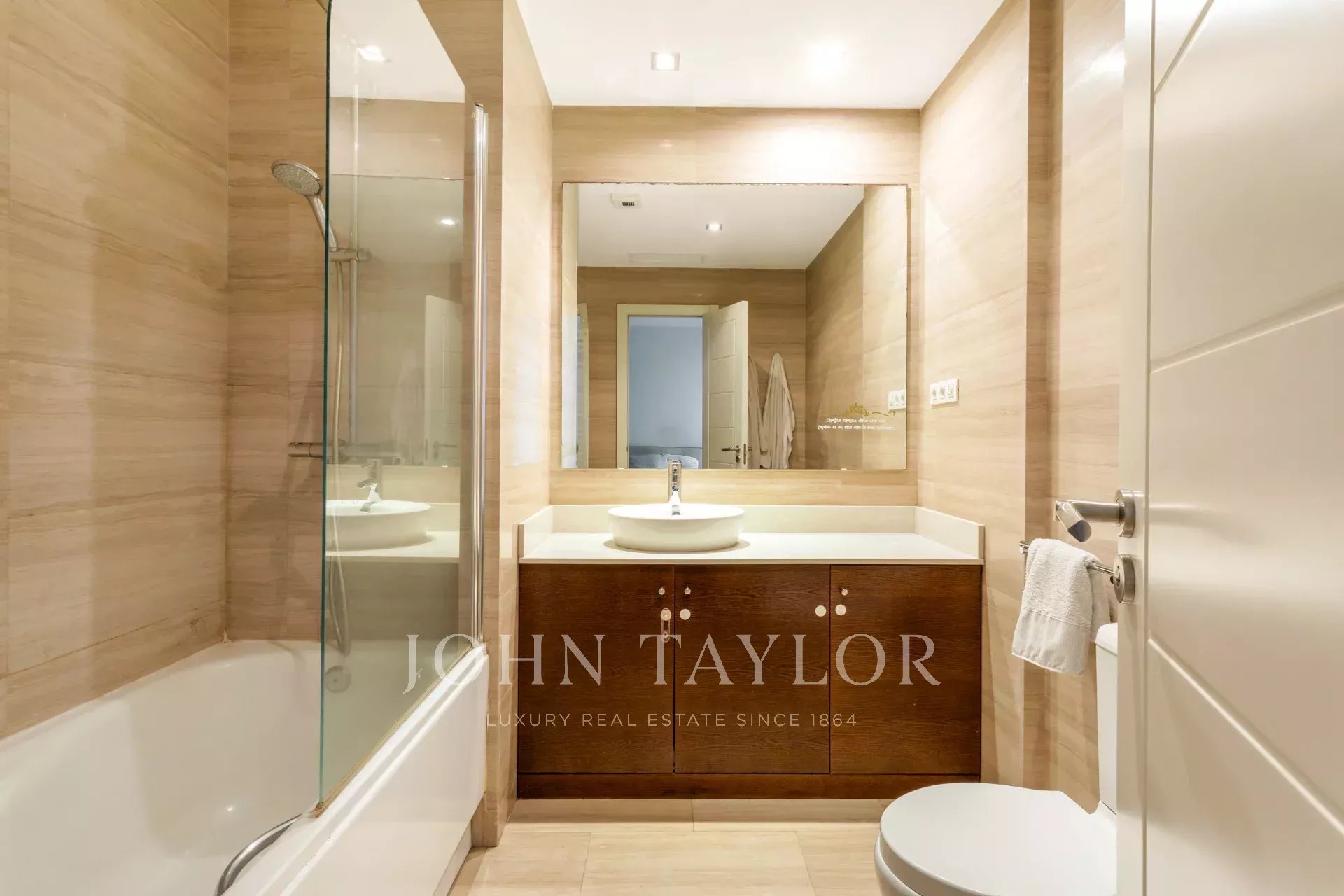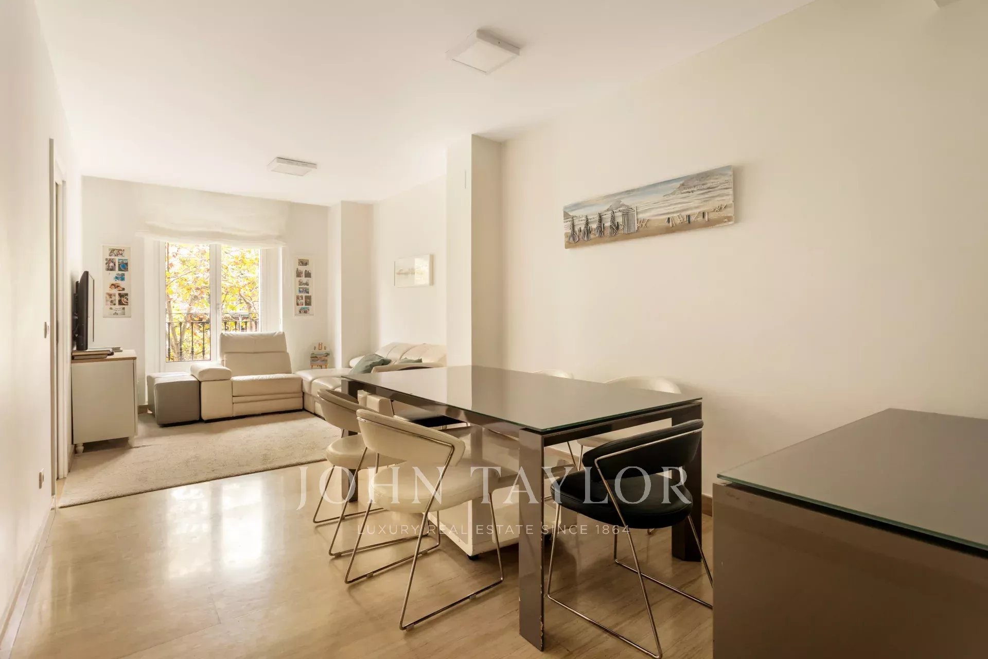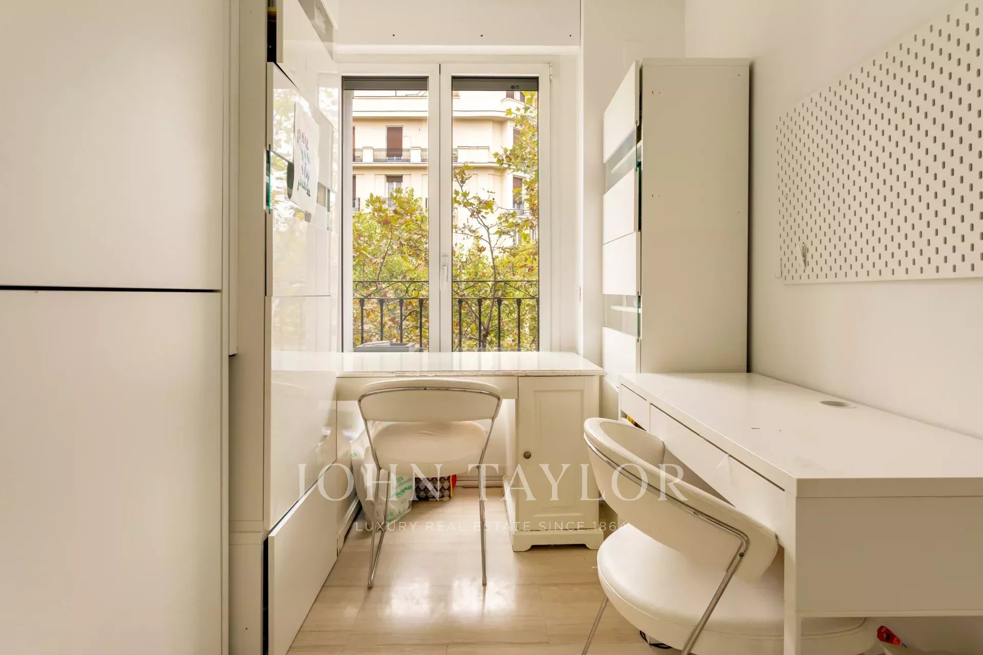 Diese angenehme Wohnung verfügt über insgesamt drei Schlafzimmer sowie zwei Bäder, eines davon en suite. Der Käufer könnte sie nach seinem persönlichen Geschmack umgestalten, indem er zur ursprünglichen Konfiguration zurückkehrt (indem er das dritte externe Schlafzimmer eliminiert, um das ursprüngliche größere Wohnzimmer mit zwei Balkonen wiederherzustellen).