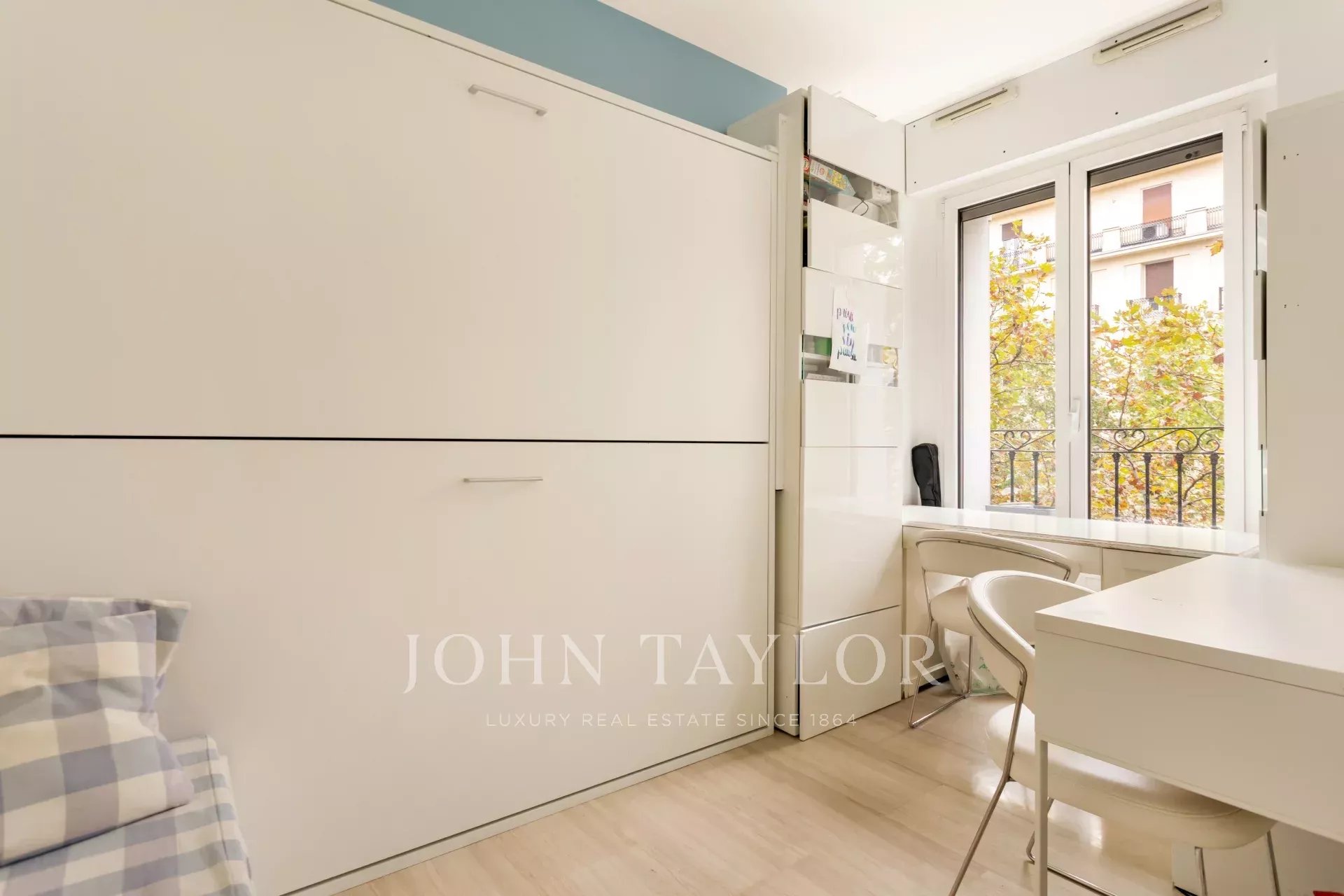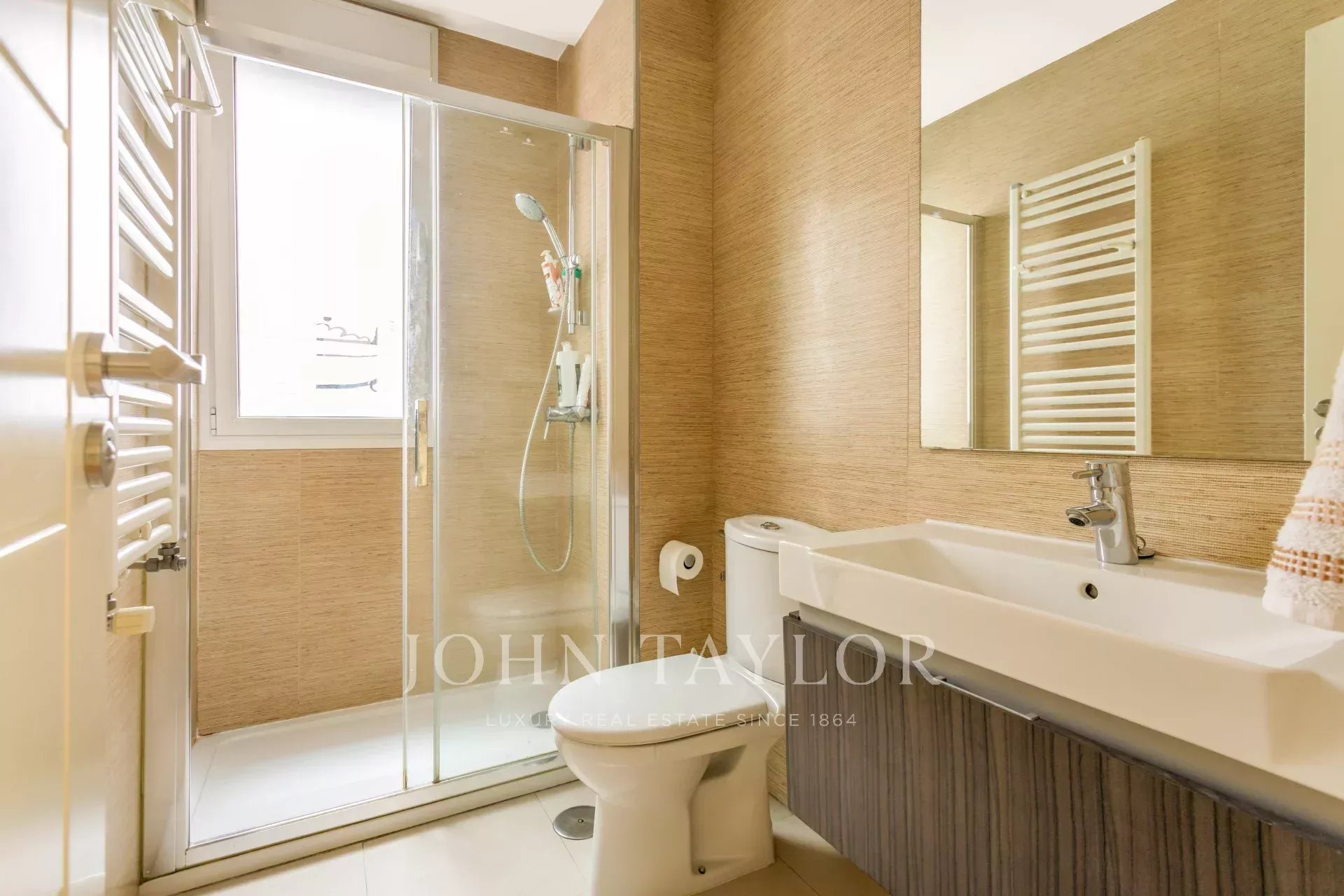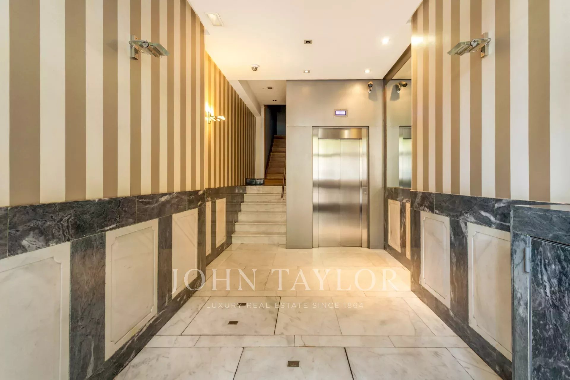 Diese angenehme Wohnung verfügt über insgesamt drei Schlafzimmer sowie zwei Bäder, eines davon en suite. Der Käufer könnte sie nach seinem persönlichen Geschmack umgestalten, indem er zur ursprünglichen Konfiguration zurückkehrt (indem er das dritte externe Schlafzimmer eliminiert, um das ursprüngliche größere Wohnzimmer mit zwei Balkonen wiederherzustellen).