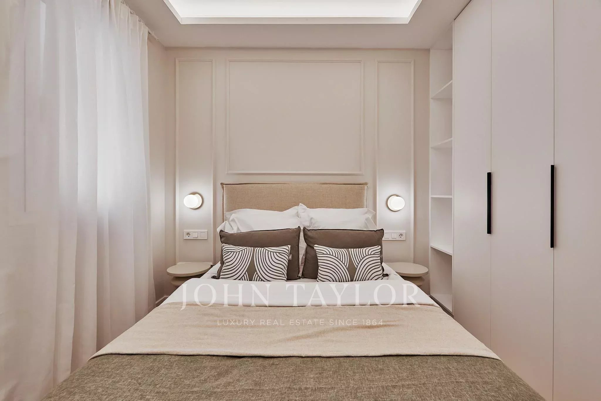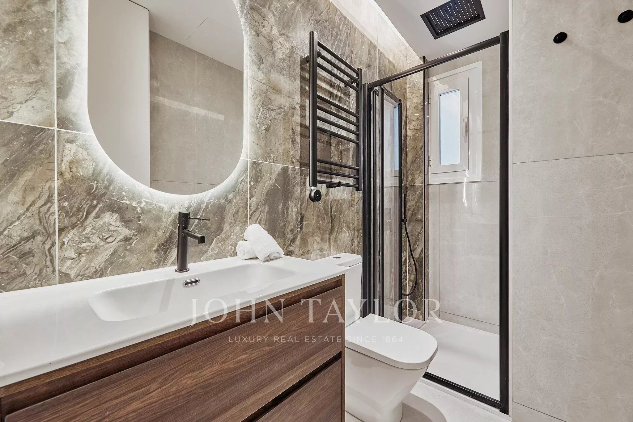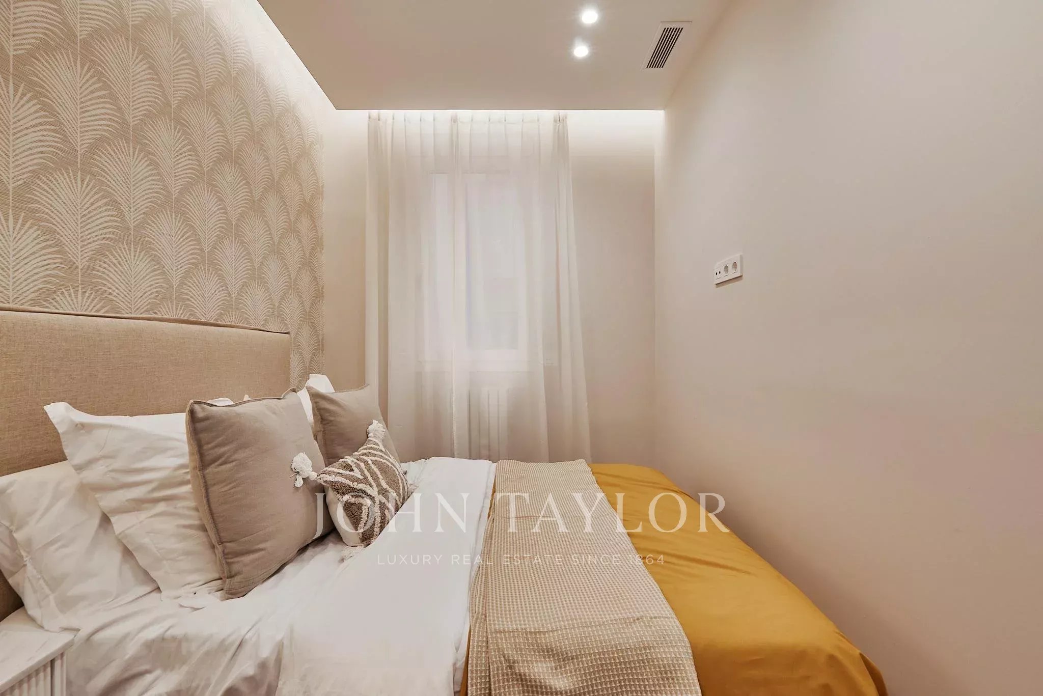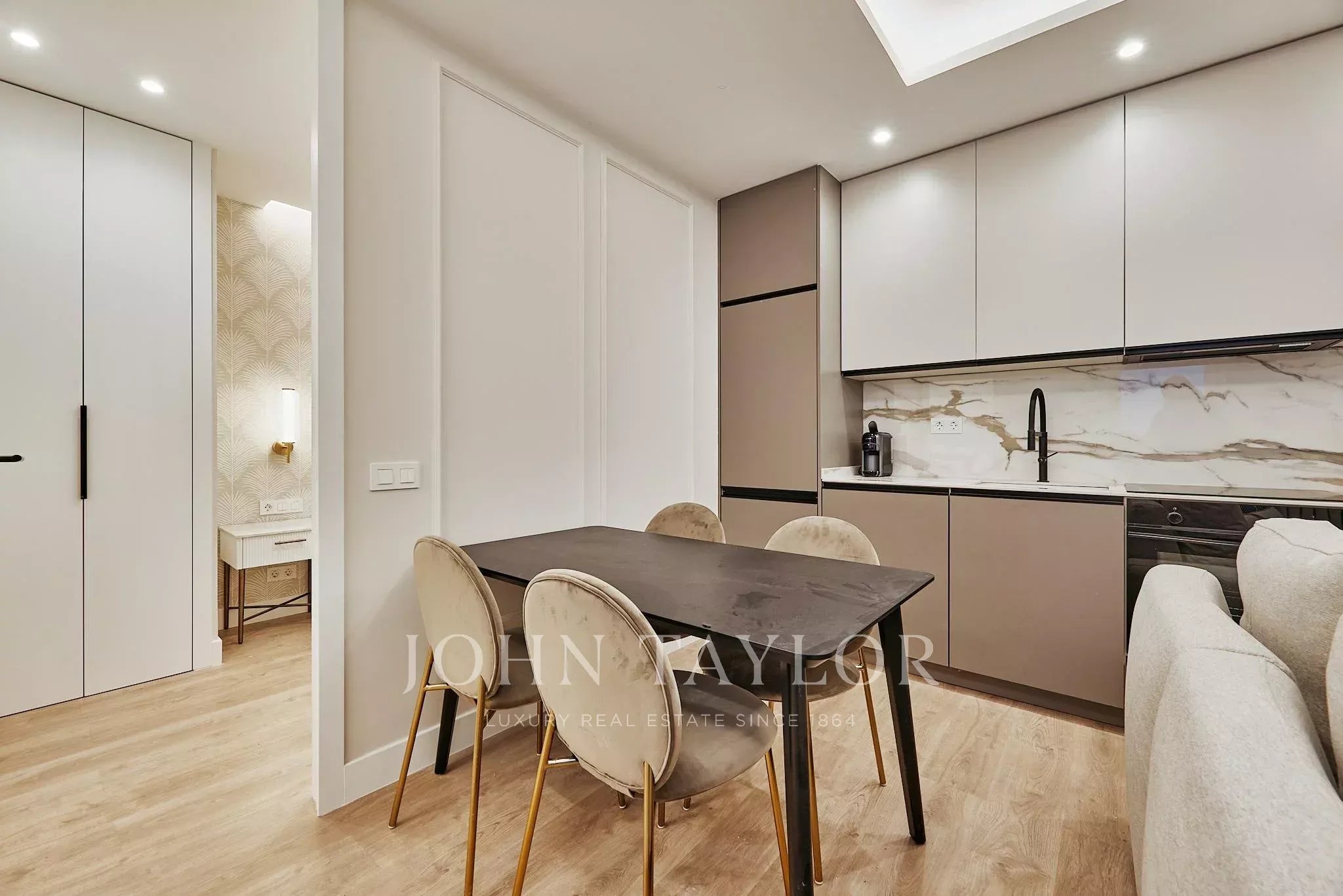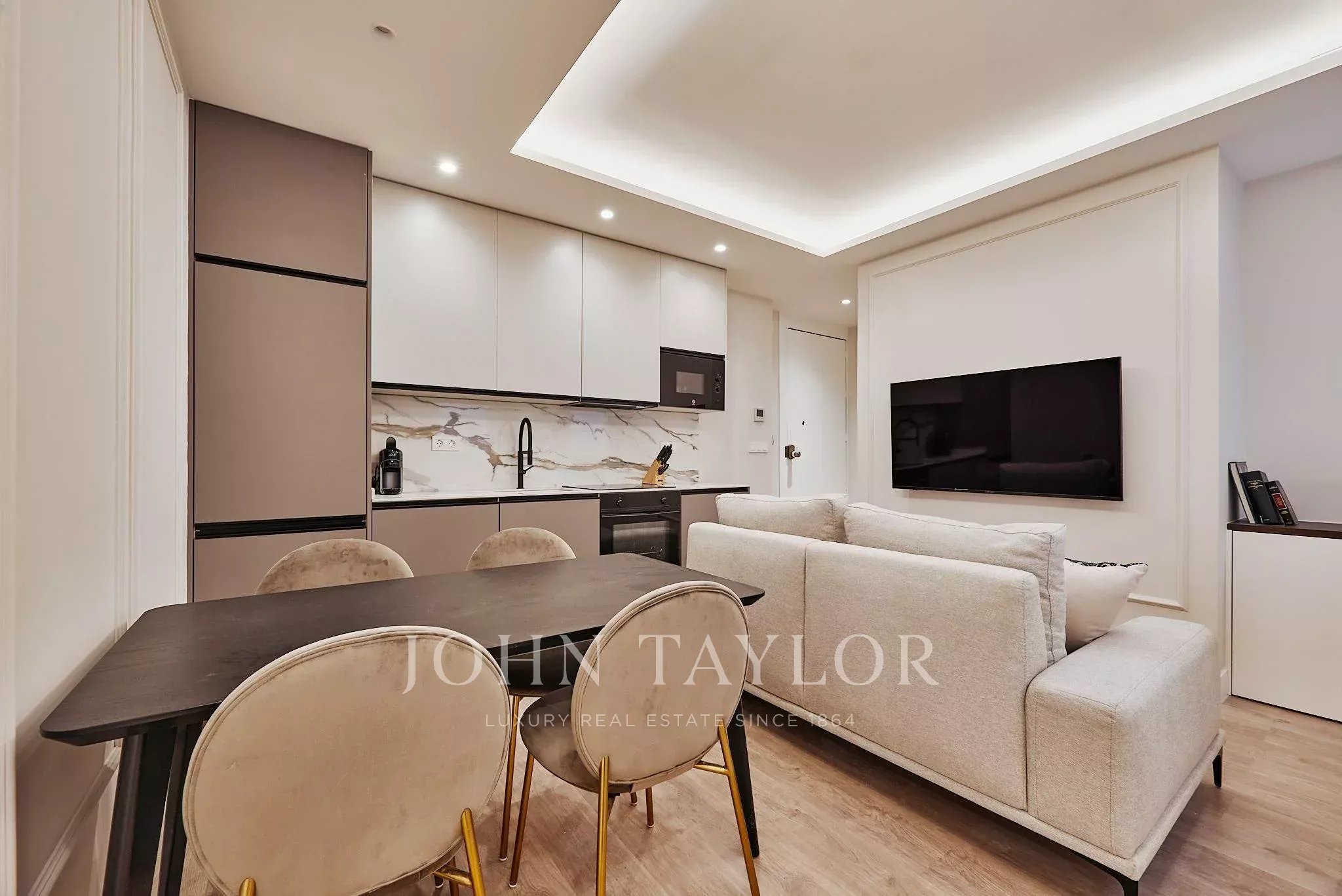 Das im zweiten Innenhof liegende, klassische Gebäude mit Aufzug und Pförtner wurde mit einem funktionalen und gepflegten Design renoviert, das jeden Raum optimiert. Das Wohnzimmer mit integrierter, vollständig ausgestatteter Küche schafft eine praktische und gemütliche Atmosphäre.