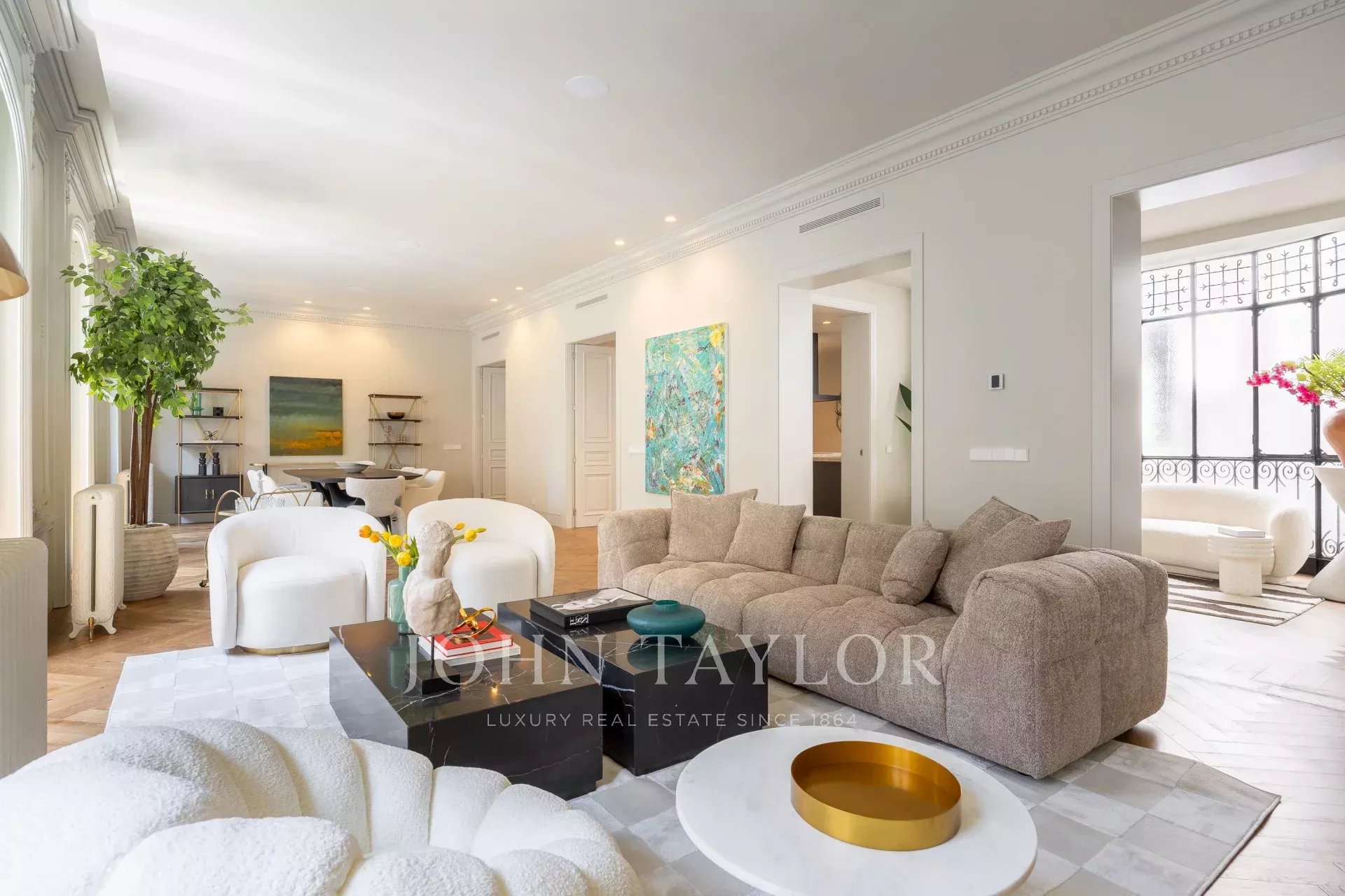 John Taylor präsentiert exklusiv diese einzigartige Immobilie, die sich im ersten Stock eines herrschaftlichen Gebäudes aus dem Jahr 1900 befindet, das hervorragend erhalten ist. Das Anwesen verfügt über 11 Balkone mit Blick auf die Straße, von denen zwei Erker typisch für die Zeit sind.
