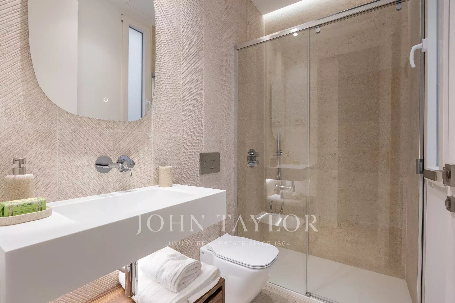 Der soziale Bereich bietet einen offenen Raum mit Wohnzimmer, Esszimmer und offene, voll ausgestattete Küche. In diesem Bereich befindet sich auch ein Gäste-WC. Der Schlafbereich besteht aus drei Schlafzimmern und drei Bädern, alle mit eigenem Bad. In diesem Bereich gibt es auch eine gemütliche Sitzecke und ein Büro.