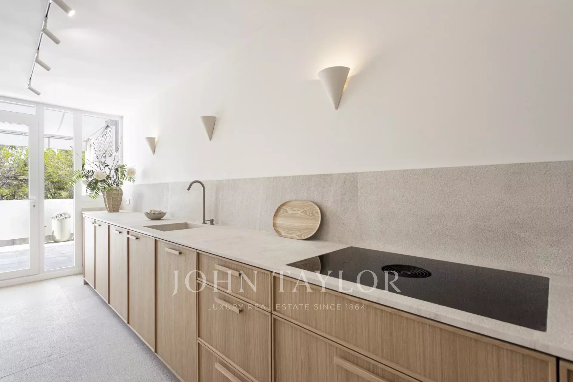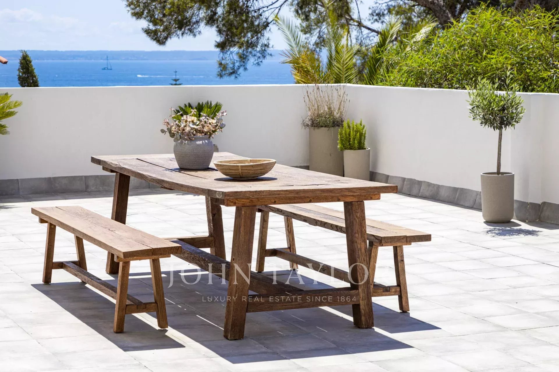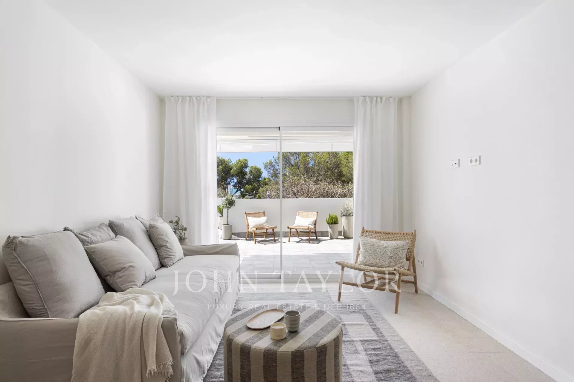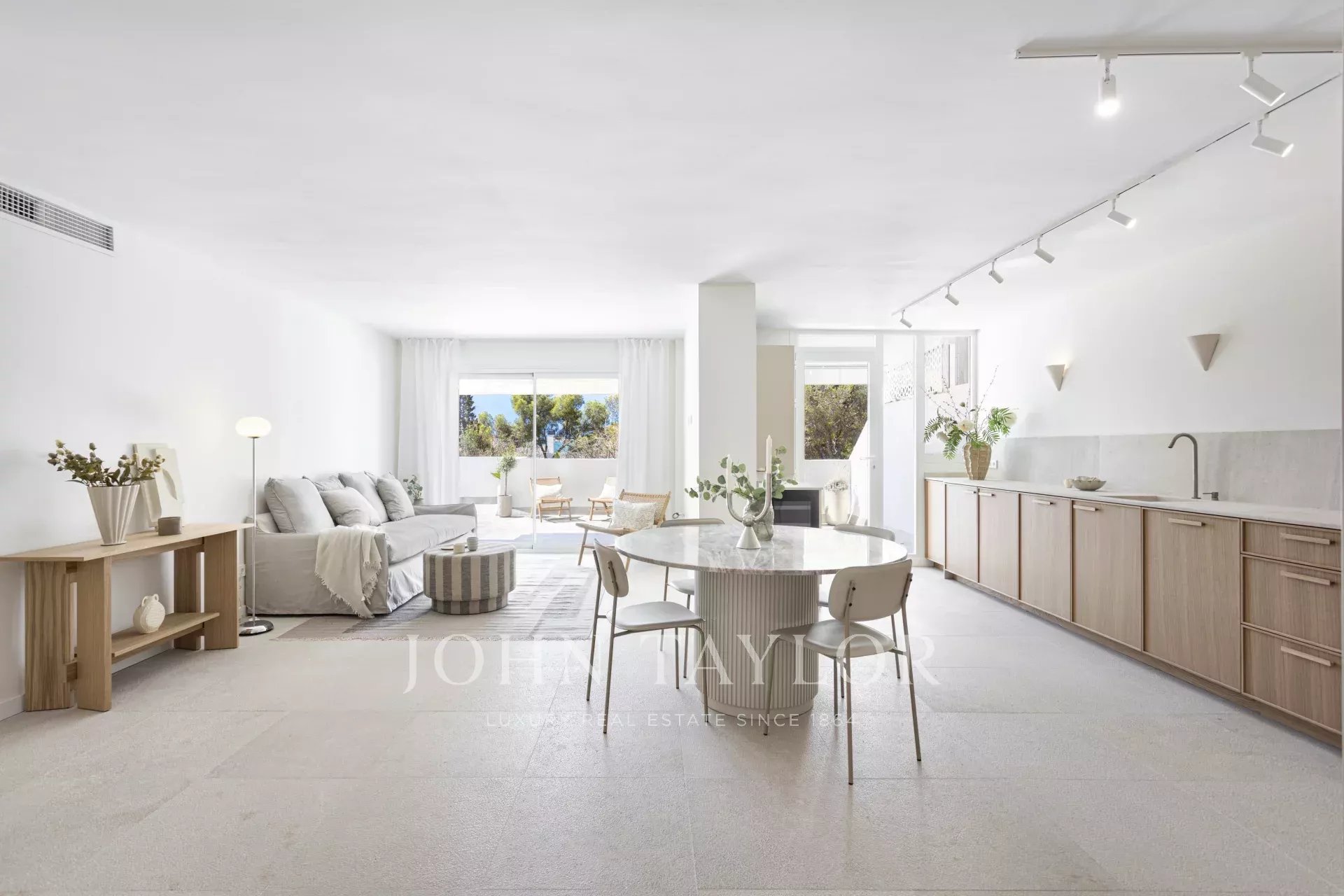 Diese außergewöhnliche Wohnung befindet sich in der vornehmen Gegend in Cas Català und stellt eine perfekte Verschmelzung von Luxus im Inneren und mediterranem Lebensstil im Freien dar. Mit einer Gesamtfläche von 200 m² - 100 m² Innenfläche und eine beeindruckende 100 m² große Terrasse - bietet die Immobilie von nahezu jedem Raum aus einen spektakulären Meerblick und schafft eine Atmosphäre der Ruhe und Raffinesse. Der offene Grundriss verbindet nahtlos das Wohn- und Esszimmer, das von eleganten Zarci-Natursteinböden eingerahmt wird, die Wärme und Charakter verleihen. Die Küche, ausgestattet mit Gaggenau-Geräten, Eichenholzoberflächen und einer beeindruckenden Arbeitsplatte aus Binissalem-Marmor, fügt sich harmonisch in den Raum ein und spiegelt ein zeitgemäßes und funktionales Design wider. Die drei Schlafzimmer wurden so konzipiert, dass sie ein Maximum an Licht und Aussicht bieten. Das Hauptschlafzimmer verfügt über ein elegantes Bad en-suite und einen direkten Zugang zur Terrasse. Letztere, der eigentliche Protagonist der Immobilie, bietet einen einzigartigen Rahmen mit unverbaubarem Meerblick, Grillplatz, Ess- und Entspannungsbereichen, ideal, um die mallorquinische Sonne zu genießen und Zusammenkünfte im Freien abzuhalten. Abgerundet wird diese attraktive Immobilie durch einen großen Parkplatz im selben Gebäude, der Platz für zwei Kleinwagen bietet, einen großzügigen Abstellraum und einen direkten Zugang mit dem Aufzug von der Garage zur Eingangstür, was maximalen Komfort und Privatsphäre garantiert. Eine einmalige Gelegenheit für diejenigen, die in einer der exklusivsten Gegenden der Insel stilvoll wohnen möchten.