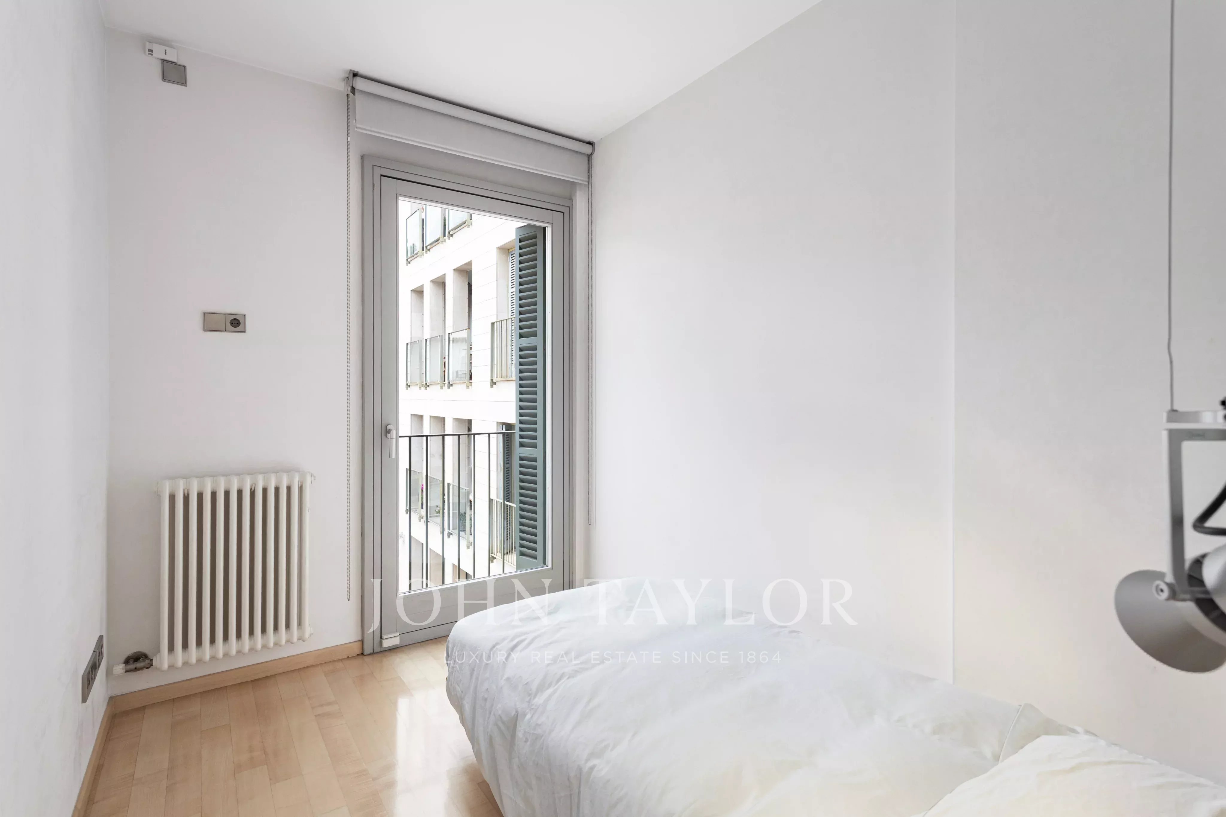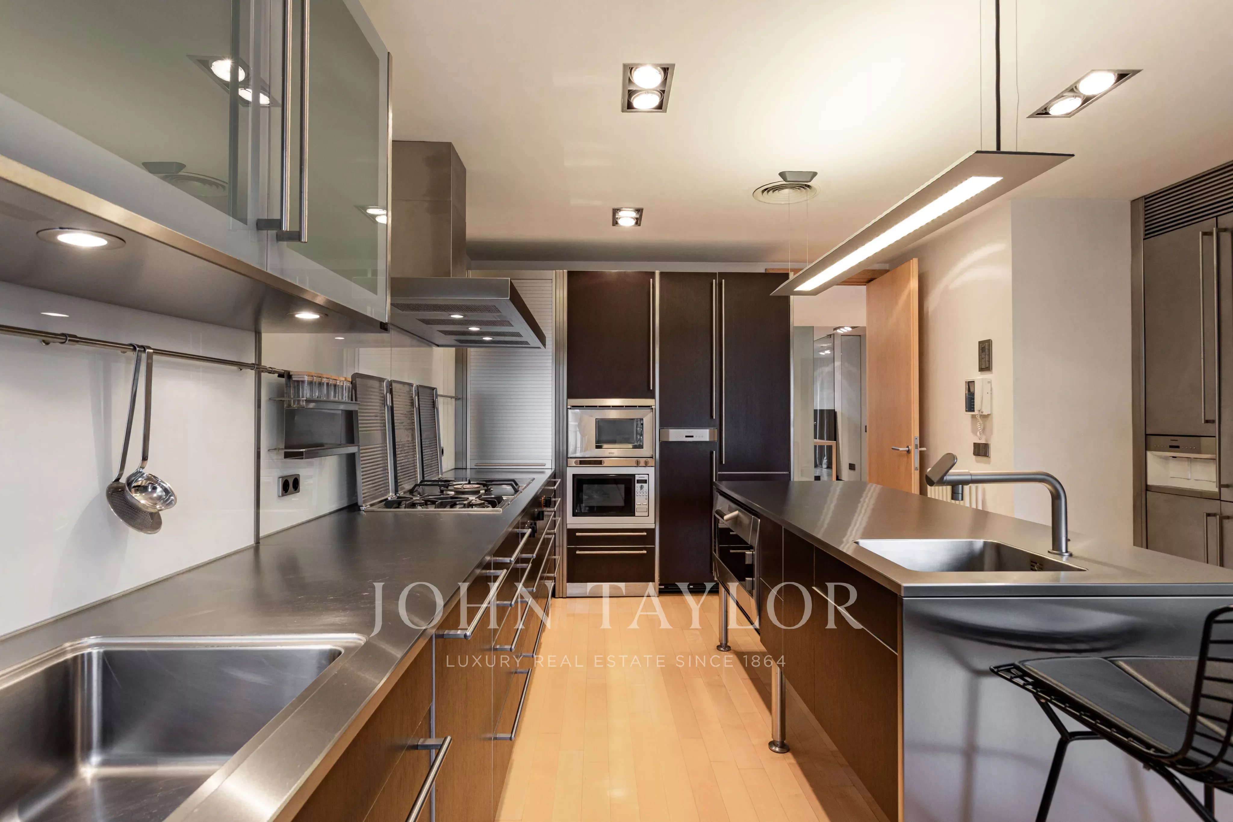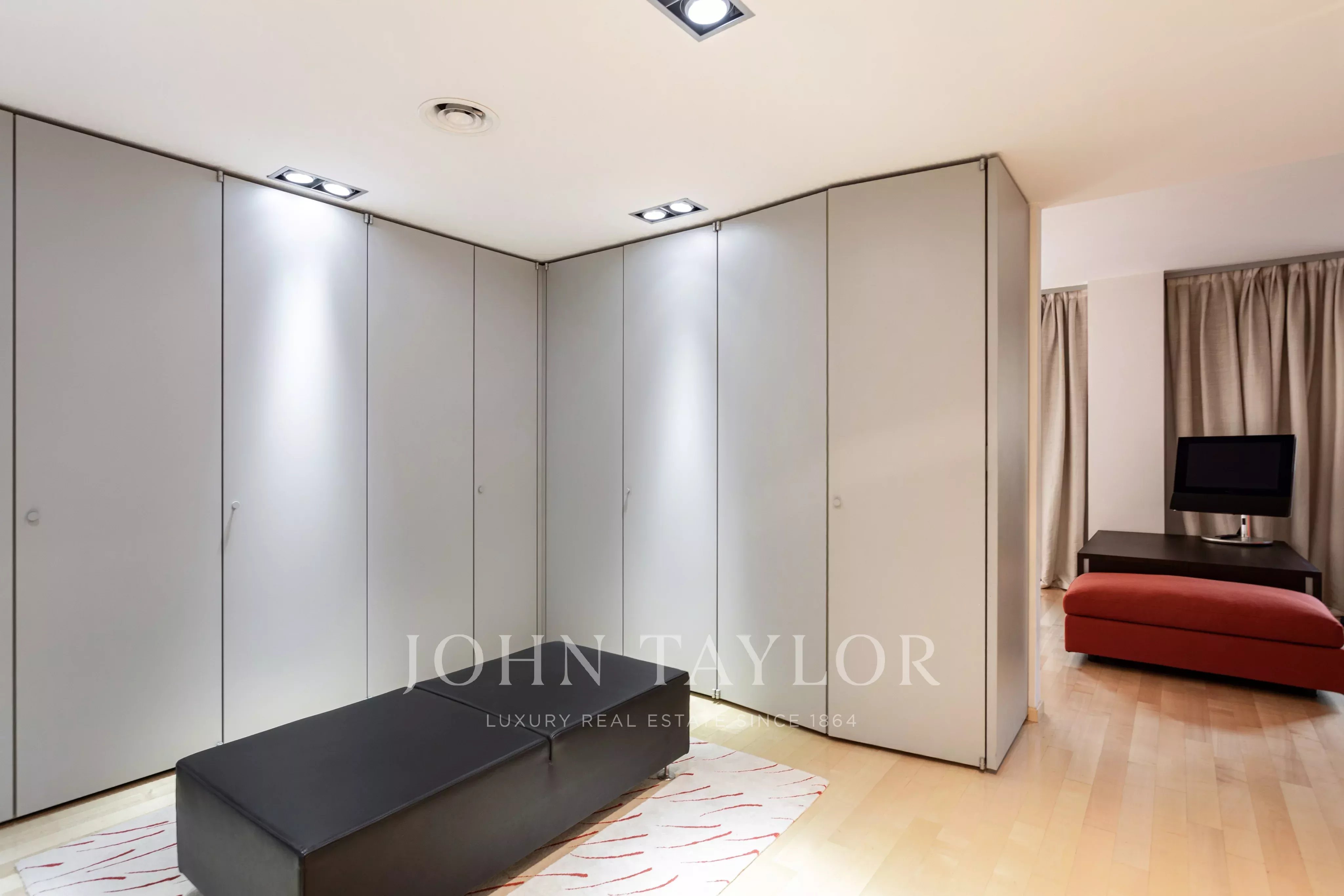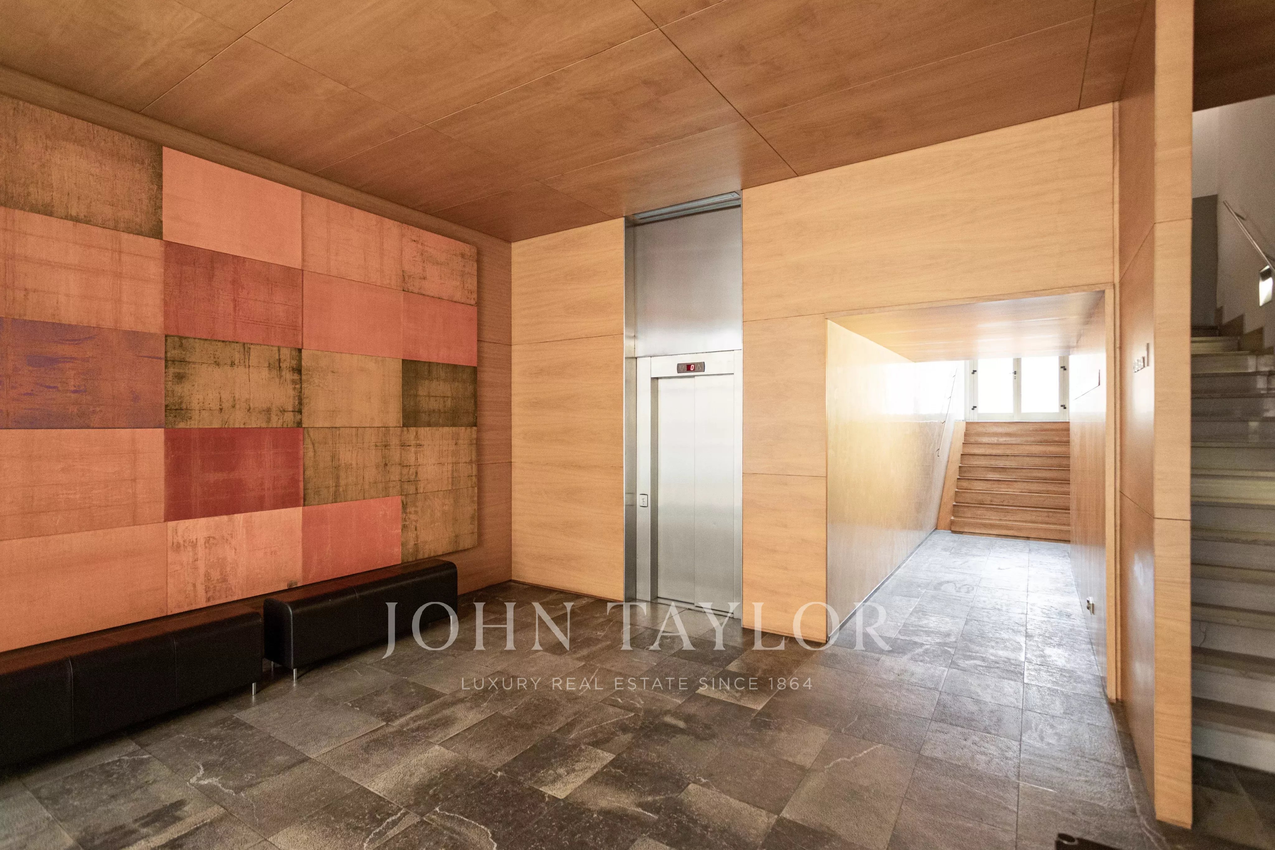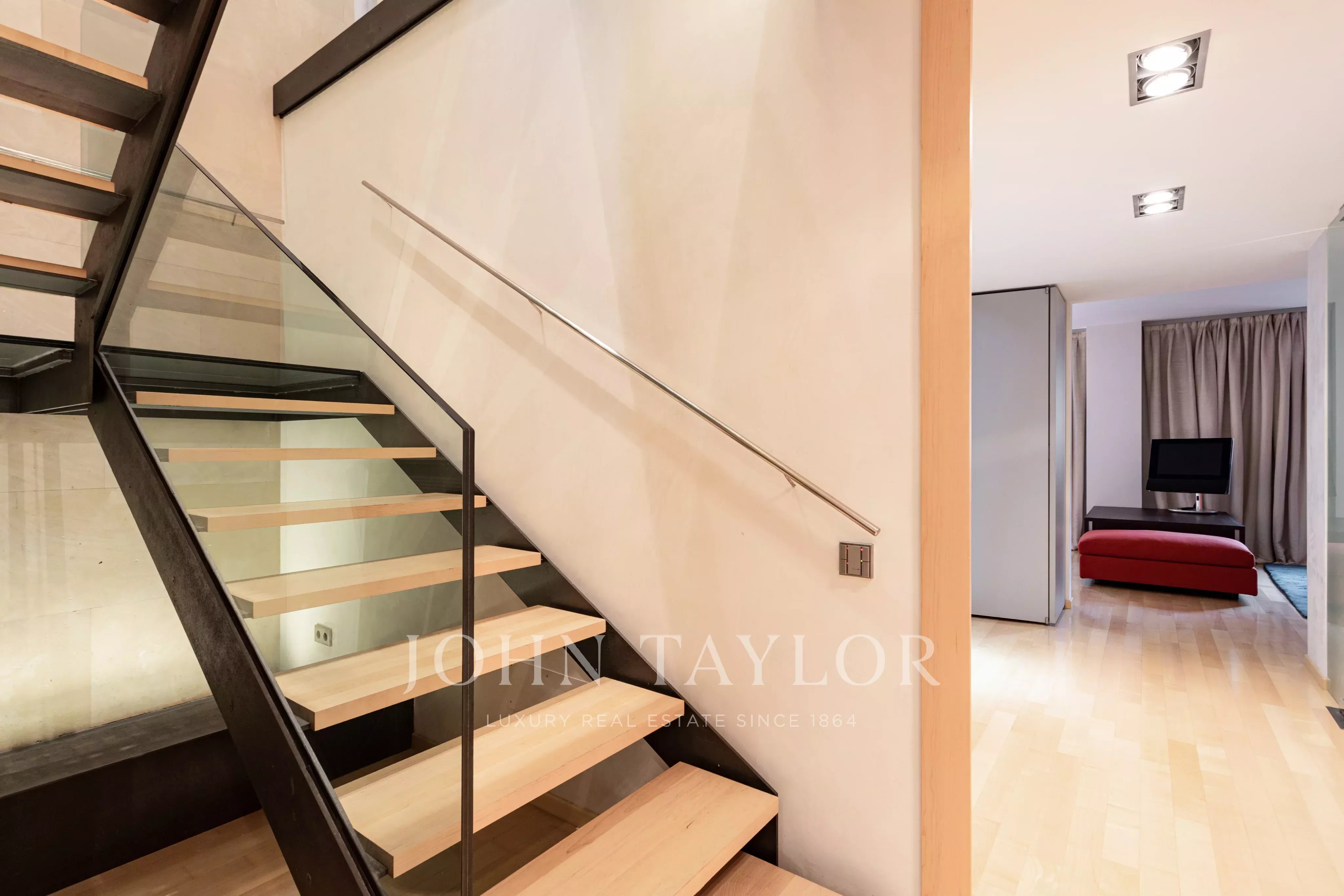 Die Wohnung erstreckt sich über zwei Ebenen, die sowohl über eine interne Treppe als auch über einen privaten Aufzug verbunden sind – ein seltenes Komfortmerkmal in dieser Lage.