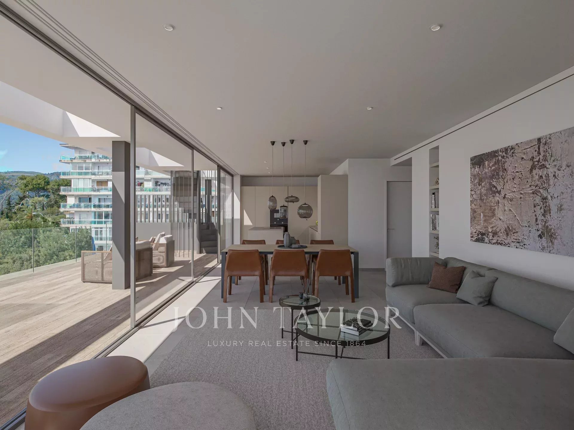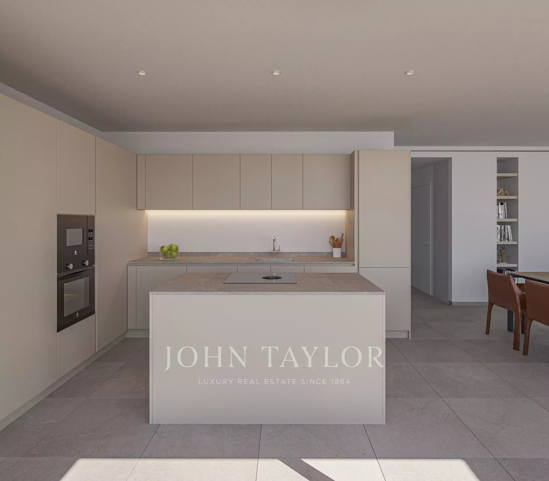 Das Innere des Wohngebäudes wurde von der mallorquinischen Lebensart inspiriert. Bodentiefe Fensterfronten, raumhohe Türen und Schrankelemente sowie vollflächige Steinböden lassen die Räume fließend ineinander übergehen und verleihen jeder Wohnung eine besondere Eleganz. Gepaart mit dem modernen, geradlinigen und funktionalen Design und der hellen, mediterranen Farbpalette entwickeln die Innenräume ihren ganz eigenen, zeitlos modernen Charakter.
