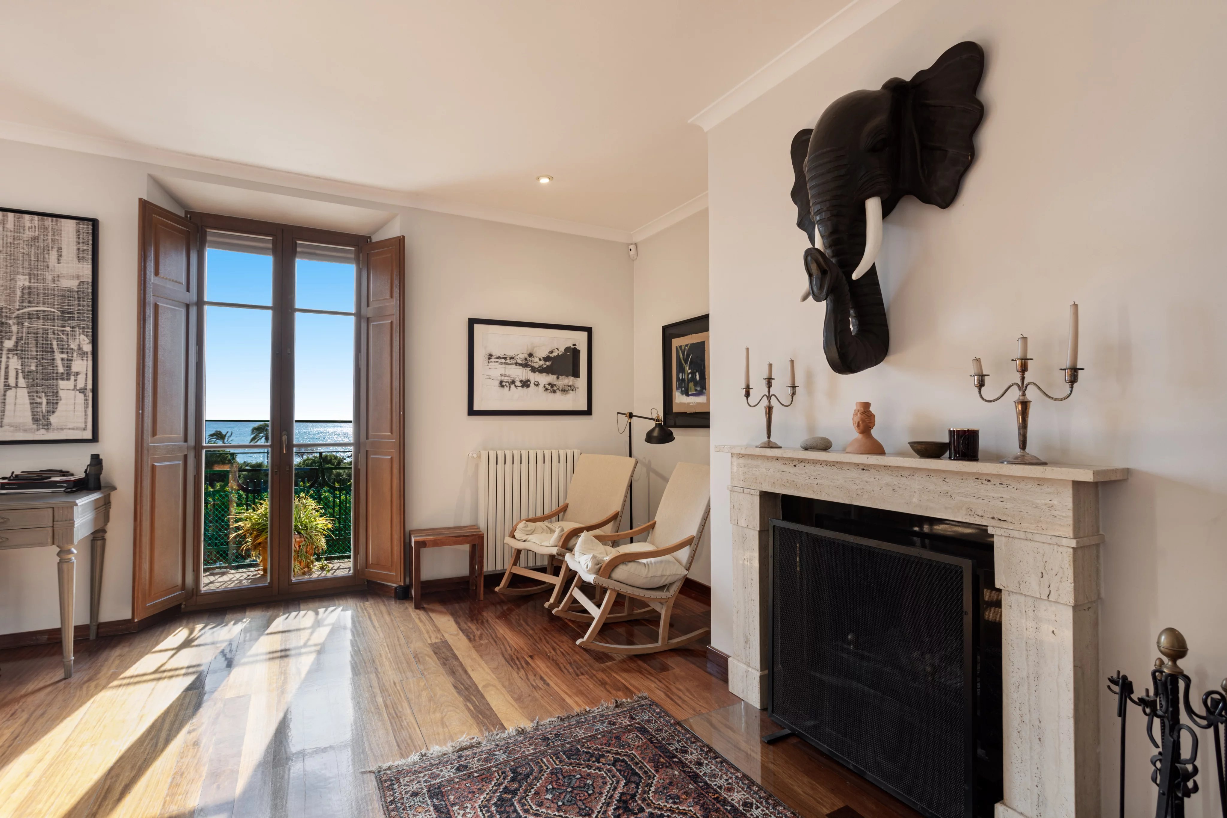 Der großzügige Wohn- und Essbereich ist lichtdurchflutet, offen gestaltet und konsequent auf den Meerblick ausgerichtet. Zwei stilvolle Kamine, ein repräsentativer Erker sowie zwei Balkone auf der linken und rechten Seite schaffen eine außergewöhnlich helle, großzügige und zugleich elegante Wohnatmosphäre.