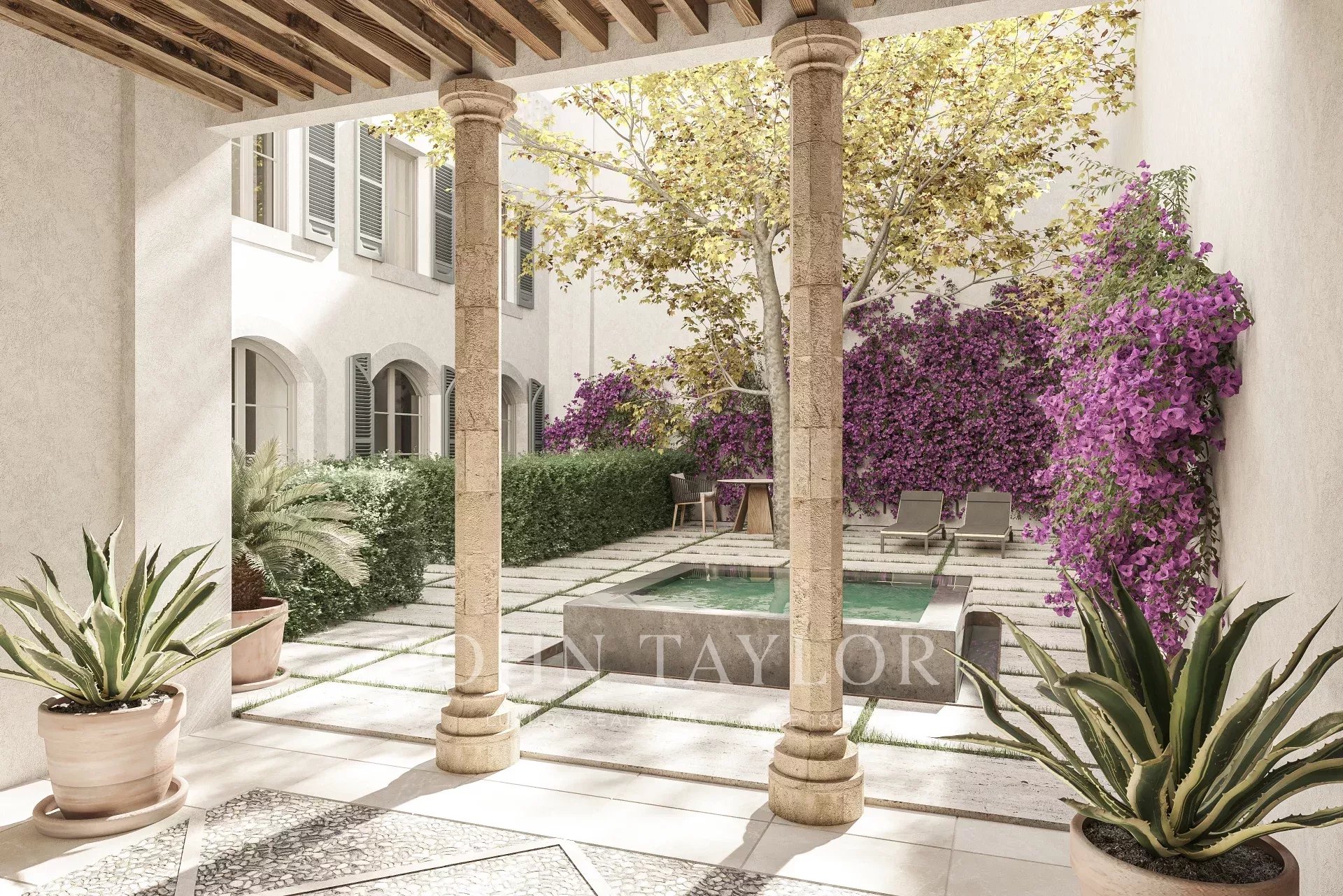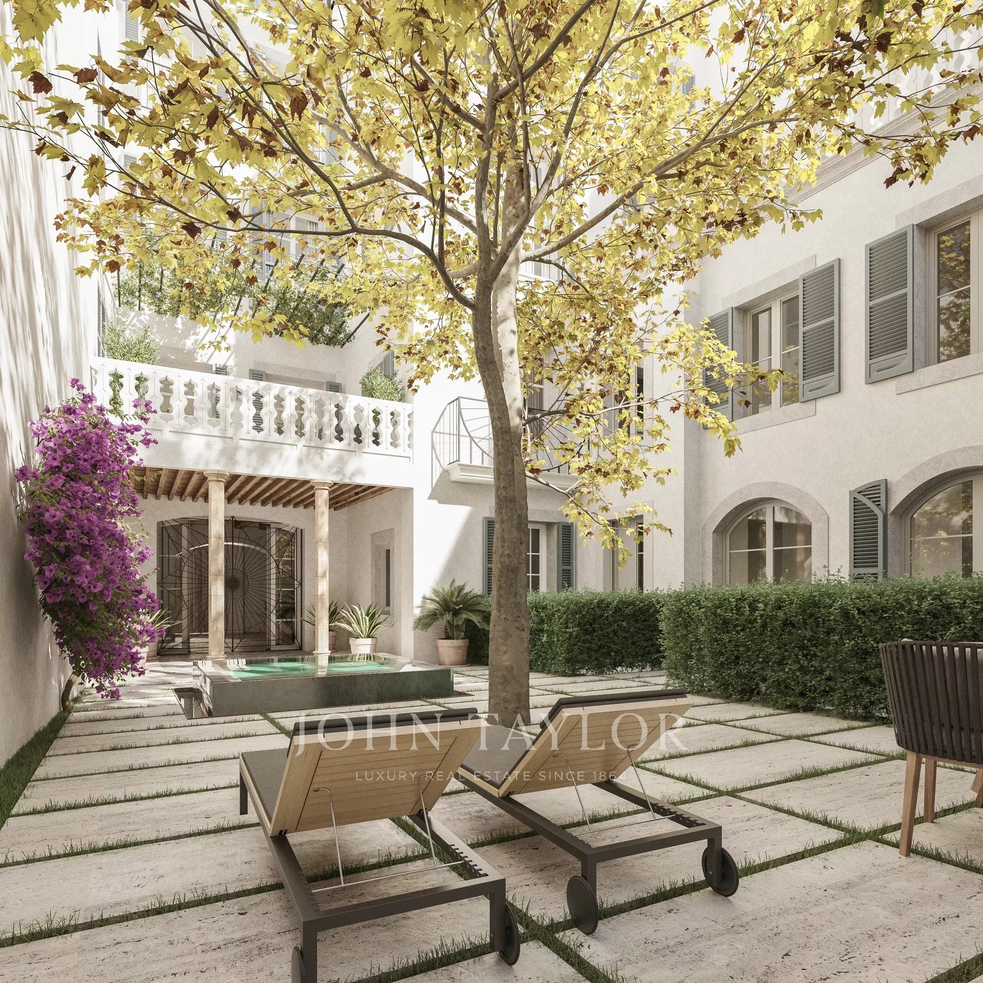 Dieses fabelhafte neue Projekt, das sich derzeit im Bau befindet, wird in eine atemberaubende Residenz mit 5 Wohneinheiten umgewandelt, die um einen privaten Garten herum gebaut wird. Dieser elegante Komplex ist ein fester Bestandteil der Altstadt und bietet eine wahre Oase des Friedens, des sommerlichen Schattens und der Ruhe (im Winter verlieren die großen alten Laubbäume ihre Blätter und lassen die Sonne durch). Die Einheiten variieren von Gartenwohnungen, Doppel- und Dreifamilienhäusern, von 81 m2 bis 190 m2 und 1, 2 und 3 Schlafzimmern. Sowohl die Erdgeschoss- als auch die Dachgeschosswohnungen verfügen über Außenbereiche, die sich ideal zur Erholung und Entspannung eignen. Das Projekt konzentriert sich auf die Wiederherstellung des ursprünglichen Glanzes des Gebäudes mit allen Vorteilen des modernen Wohnens, wie z.B. Balkendecken, raumhohe Fenster, Fußbodenheizung, voll ausgestattete Küchen mit Siemens-Geräten, zentrale Klimaanlage und Hausautomatisierungssystem sowie die Verwendung edler Materialien wie Naturstein aus Binissalem und Eichenparkett.