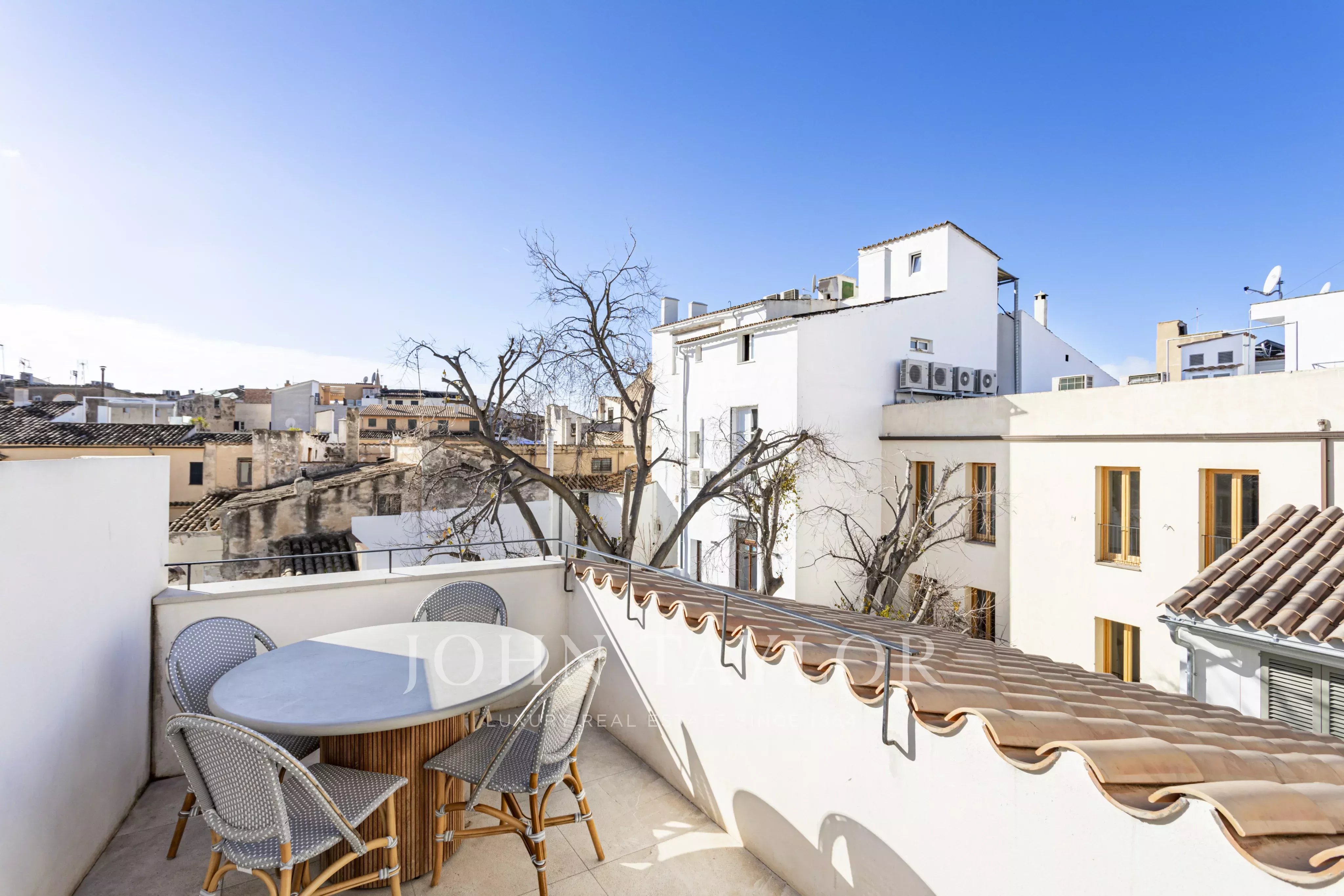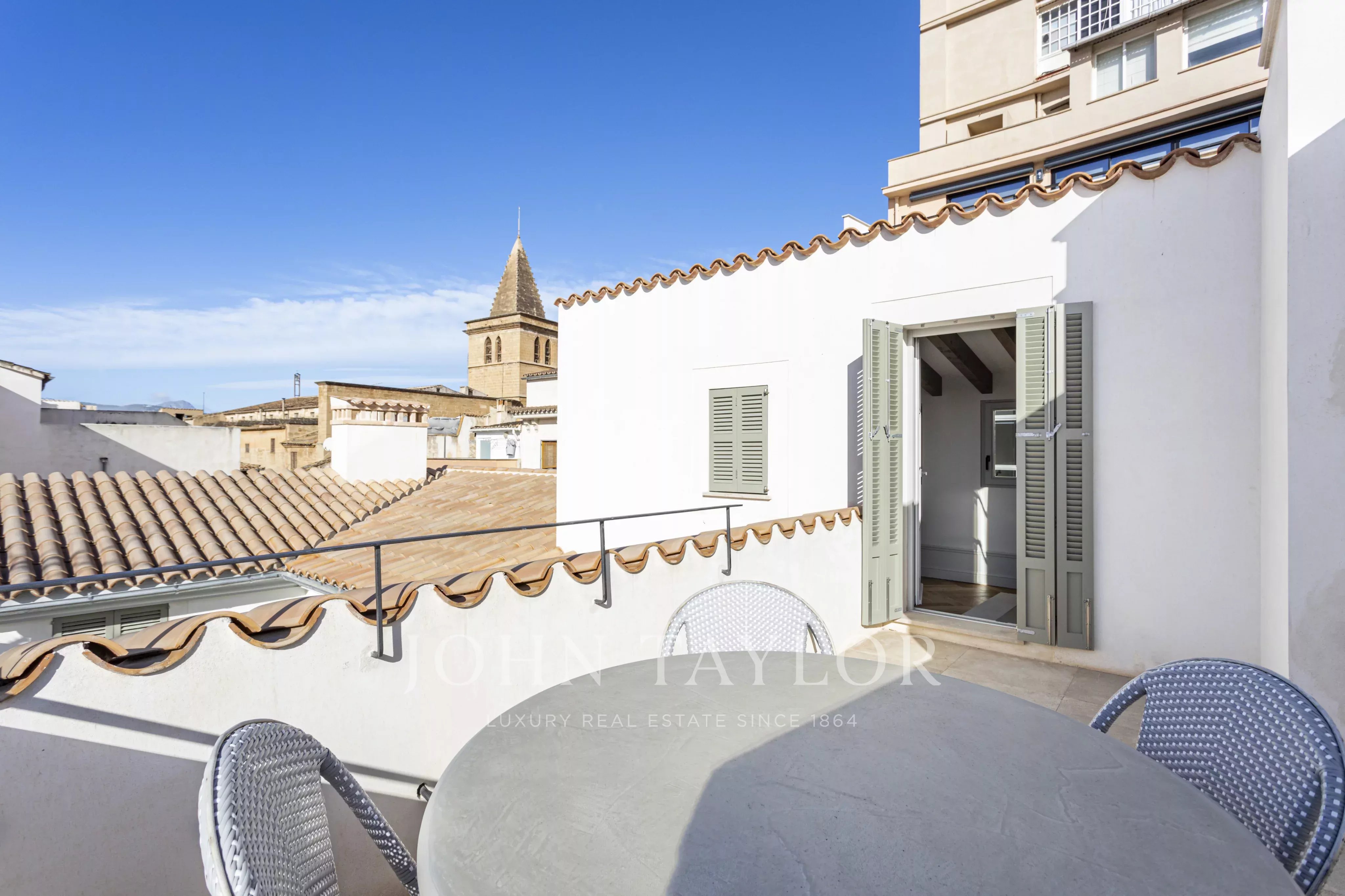 Im Herzen der Altstadt von Palma de Mallorca gelegen, verbindet dieses exklusive Duplex-Penthouse historischen Charme mit modernem Komfort und bietet einen direkten Zugang mit dem Aufzug zum Haus.
