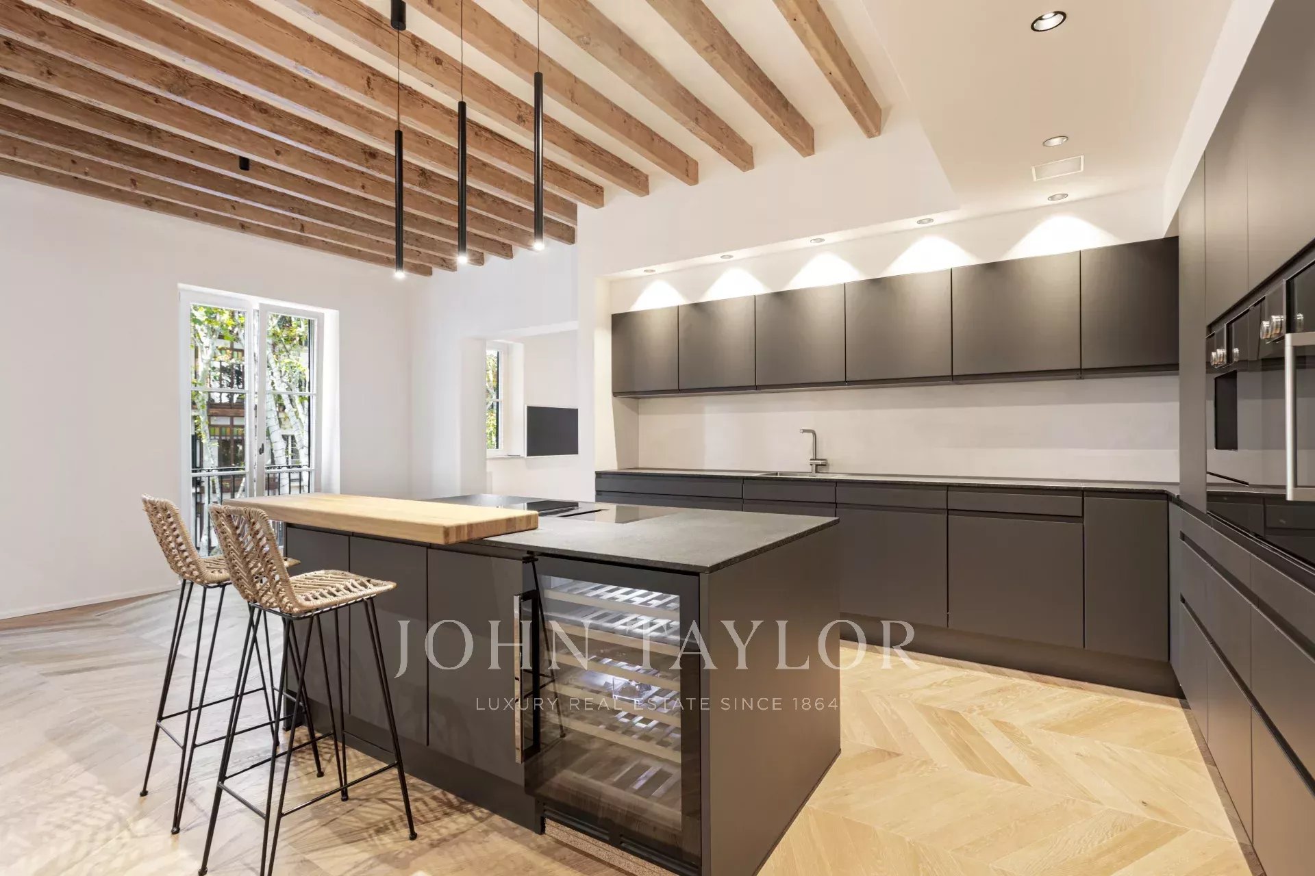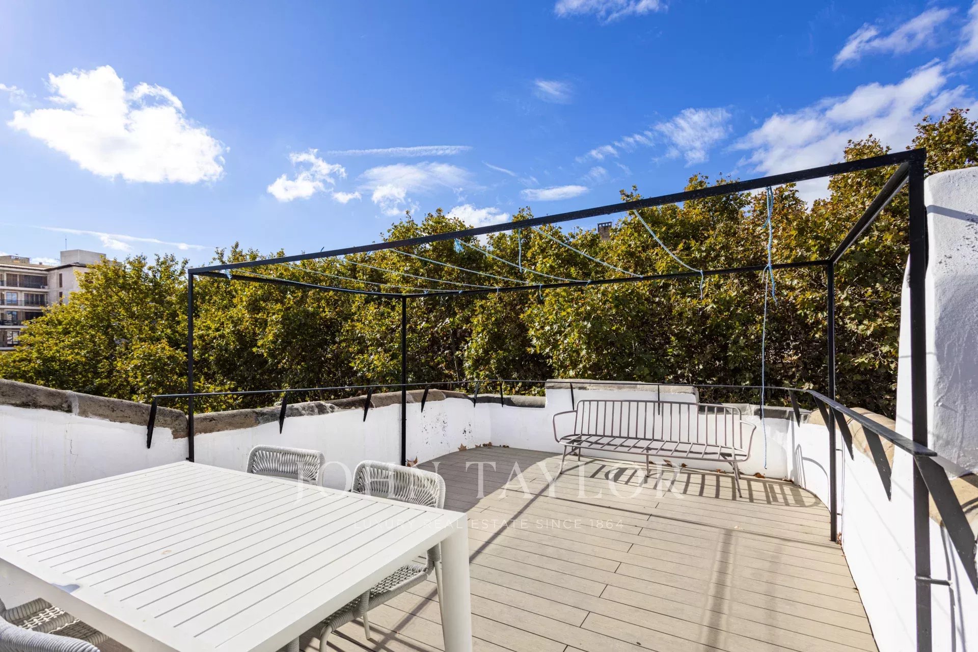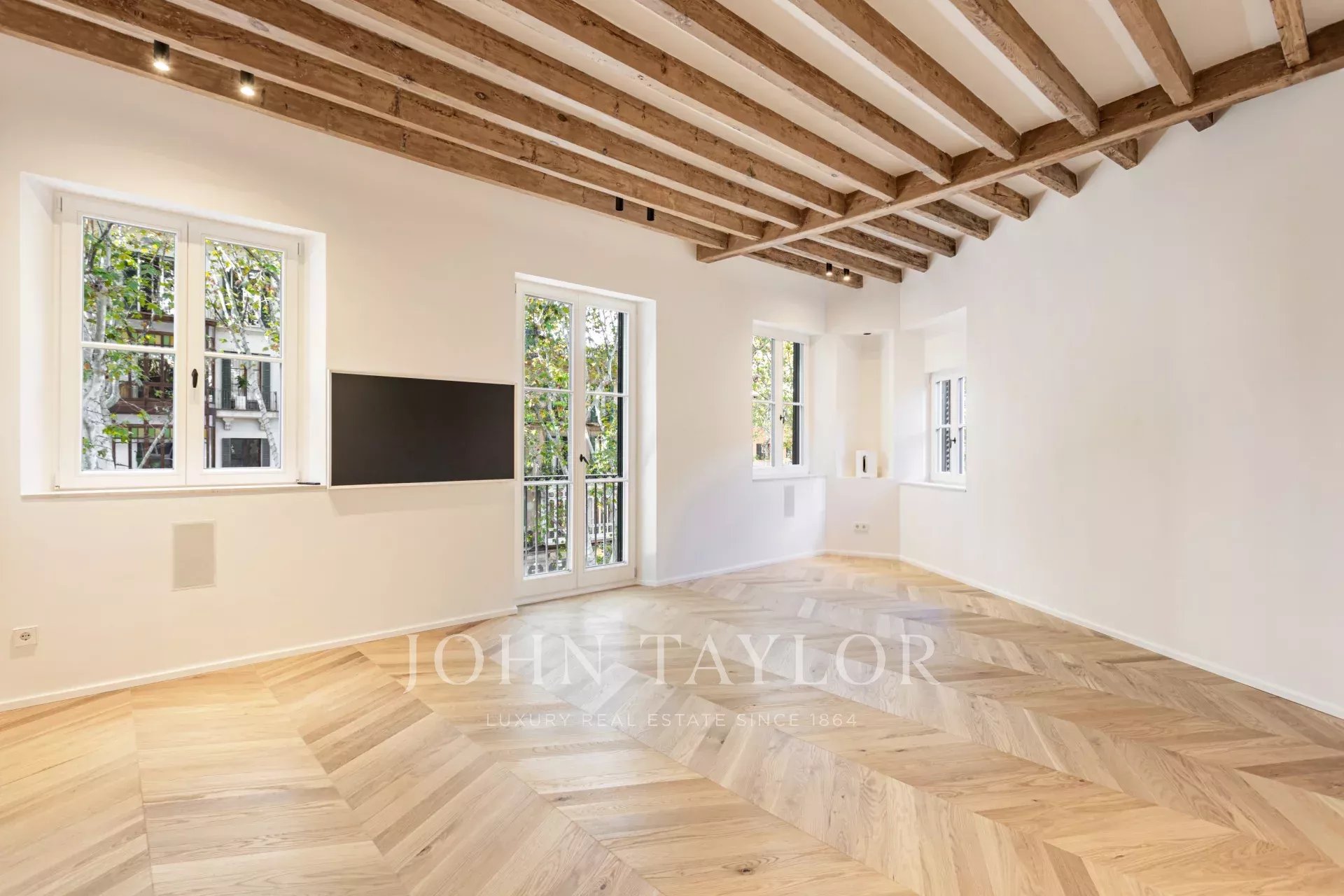 Entdecken Sie diese außergewöhnliche Luxuswohnung im Herzen von Palmas Altstadt an der berühmten Rambla. Die im Oktober 2024 fertiggestellte Immobilie verbindet moderne Eleganz mit historischem Charme und bietet direkten Zugang zu Palmas pulsierendem Leben, Restaurants und Einkaufsmöglichkeiten. Die Wohnung verfügt über einen großzügigen, offenen Grundriss mit einer voll ausgestatteten Küche, einem Ess- und einem Wohnzimmer. Vom Boden bis zur Decke reichende Fenster durchfluten den Raum mit natürlichem Licht und heben den atemberaubenden natürlichen Eichenholzboden, die originalen Marés-Steinwände und die authentischen Holzbalken hervor. Diese Mischung aus modernem Design und traditionellen Materialien schafft eine warme und einladende Atmosphäre. Das Haus verfügt über drei Schlafzimmer und drei Badezimmer, von denen zwei mit eigenem Bad ausgestattet sind. Das Hauptschlafzimmer verfügt über einen privaten Ankleideraum, der für Komfort und Luxus sorgt. Eines der herausragenden Merkmale ist die Gemeinschaftsterrasse mit atemberaubendem Blick auf die von Bäumen gesäumte Rambla, ideal zum Entspannen oder um Gäste zu empfangen. Es besteht die Möglichkeit, einen Parkplatz nur wenige Meter entfernt anzumieten. Diese atemberaubende Immobilie kombiniert hochwertige Ausstattung mit dem Charme von Palmas Altstadt und ist damit die ideale Wahl für alle, die ein luxuriöses Zuhause in bester Lage suchen.