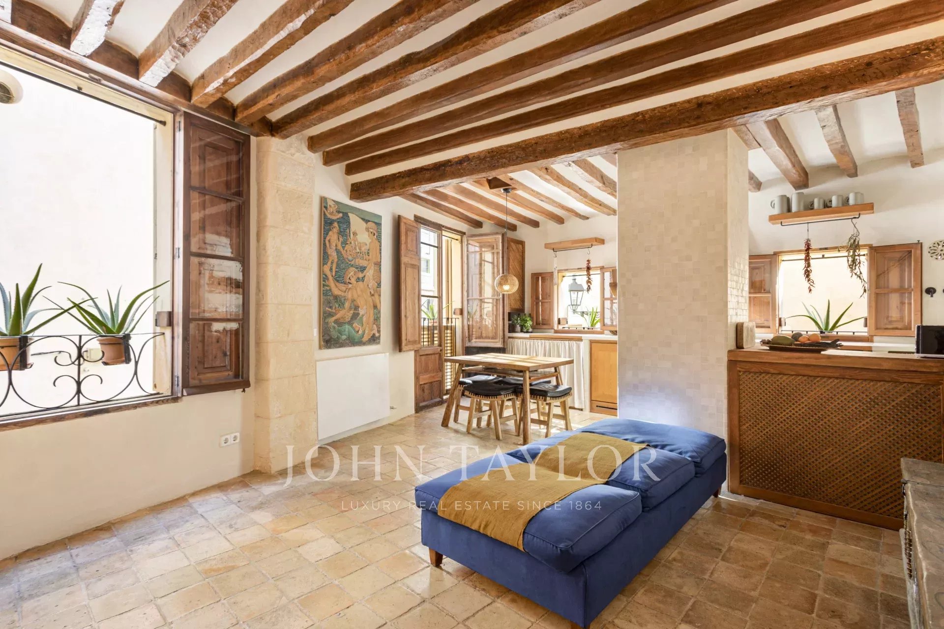 Im Herzen der Altstadt von Palma, im historischen Viertel La Calatrava, gelegen, verbindet diese 2024 renovierte Immobilie den Charme des 13. Jahrhunderts mit allen modernen Annehmlichkeiten. Jahrhundert mit allen modernen Annehmlichkeiten. Nur wenige Schritte von der Kathedrale von Palma und den "Gärten der Bischöfe" entfernt, verteilt sich dieses Haus auf drei Etagen und ein Untergeschoss und bietet Vielseitigkeit und Stil für das städtische Leben. Die Immobilie hat zwei Eingänge und das Erdgeschoss könnte als Büro oder Gästezimmer mit Bad genutzt werden. Im ersten Stock gibt es eine gemütliche Küche, die zum Wohnzimmer hin offen ist, und im zweiten Stock befindet sich das Hauptschlafzimmer mit eigenem Bad. Das Untergeschoss bietet zusätzlichen Platz für Wäsche und Abstellräume, so dass der tägliche Bedarf gedeckt ist. Mit Terrakottaböden und Holzbalken, von denen einige noch aus der Kathedrale von Palma stammen, verbindet diese Immobilie mallorquinische Tradition und Moderne, mit Gaszentralheizung, Klimaanlage und einem Aufzug für Haushalte und Lebensmittel. Die privilegierte Lage ermöglicht es Ihnen, die lebendige Atmosphäre des Zentrums von Palma zu genießen, mit einfachem Zugang zu kulturellen Sehenswürdigkeiten, Cafés und exklusiven Geschäften.