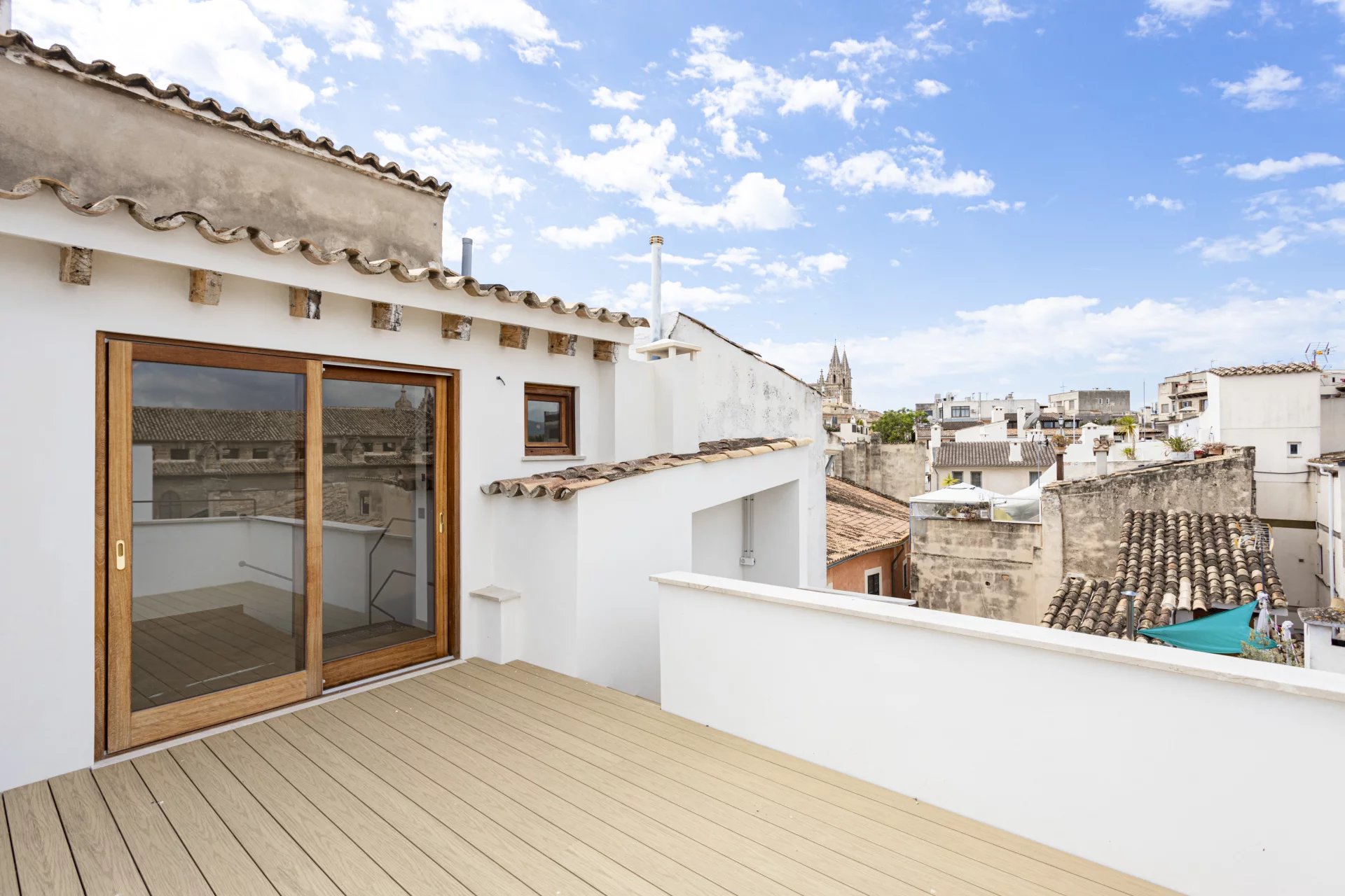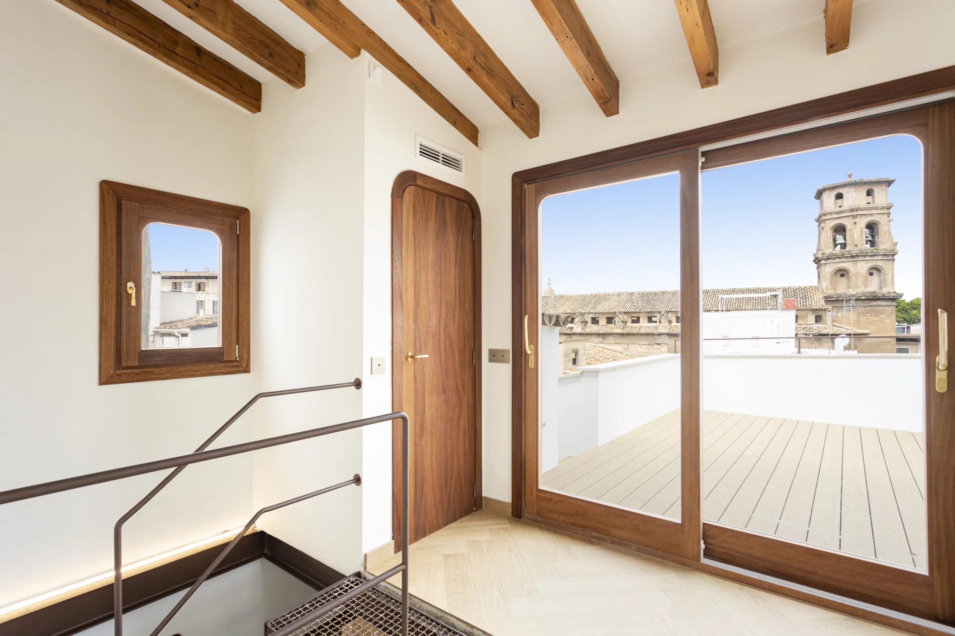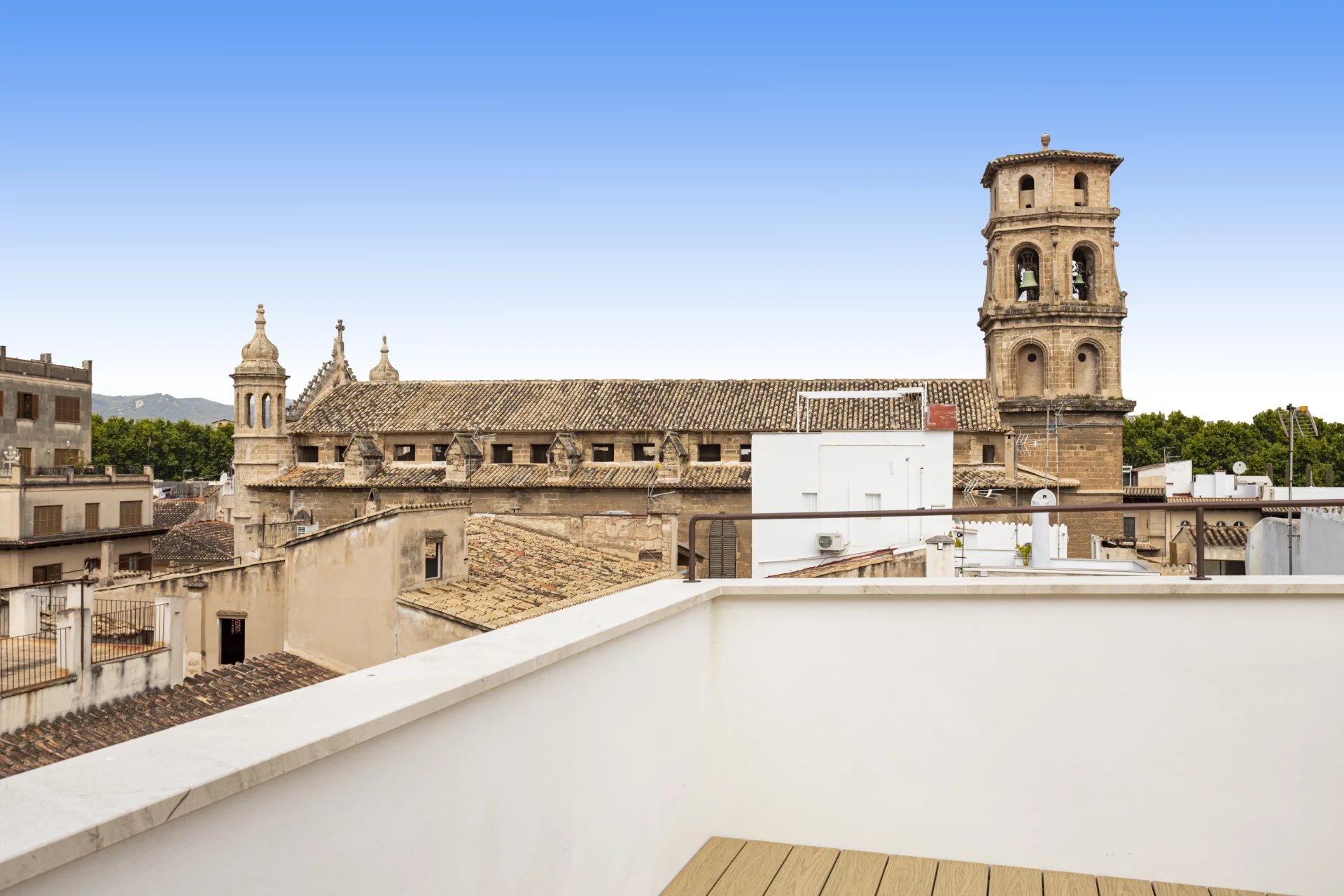 Zum Verkauf steht ein exklusives, renoviertes Duplex-Penthouse mit Terrasse in der Altstadt von Palma de Mallorca, gelegen in der prestigeträchtigen Calle Brossa, direkt neben der emblematischen Kirche Sant Nicolás. Diese einzigartige Immobilie verbindet historischen Charme mit zeitgenössischem Design und edlen Materialien und bietet ein anspruchsvolles Wohnerlebnis in einer der begehrtesten Gegenden im Zentrum von Palma. Mit einer bebauten Fläche von 134 m² und einer spektakulären privaten Terrasse von 28 m² ist dieses luxuriöse Penthouse über zwei Etagen verteilt und wurde komplett mit hochwertigen Materalien renoviert. Das geräumige und helle Wohn-Esszimmer ist perfekt mit einer modernen und funktionellen Küche integriert. Es verfügt über zwei Doppelschlafzimmer mit Einbauschränken und zwei komplette Bäder sowie ein drittes Mehrzweckzimmer, das sich ideal als Büro, Bibliothek oder drittes Schlafzimmer eignet, mit Toilette und direktem Zugang zur Terrasse. Die eine wahre urbane Oase ist, mit Vorinstallation für eine Außenküche, perfekt, um das ganze Jahr über das mediterrane Klima zu genießen. Alle Schreinerarbeiten für den Innen- und Aussenbereich wurden aus Teakholz gefertigt, das für Eleganz, Langlebigkeit und Charakter sorgt, während die Massivholzböden in allen Räumen eine warme und einladende Ästhetik vermitteln. Bei der umfassenden Renovierung wurden Doppelverglasung, Klimaanlage (warm/kalt) und eine effektive Raumaufteilung in Betracht gezogen, um das natürliche Licht optimal zu nutzen. Diese exklusive Immobilie eignet sich sowohl als Hauptwohnsitz als auch als hochwertige Investions-Immobilie in Palma de Mallorca, dank ihrer privilegierten Lage im Herzen der Altstadt, umgeben von Geschichte, Kultur, Geschäften und Restaurants. Ein authentisches architektonisches Juwel mit mallorquinischer Seele und zeitgenössischem Design, perfekt für diejenigen, die ein Penthouse im Zentrum von Palma mit einer Terrasse und hoher Qualität suchen.