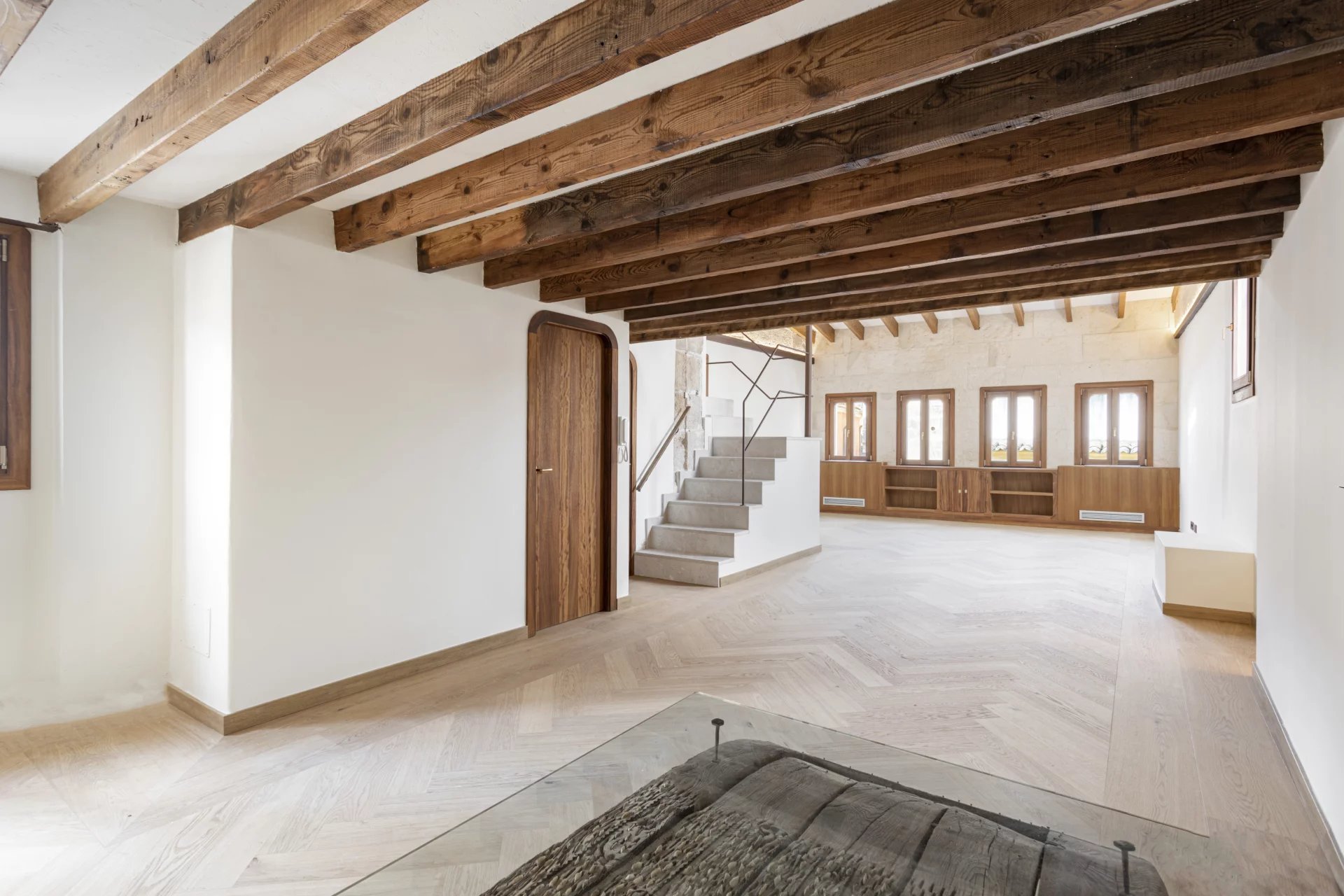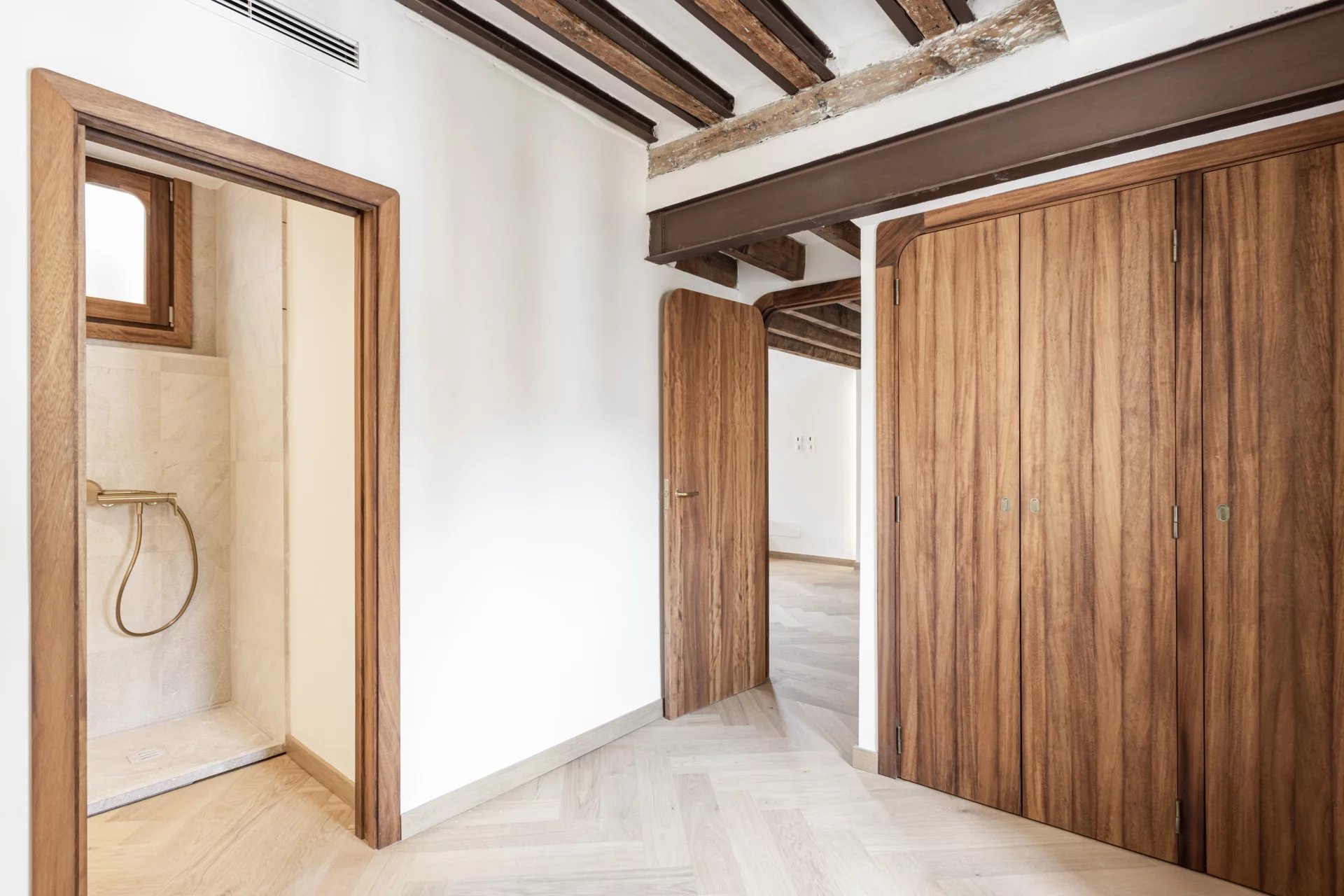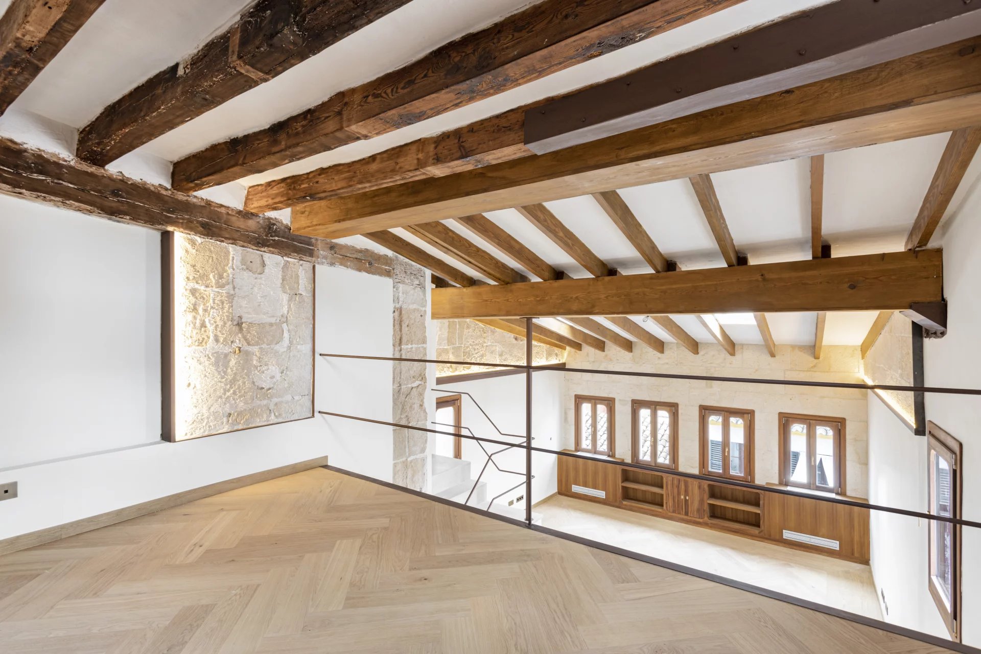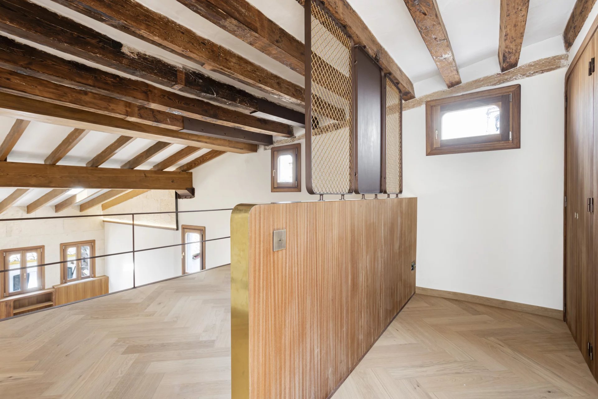 Zum Verkauf steht ein exklusives, renoviertes Duplex-Penthouse mit Terrasse in der Altstadt von Palma de Mallorca, gelegen in der prestigeträchtigen Calle Brossa, direkt neben der emblematischen Kirche Sant Nicolás. Diese einzigartige Immobilie verbindet historischen Charme mit zeitgenössischem Design und edlen Materialien und bietet ein anspruchsvolles Wohnerlebnis in einer der begehrtesten Gegenden im Zentrum von Palma. Mit einer bebauten Fläche von 134 m² und einer spektakulären privaten Terrasse von 28 m² ist dieses luxuriöse Penthouse über zwei Etagen verteilt und wurde komplett mit hochwertigen Materalien renoviert. Das geräumige und helle Wohn-Esszimmer ist perfekt mit einer modernen und funktionellen Küche integriert. Es verfügt über zwei Doppelschlafzimmer mit Einbauschränken und zwei komplette Bäder sowie ein drittes Mehrzweckzimmer, das sich ideal als Büro, Bibliothek oder drittes Schlafzimmer eignet, mit Toilette und direktem Zugang zur Terrasse. Die eine wahre urbane Oase ist, mit Vorinstallation für eine Außenküche, perfekt, um das ganze Jahr über das mediterrane Klima zu genießen. Alle Schreinerarbeiten für den Innen- und Aussenbereich wurden aus Teakholz gefertigt, das für Eleganz, Langlebigkeit und Charakter sorgt, während die Massivholzböden in allen Räumen eine warme und einladende Ästhetik vermitteln. Bei der umfassenden Renovierung wurden Doppelverglasung, Klimaanlage (warm/kalt) und eine effektive Raumaufteilung in Betracht gezogen, um das natürliche Licht optimal zu nutzen. Diese exklusive Immobilie eignet sich sowohl als Hauptwohnsitz als auch als hochwertige Investions-Immobilie in Palma de Mallorca, dank ihrer privilegierten Lage im Herzen der Altstadt, umgeben von Geschichte, Kultur, Geschäften und Restaurants. Ein authentisches architektonisches Juwel mit mallorquinischer Seele und zeitgenössischem Design, perfekt für diejenigen, die ein Penthouse im Zentrum von Palma mit einer Terrasse und hoher Qualität suchen.