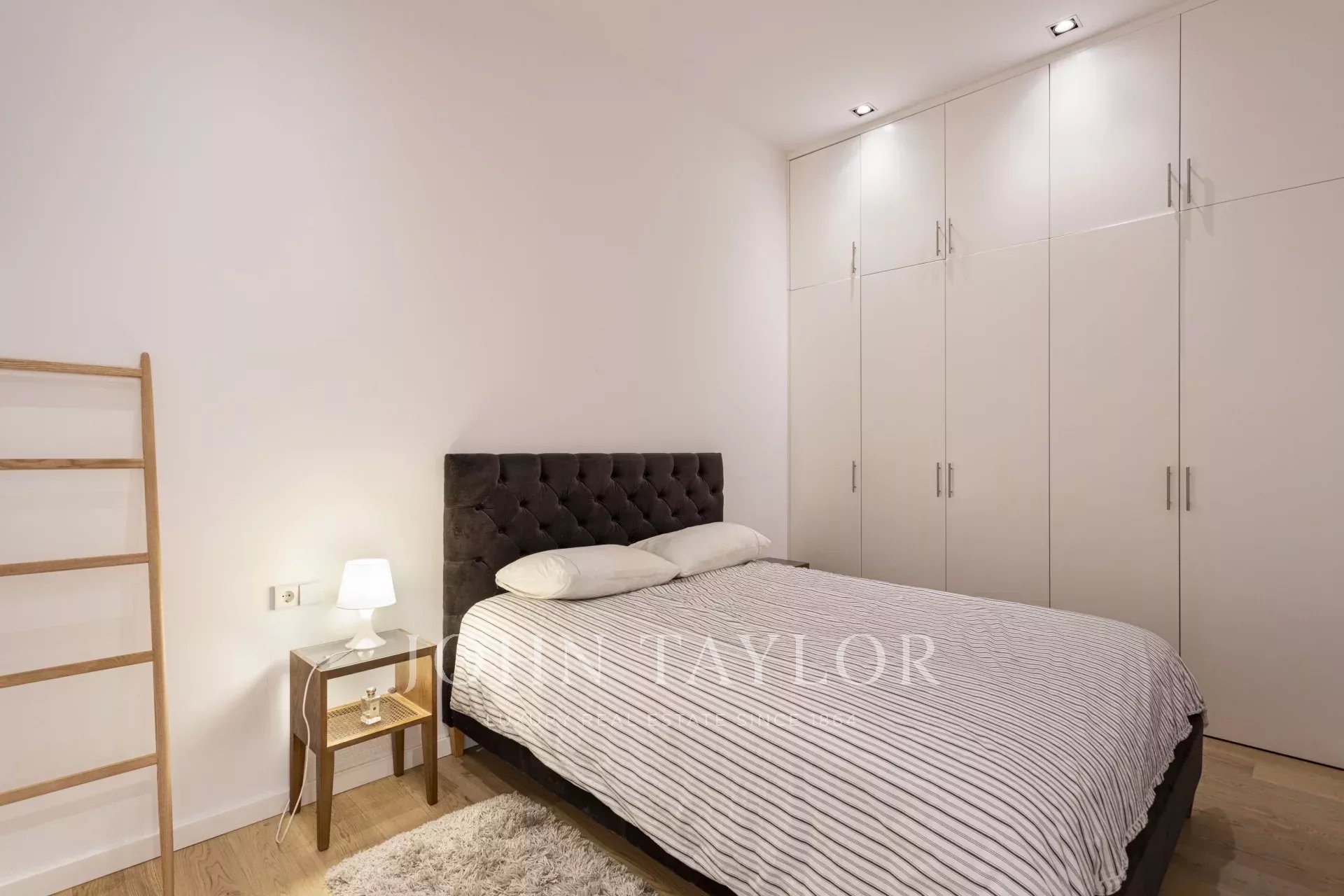 Die Aufteilung umfasst zwei großzügige Doppelschlafzimmer, ein vielseitiges drittes Zimmer, das je nach Bedarf als Arbeitszimmer, Gästezimmer oder Ankleidebereich genutzt werden kann, und ein stilvolles Badezimmer. Vier separate Stauräume bieten reichlich Platz für Ihr Hab und Gut und machen die Wohnung noch praktischer.