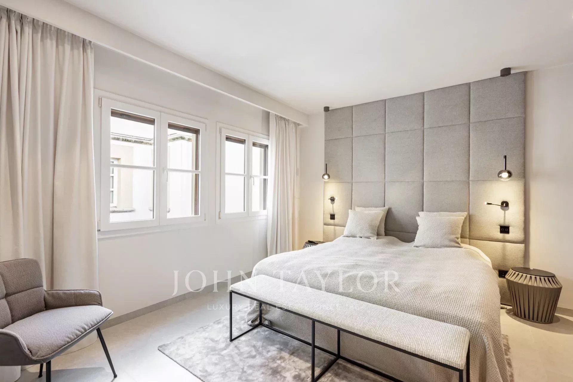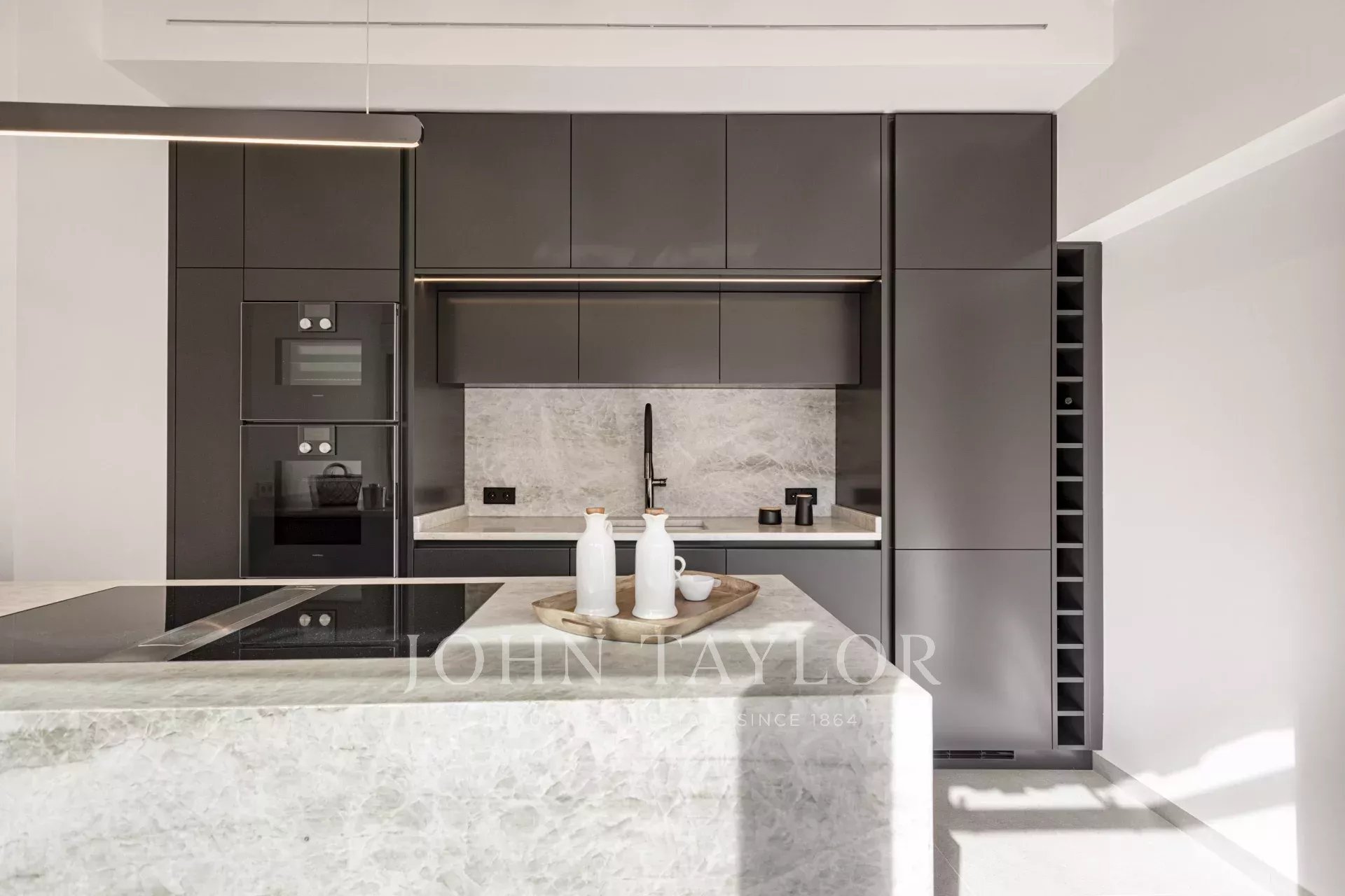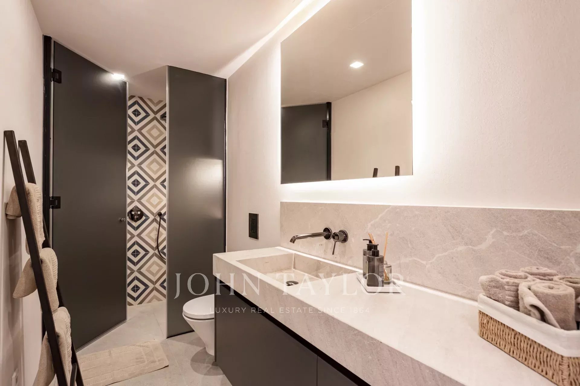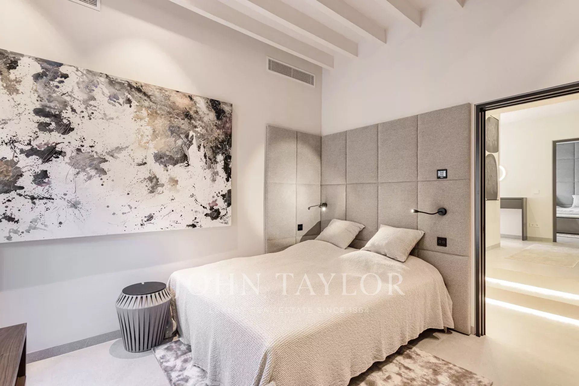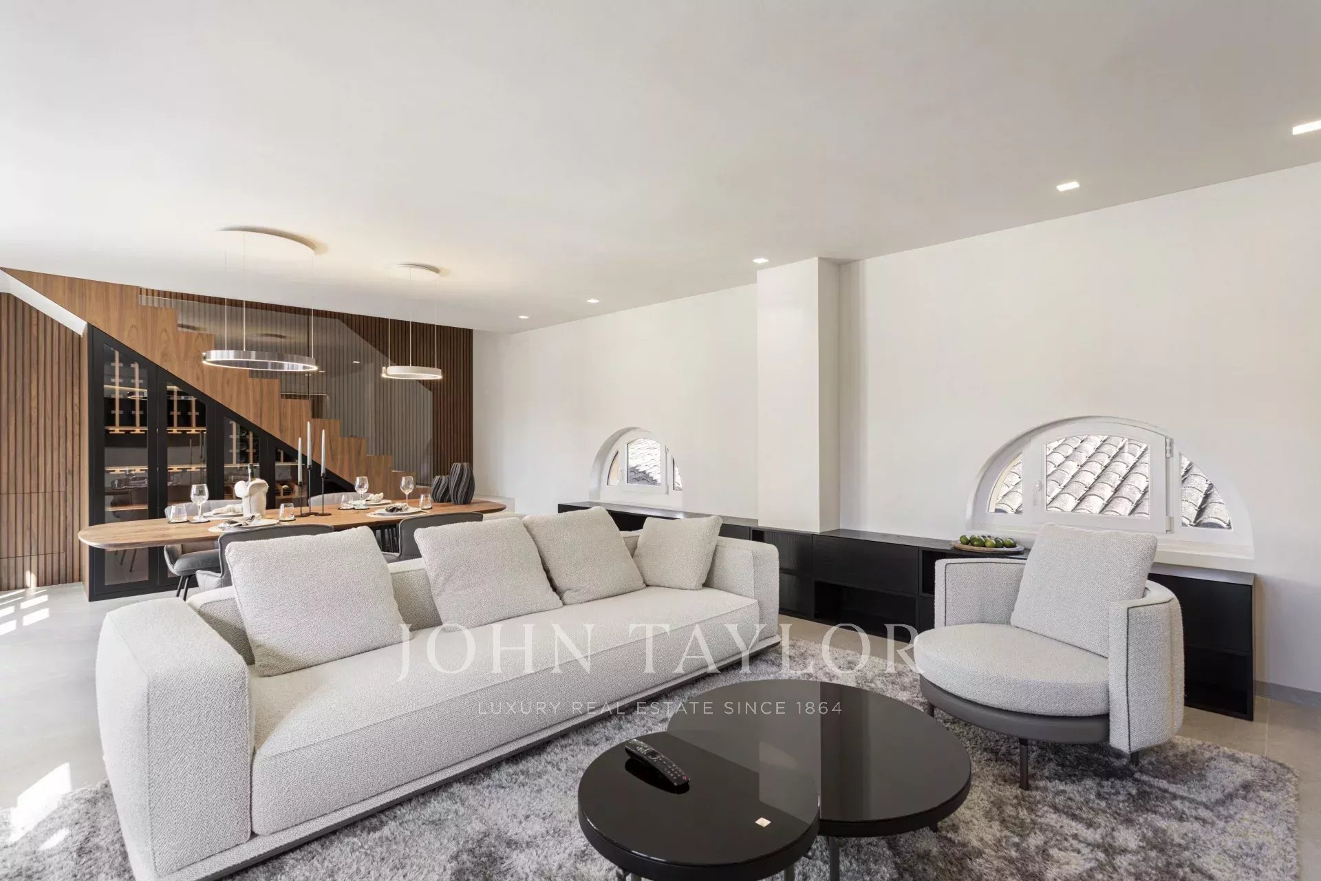 In einer der bezauberndsten Gassen von Palmas Altstadt, nur wenige Schritte vom Rathaus und der Kathedrale entfernt, befindet sich dieses außergewöhnliche Duplex-Penthouse, das historischen Charme, modernen Luxus und mediterranes Lebensgefühl auf harmonische Weise vereint. Es erstreckt sich über die beiden obersten Etagen eines sorgfältig restaurierten historischen Gebäudes mit einer charaktervollen alten Holztüre und einem charmanten Innenhof und bietet durch nur einen Nachbarn und Aufzug bis zur obersten Etage ein hohes Maß an Privatsphäre. Mit einer Gesamtfläche von 243 m², darunter 58,9 m² Terrassen, empfängt die Wohnung mit einem eleganten Eingangsbereich, der zu den Schlafräumen führt: einem Hauptschlafzimmer mit Bad en suite sowie zwei weiteren Schlafzimmern, die sich ein stilvolles Badezimmer teilen. Auf der oberen Ebene führt ein großzügiger Wohn- und Essbereich mit Gaskamin und einer maßgefertigten Weinvitrine auf die angrenzende Terrasse – der perfekte Ort für stilvolle Abende oder entspannte Stunden unter dem Sternenhimmel. Die separate Designerküche ist mit hochwertigen Geräten der Marken Gaggenau, Bora und Liebherr ausgestattet und hat ebenfalls Zugang zur Terrasse, wo eine Außenküche mit Grill zum mediterranen Genießen einlädt. Eine Treppe führt vom Wohnbereich auf die Dachterrasse, die mit einem atemberaubenden Panoramablick über die Kathedrale, das Meer und die von historischen Kirchen wie Santa Eulalia und Sant Francesc geprägte Skyline Palmas begeistert. Mit einer Vorinstallation für einen Pool oder Jacuzzi bietet sie eine private Oase über den Dächern der Altstadt. Das Penthouse wird vollmöbliert mit exklusiven Designermöbeln von Minotti und Freifrau verkauft und überzeugt zudem durch ein durchdachtes Lichtkonzept von Occhio – eine perfekte Symbiose aus zeitloser Eleganz und modernem Wohnkomfort im historischen Herzen Palmas. Zum Penthouse gehört außerdem ein Stellplatz in einer nahegelegenen Garage.
