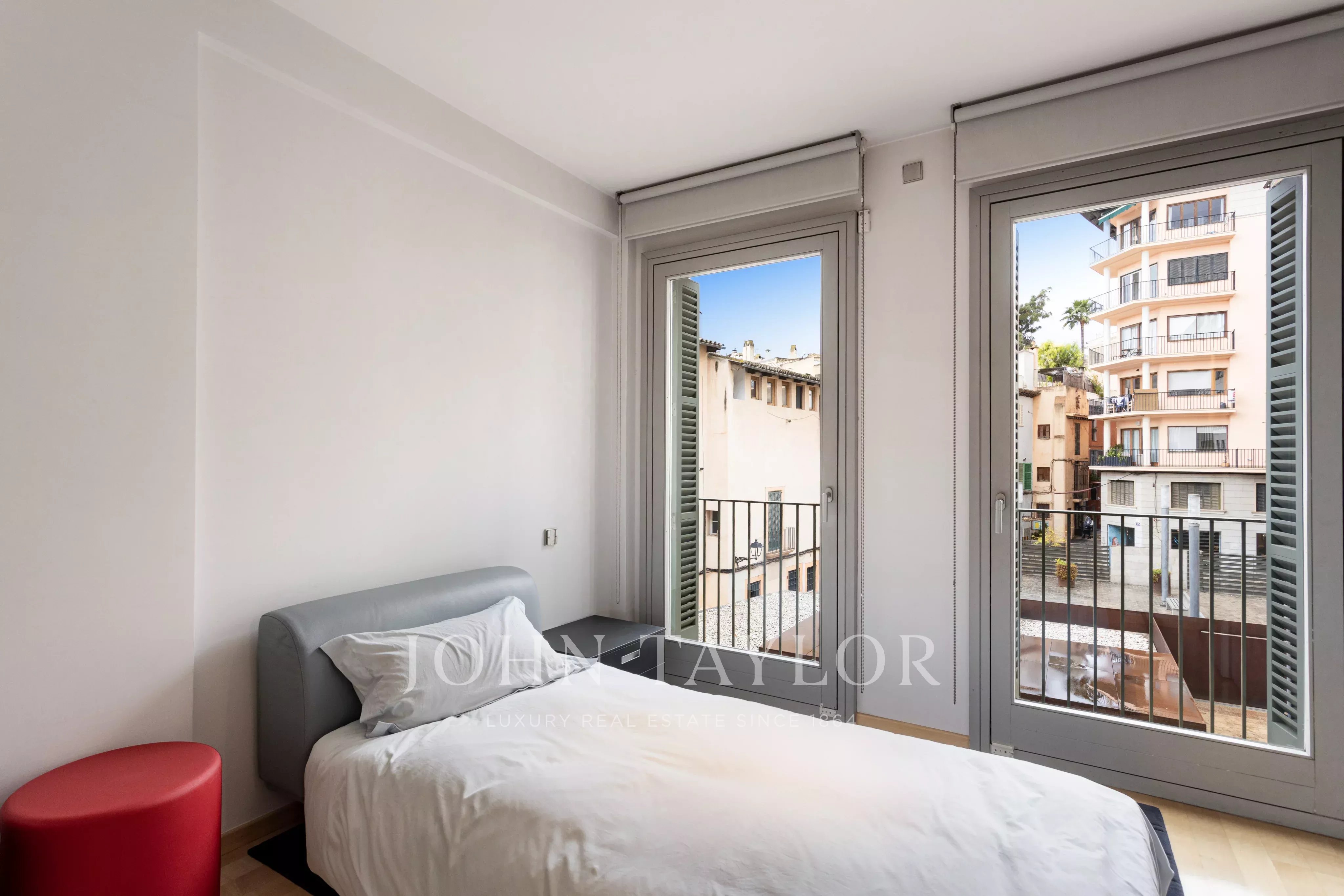 Die Wohnung befindet sich in einer der best-erhaltenen Altstädte Spaniens, umgeben von engen Gassen, Luxusgeschäften, gehobenen Restaurants, Kunstgalerien, Museen und historischen Sehenswürdigkeiten wie der Kathedrale Santa María (La Seu). Die Umgebung bietet zudem lebhaftes Nachtleben und moderne Attraktionen wie Passeig del Born, Avenida de Jaume III, Passeig de la Rambla und beliebte Plätze. Die Altstadt bleibt eines der gefragtesten Gebiete für Immobilieninvestitionen, viele Gebäude wurden zu luxuriösen Apartments mit modernen Annehmlichkeiten renoviert.